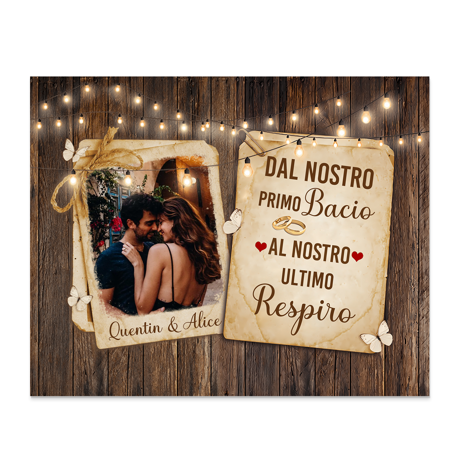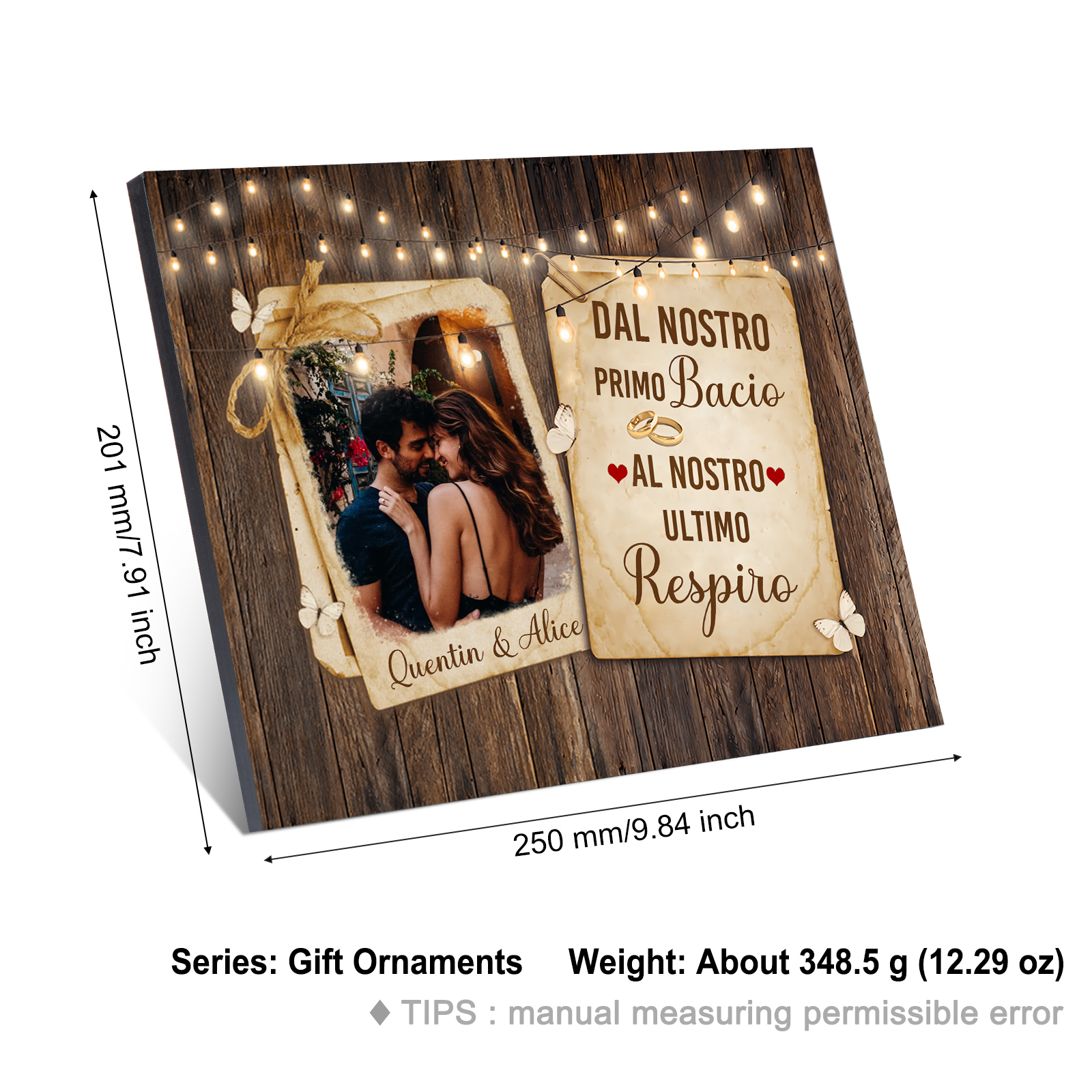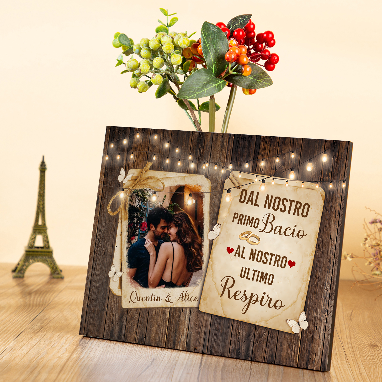 Dal nostro primo bacio-Targa di Legno Per coppia 1 foto e 1 testo personalizzati