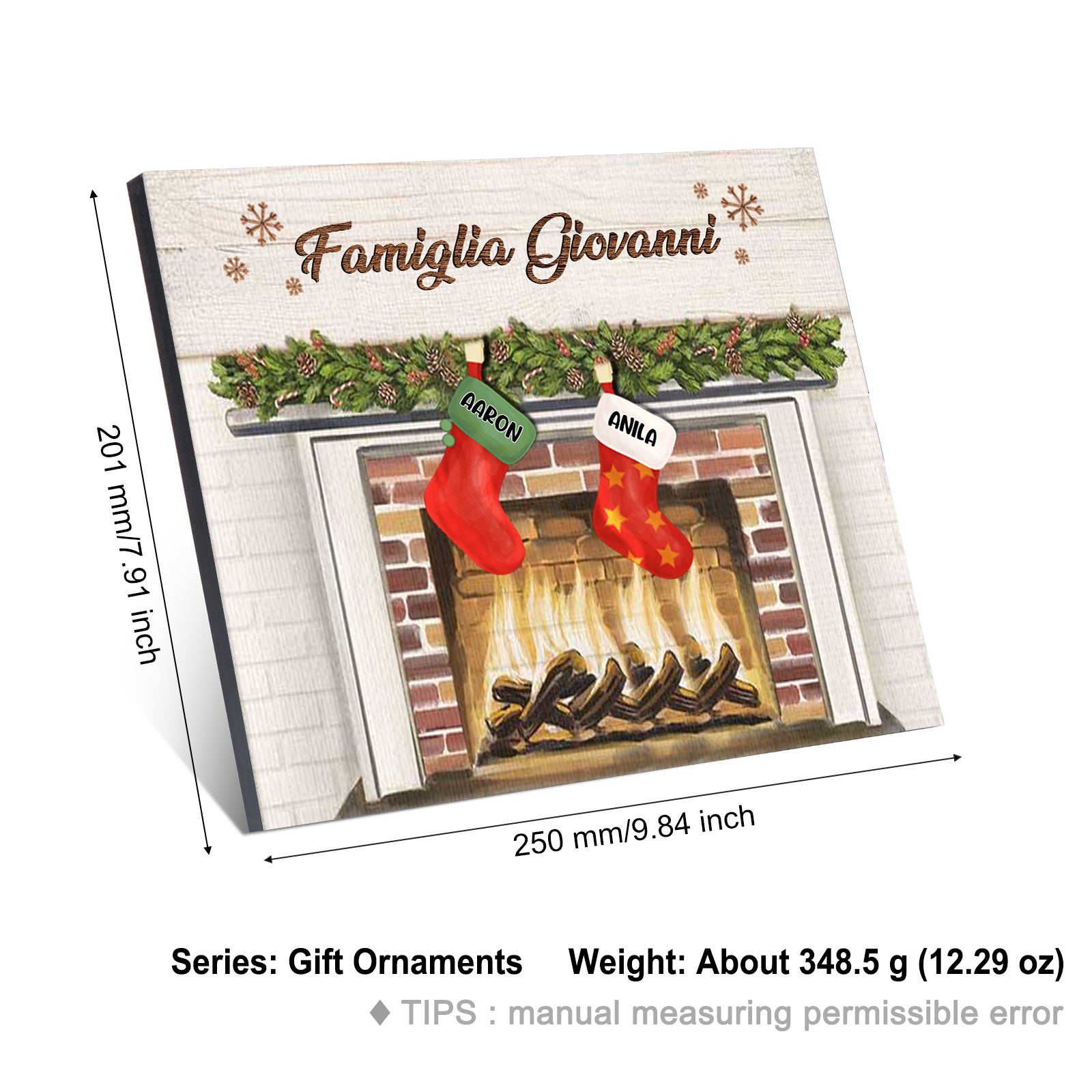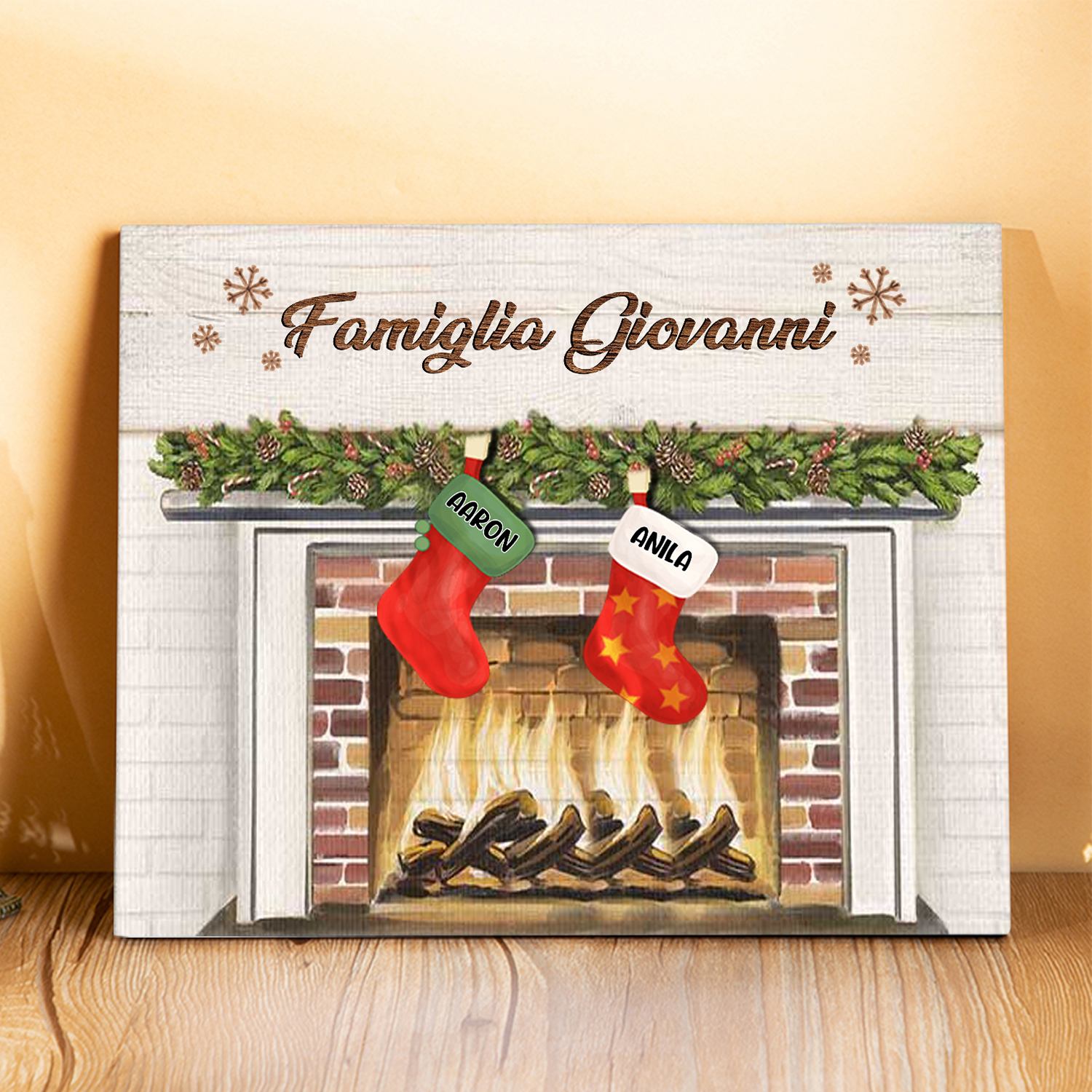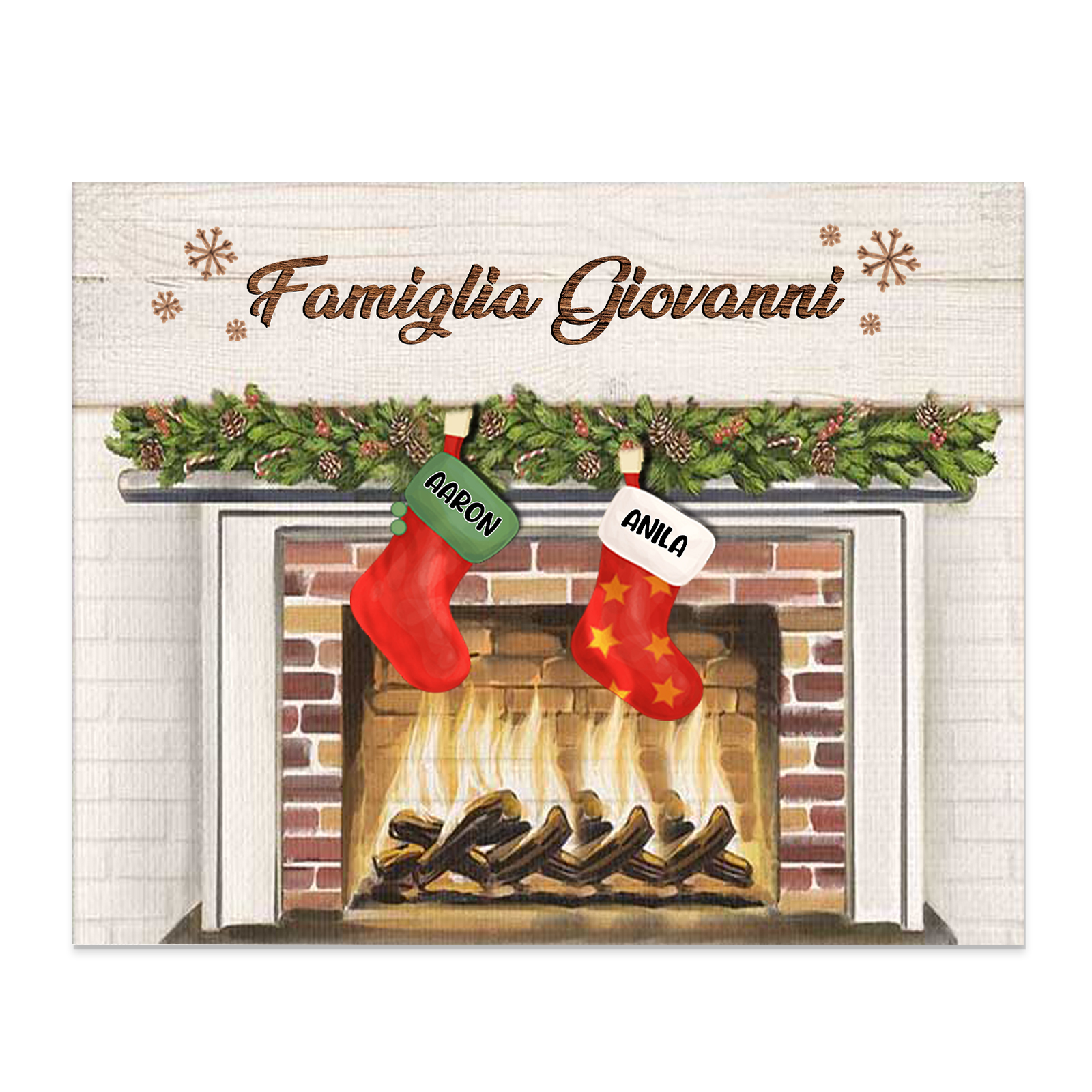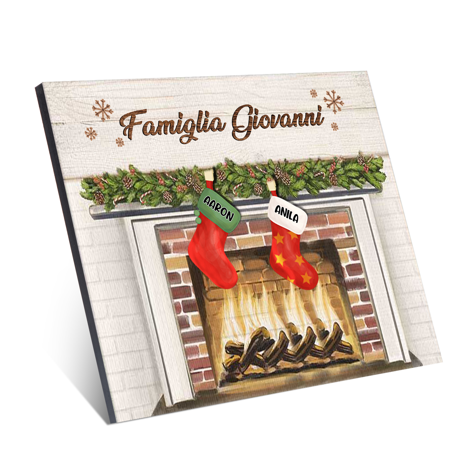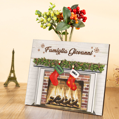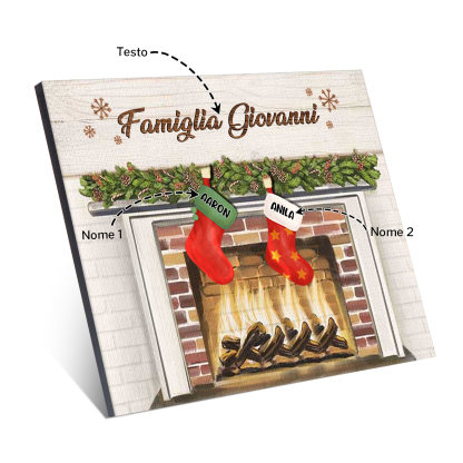 Decorazione🎄FAMIGLIA GIOVANNI sotto il camino calzini pieni di regali 2 nomi e 1 testo personalizzabili