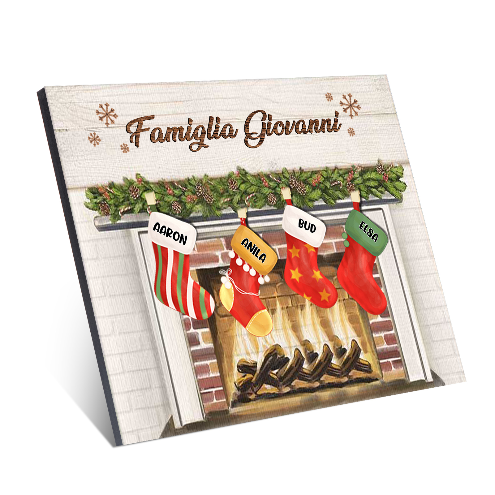 Decorazione🎄FAMIGLIA GIOVANNI sotto il camino calzini pieni di regali 4 nomi e 1 testo personalizzabili