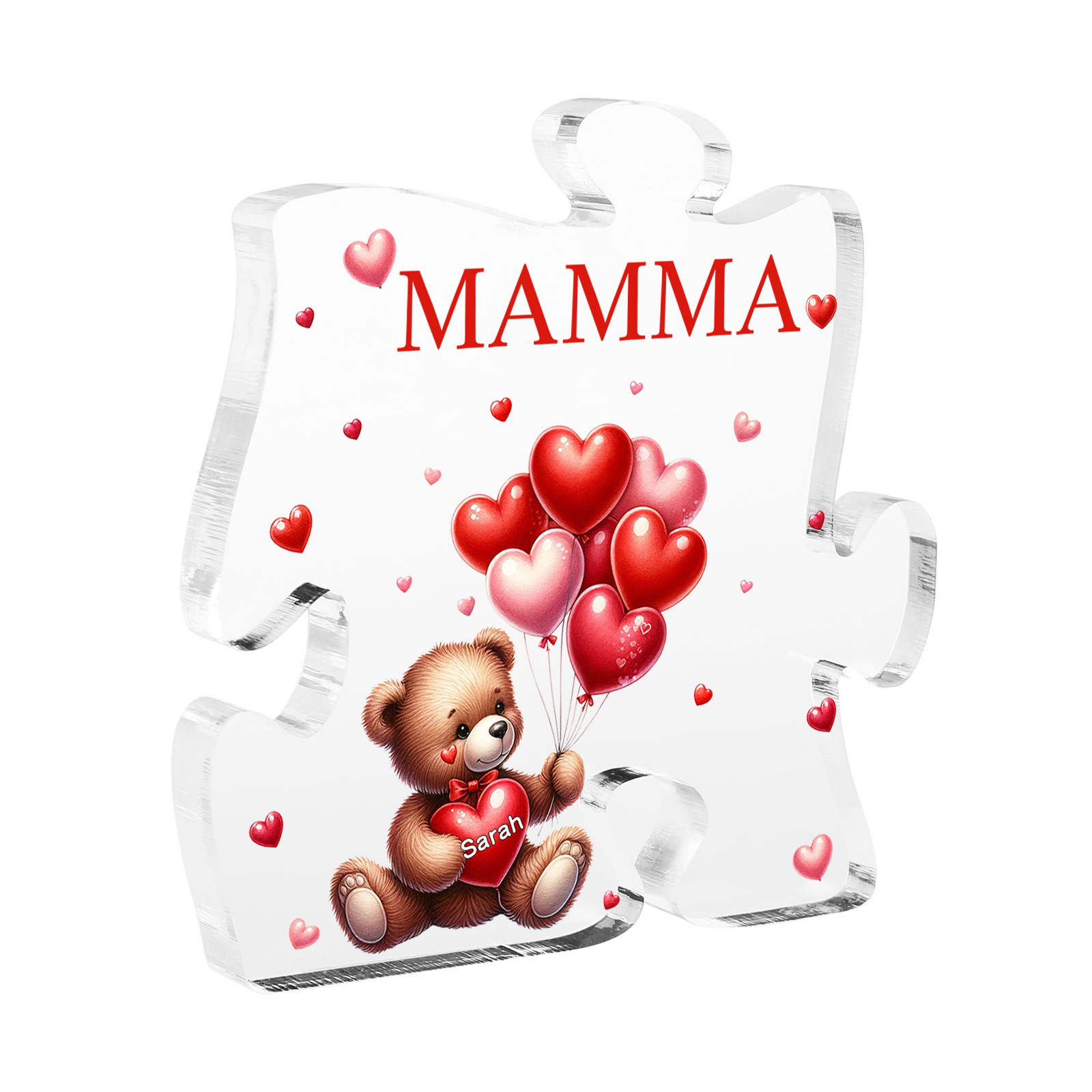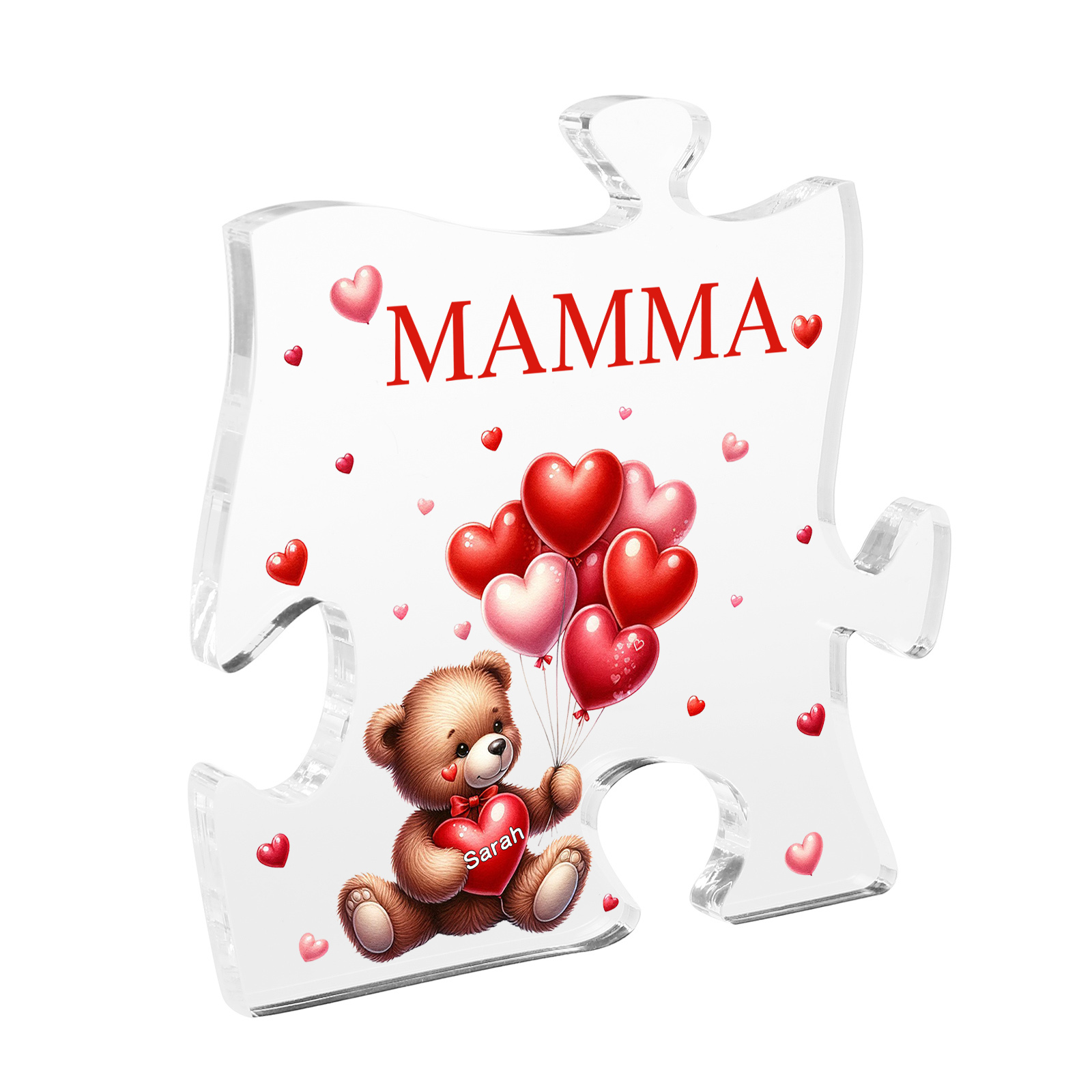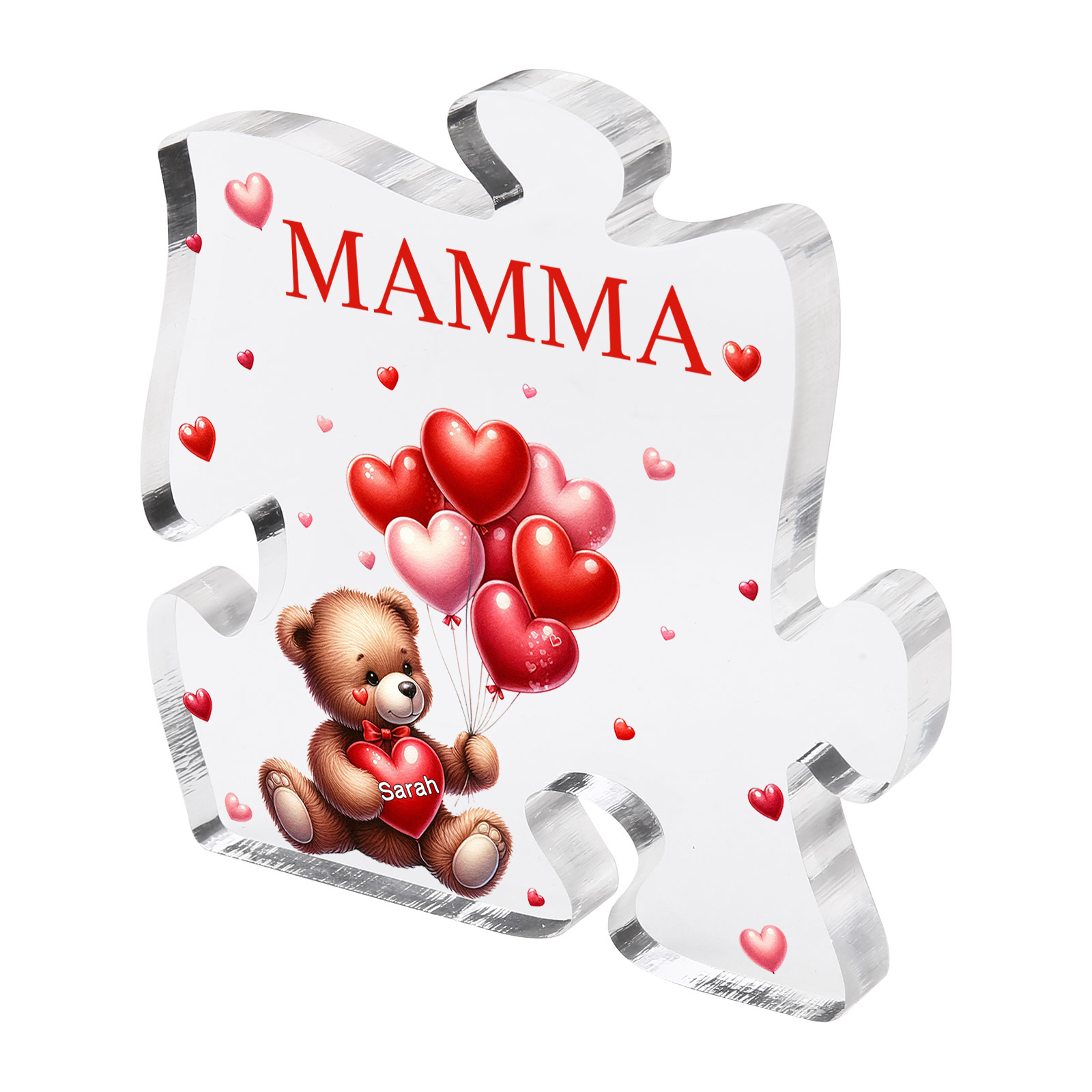 Decorazione acrilica a forma di puzzle con orsacchiotto e 1 nome e 1 testo personalizzati per mamma/nonna