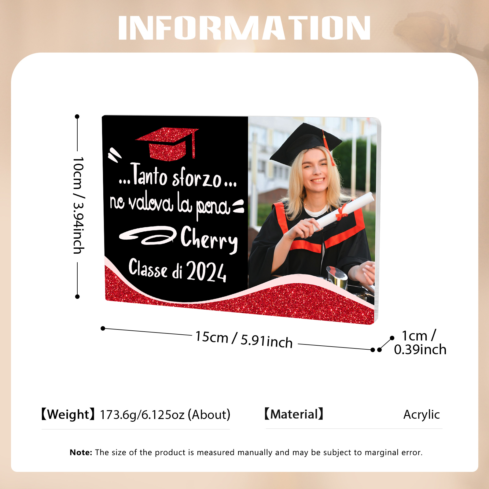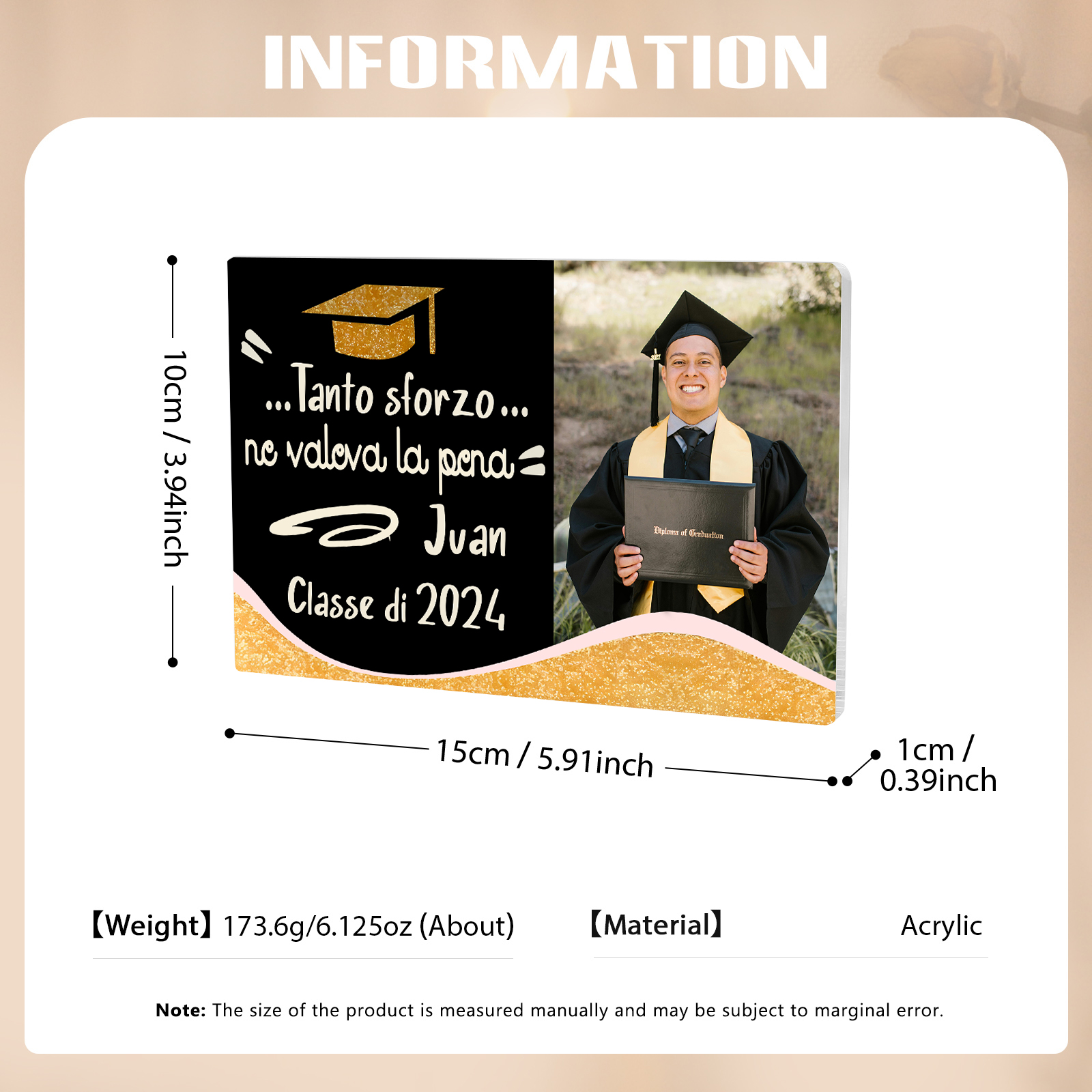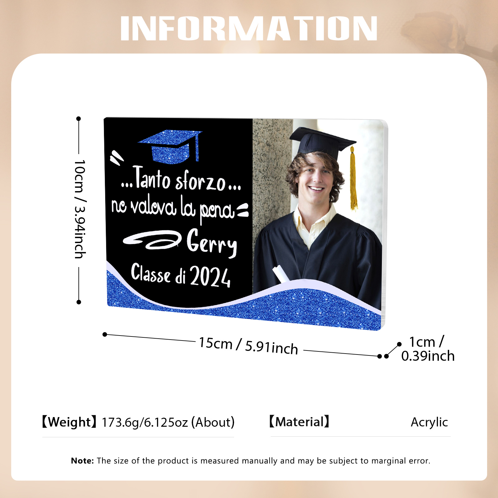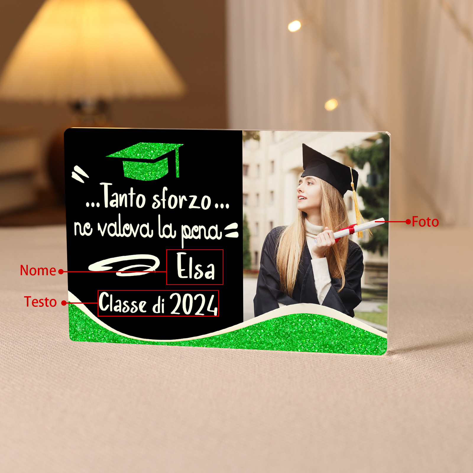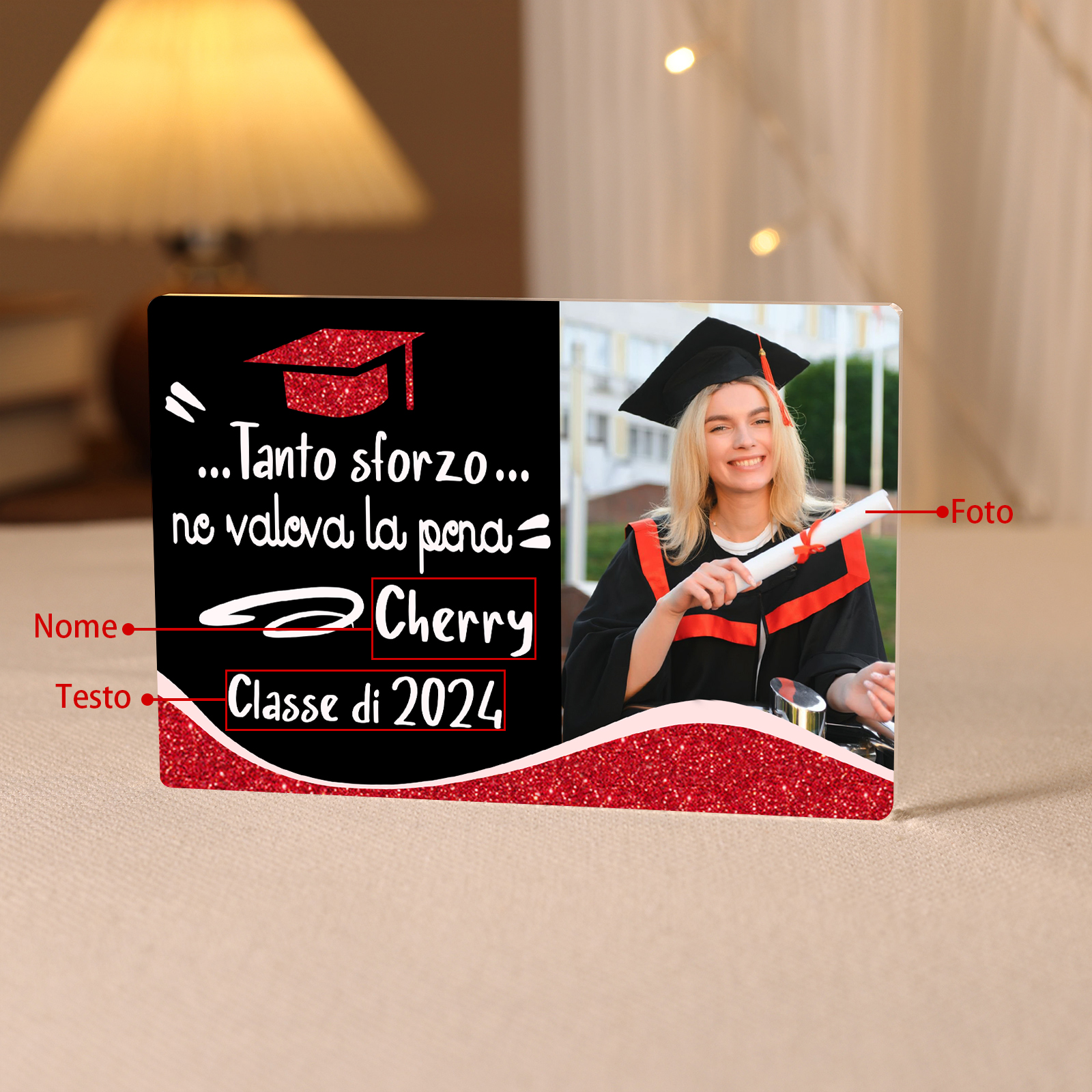 Decorazione acrilica di laurea 1 nome e 1 foto e 1 testo personalizzati per laurea