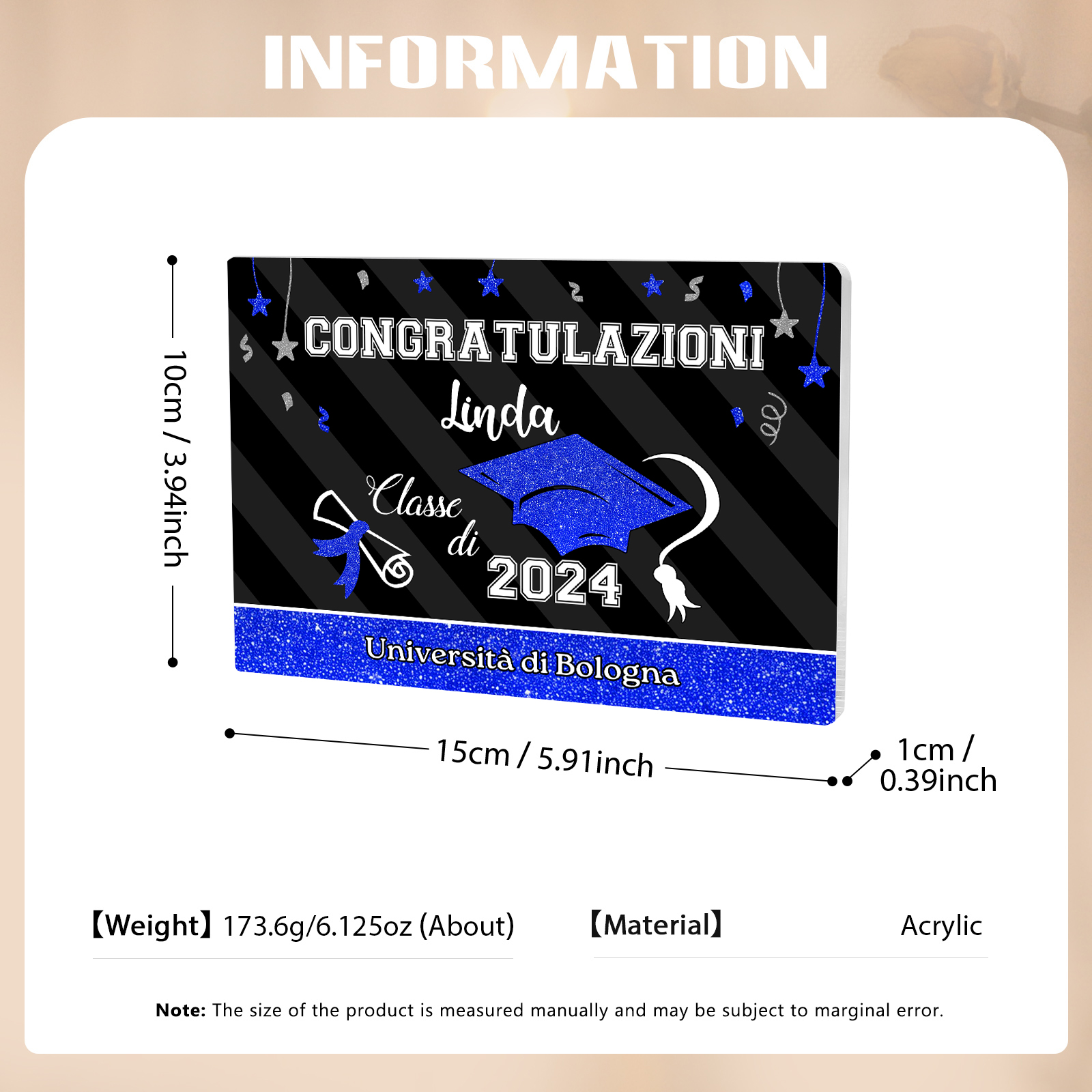 Decorazione acrilica di laurea congratulazioni per la laurea 1 nome e 1 anno e 1 testo personalizzati per laurea