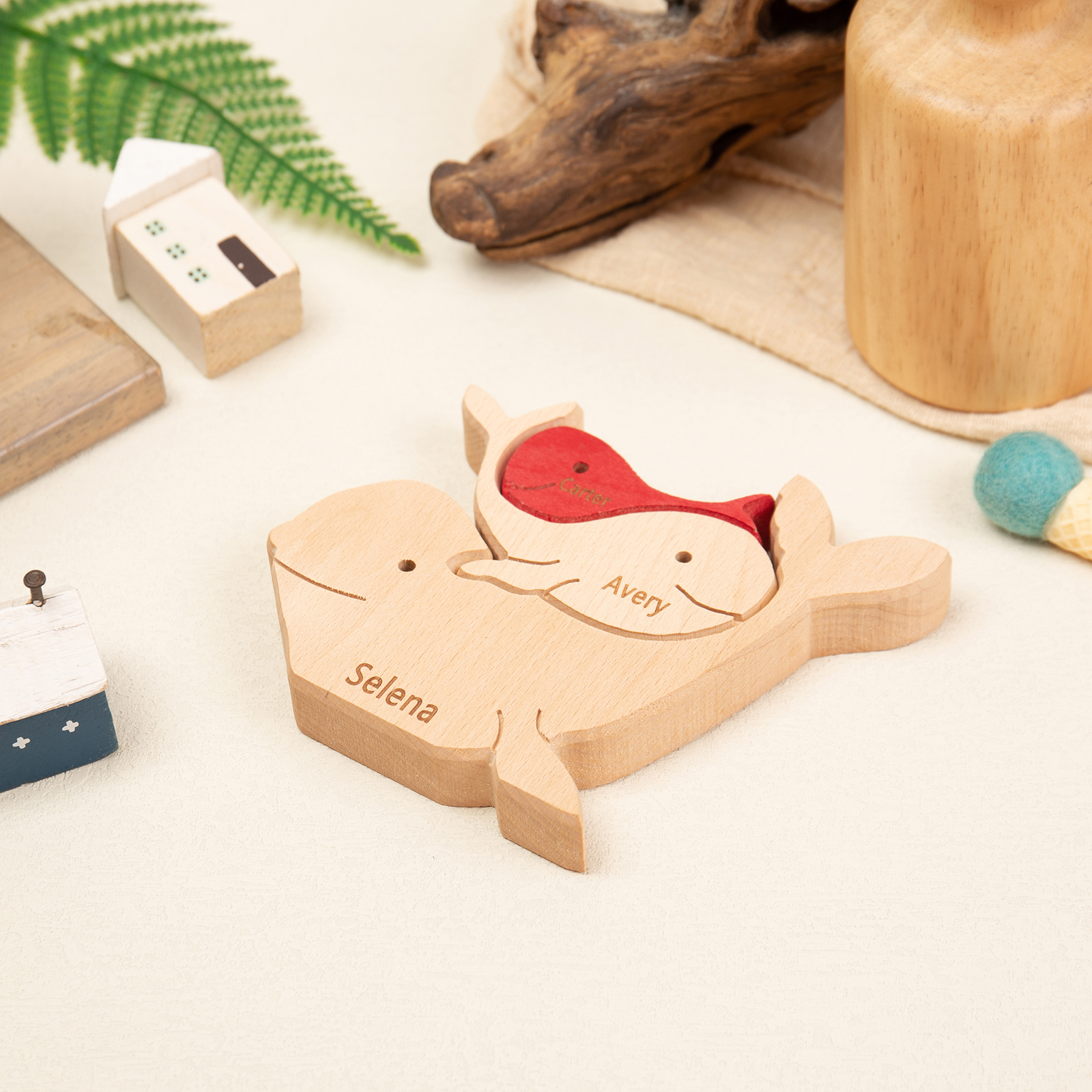 Decorazione puzzle componibile famiglia di balene 3 nomi personalizzati per dolce famiglia casa