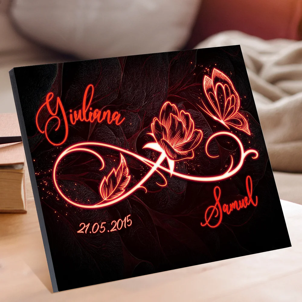 Decorazione targa con infinito farfalla e 2 nomi e 1 data personalizzabile