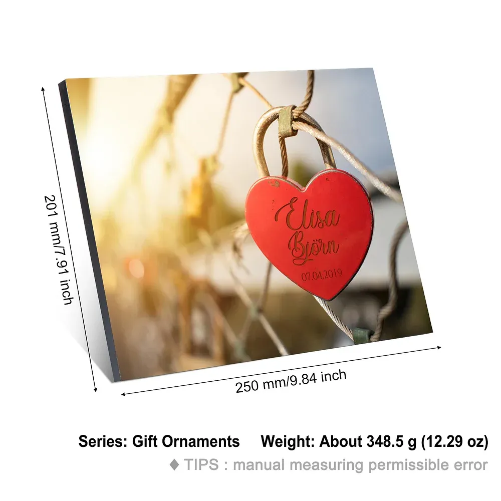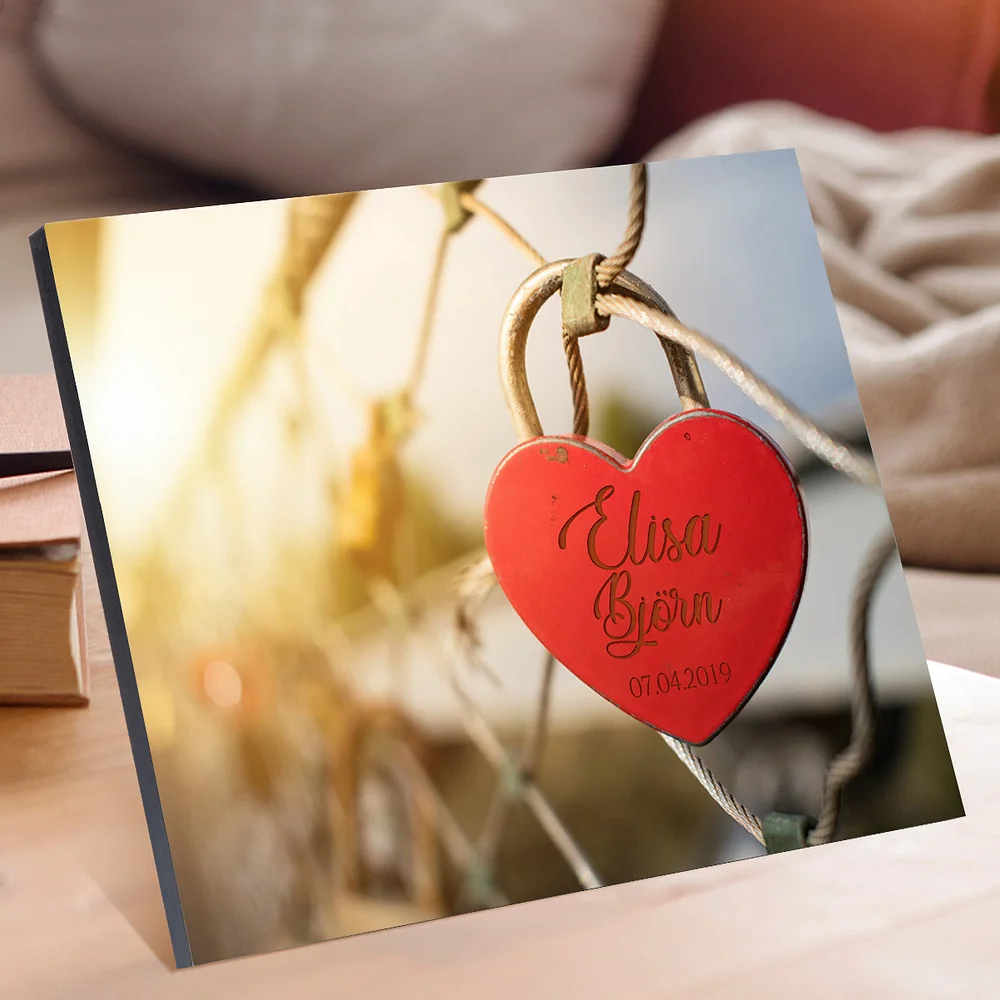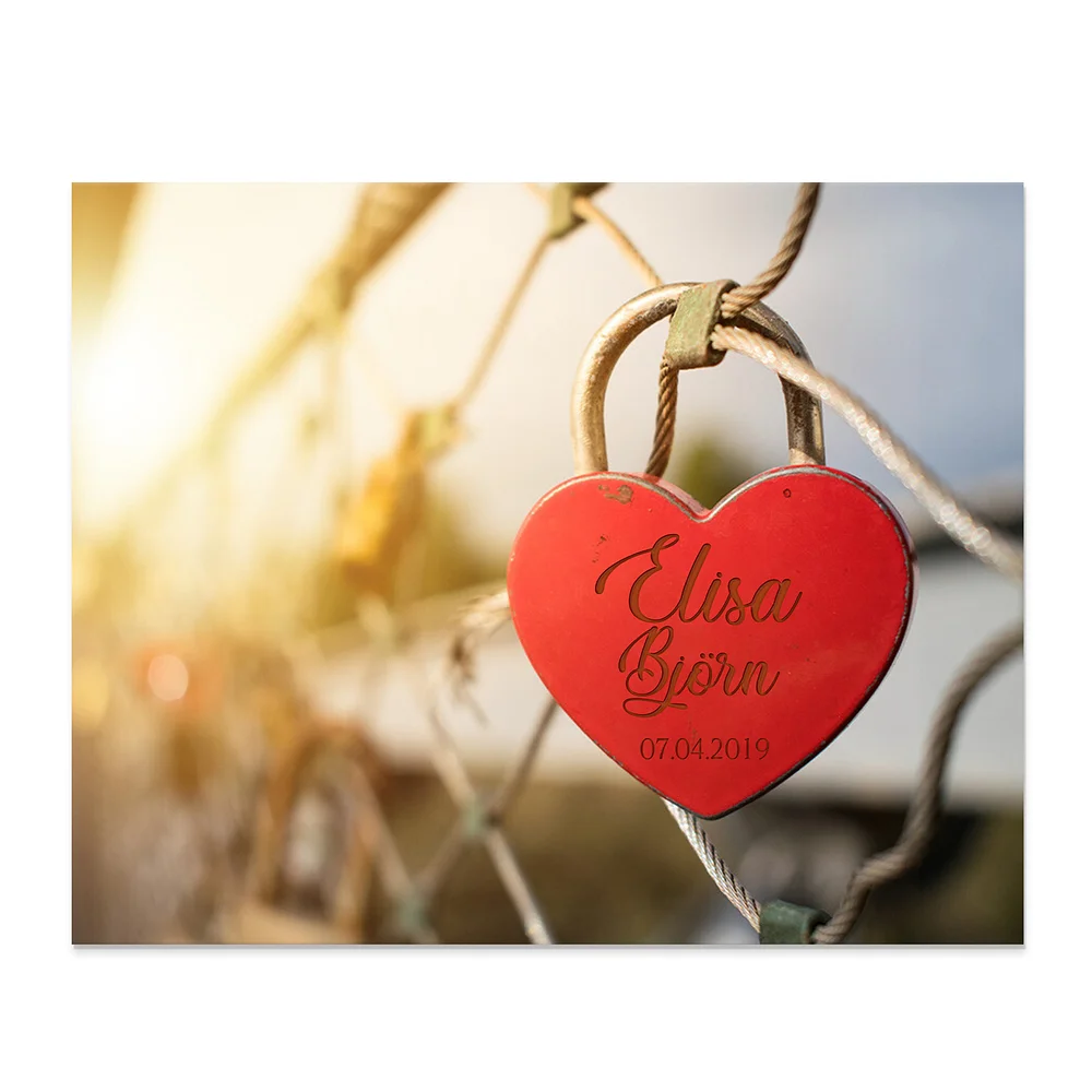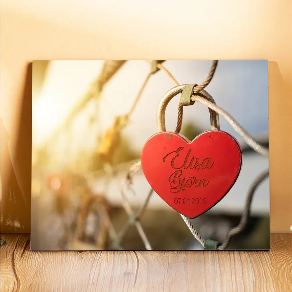 Decorazione targa con una serratura cuore e 2 nomi e 1 data personalizzabile