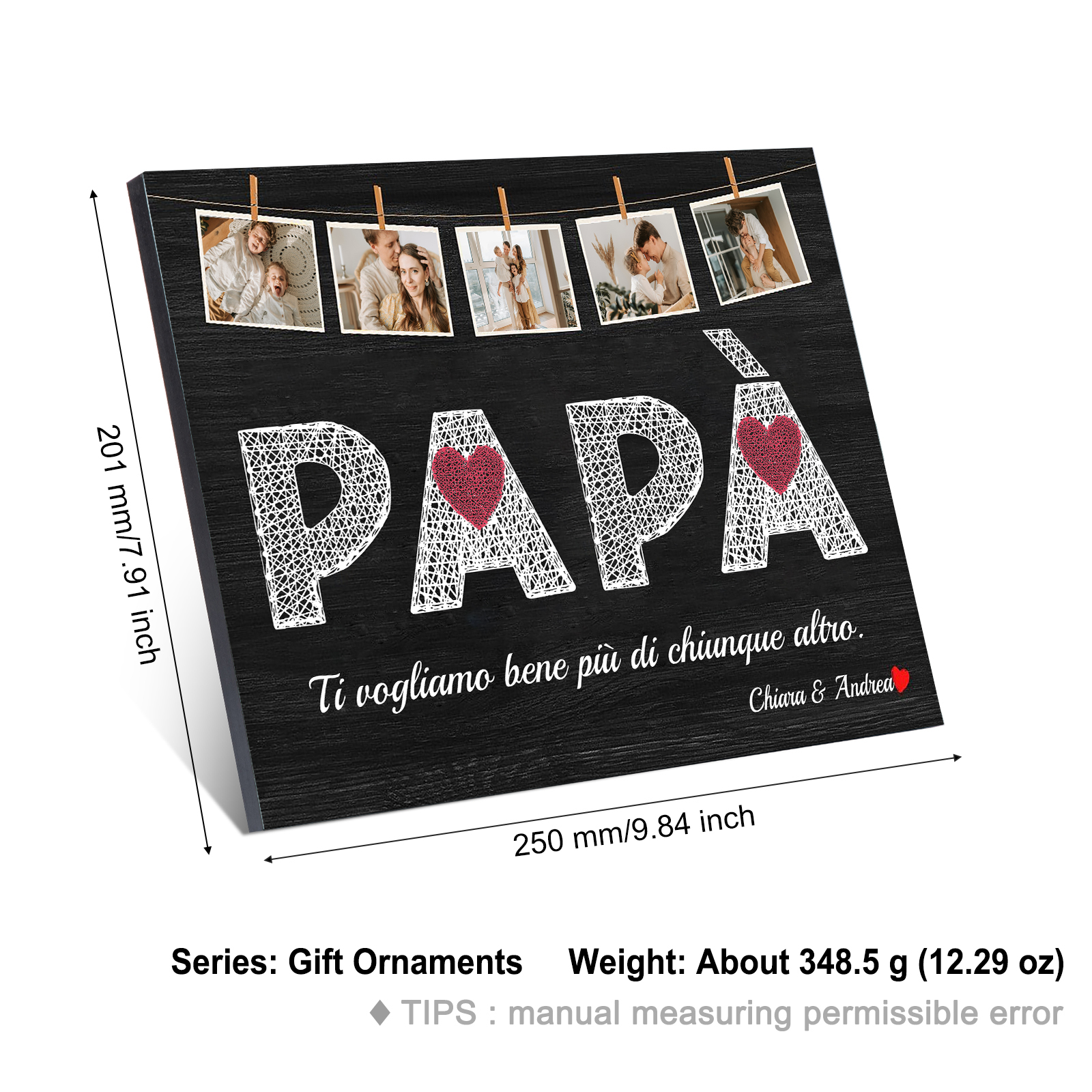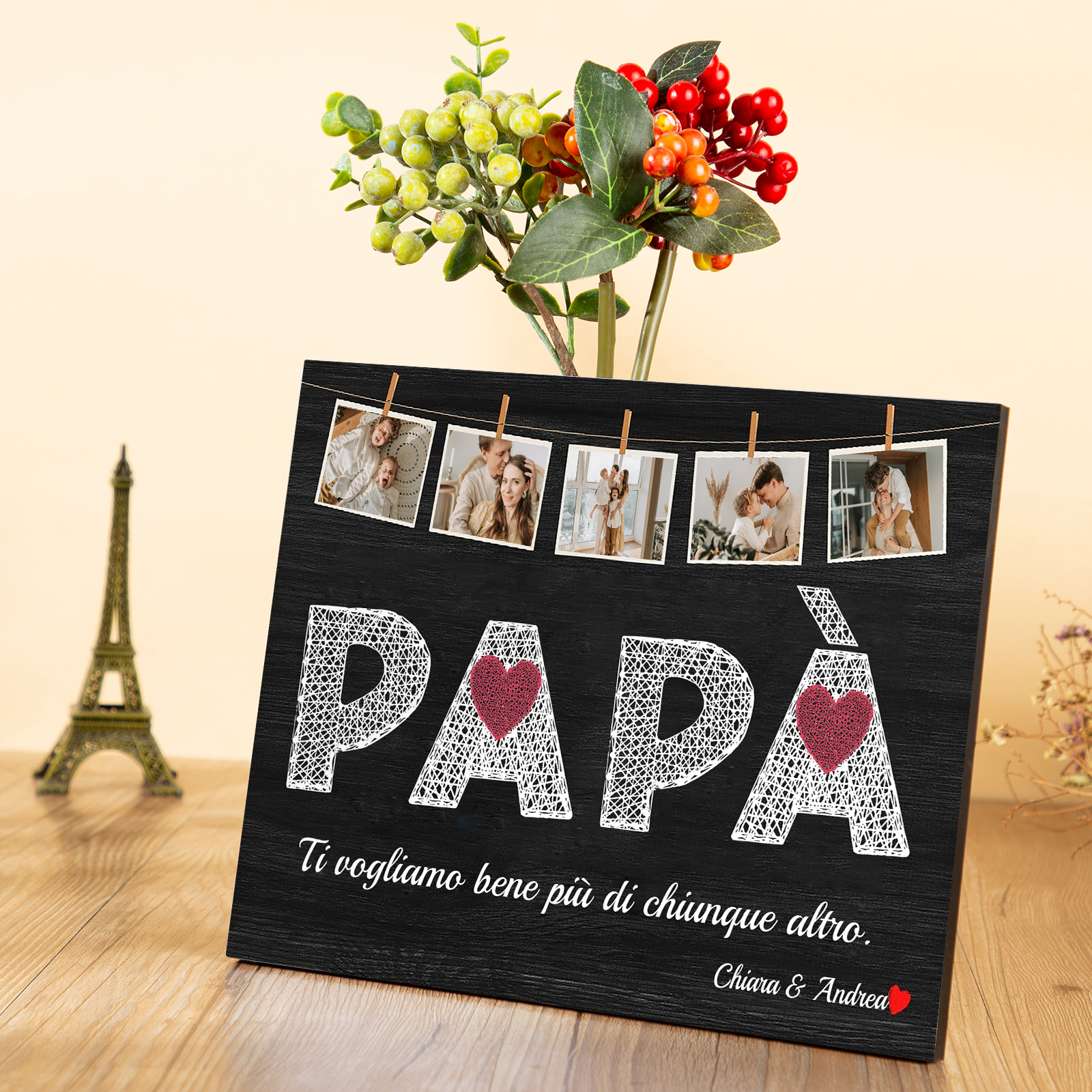 Decorazione targa PAPÀ TI VOGLIAMO PIÙ DI CHIUNQUE ALTRO personalizzabile con 5 foto e 1 testo regalo famiglia