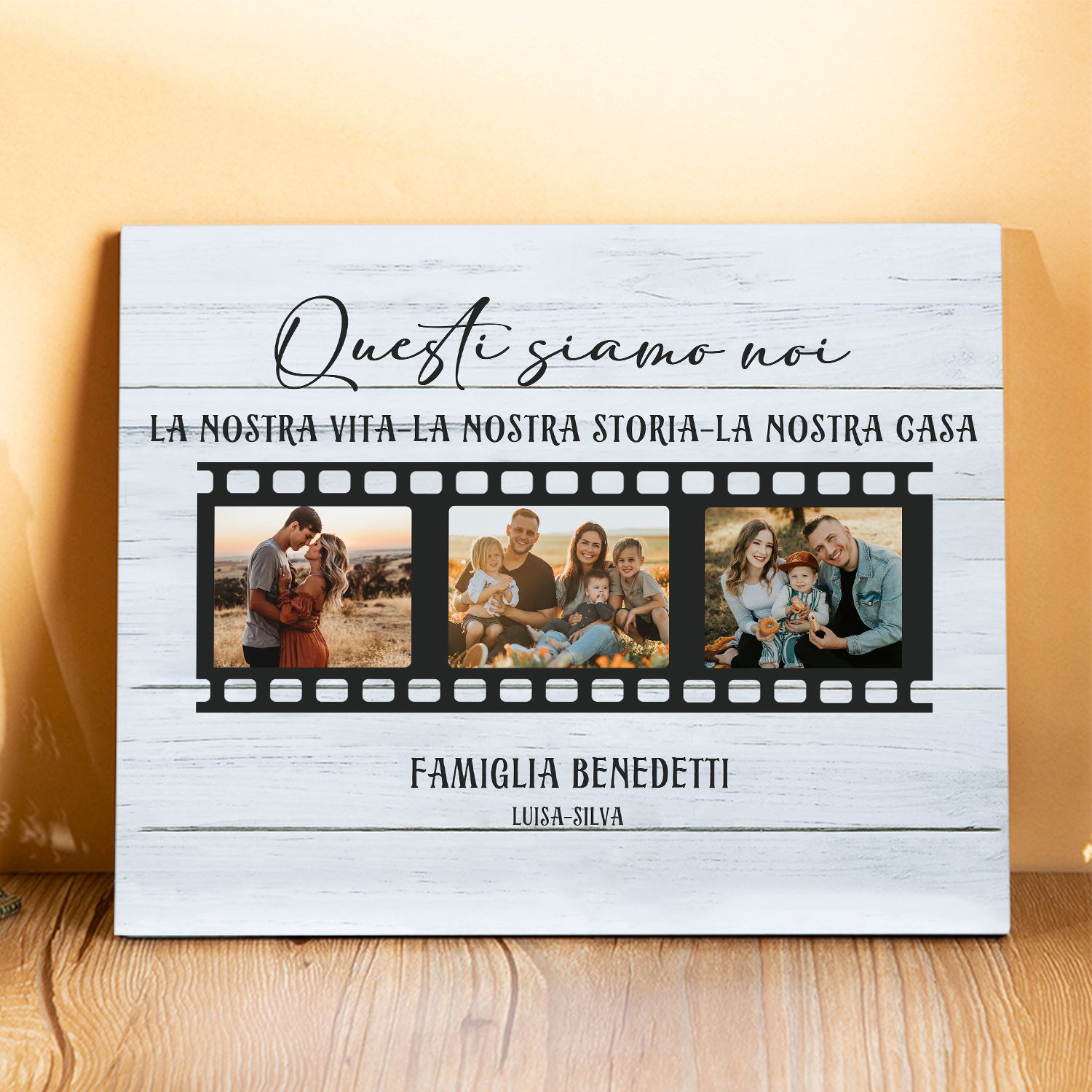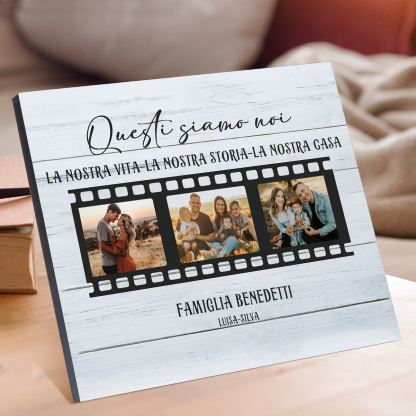 Decorazione targa QUESTI SIAMO NOI personalizzabile con 3 foto e 2 nomi regalo famiglia