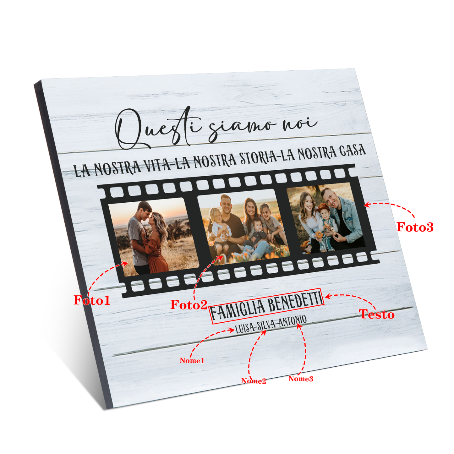Decorazione targa QUESTI SIAMO NOI personalizzabile con 3 foto e 3 nomi regalo famiglia