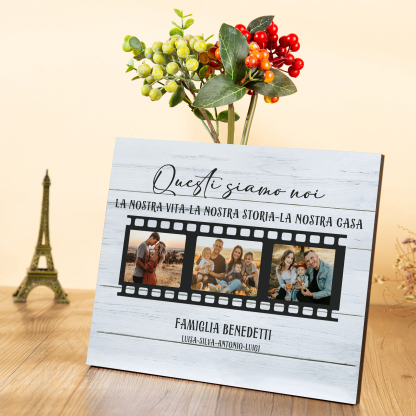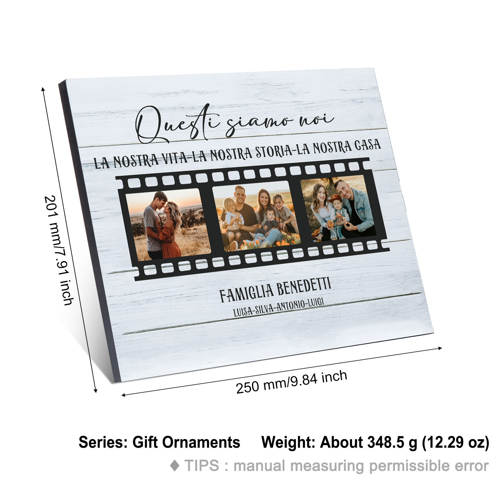 Decorazione targa QUESTI SIAMO NOI personalizzabile con 3 foto e 4 nomi regalo famiglia