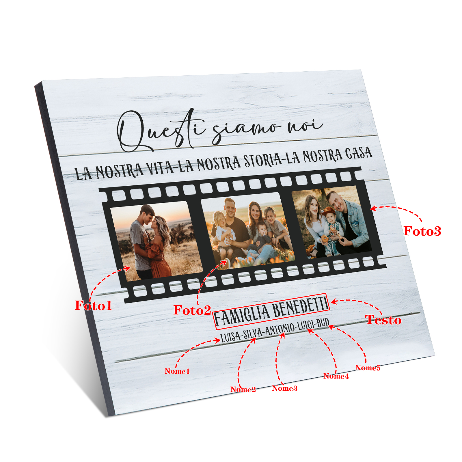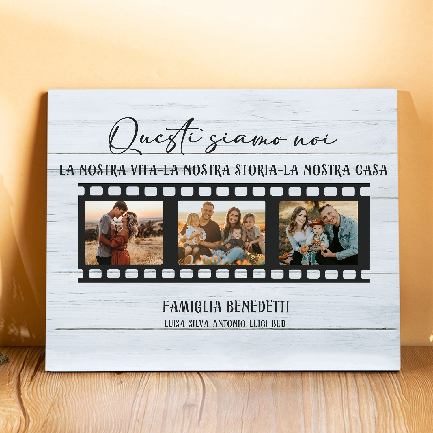 Decorazione targa QUESTI SIAMO NOI personalizzabile con 3 foto e 5 nomi regalo famiglia