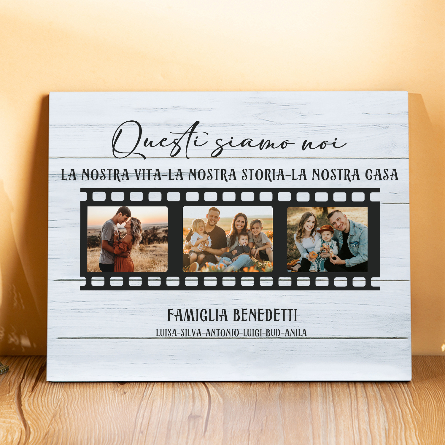 Decorazione targa QUESTI SIAMO NOI personalizzabile con 3 foto e 6 nomi regalo famiglia