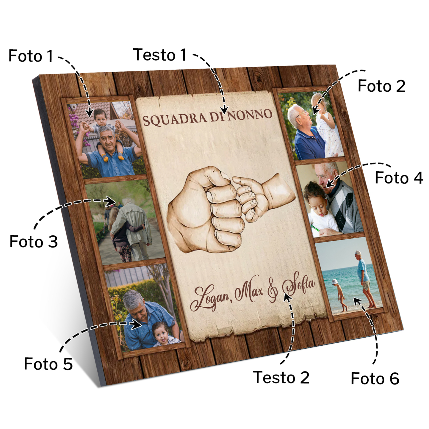 Decorazione targa Squadra di nonno 6 foto e 2 testi personalizzati