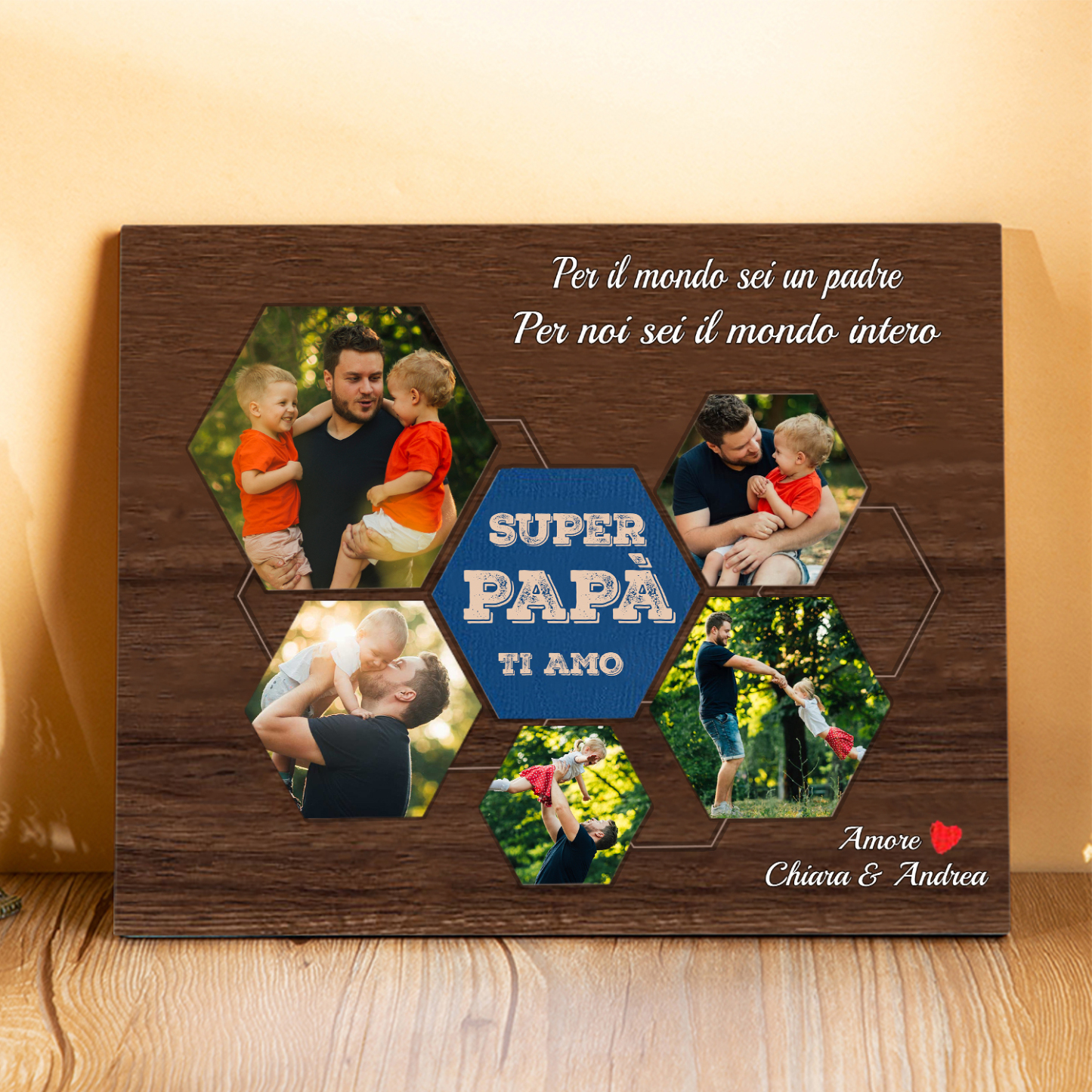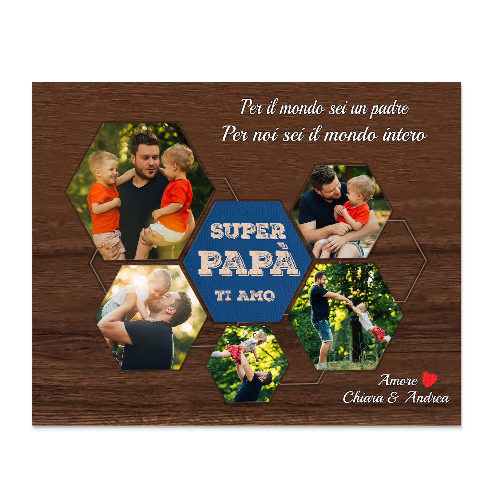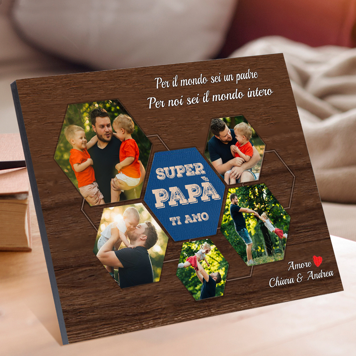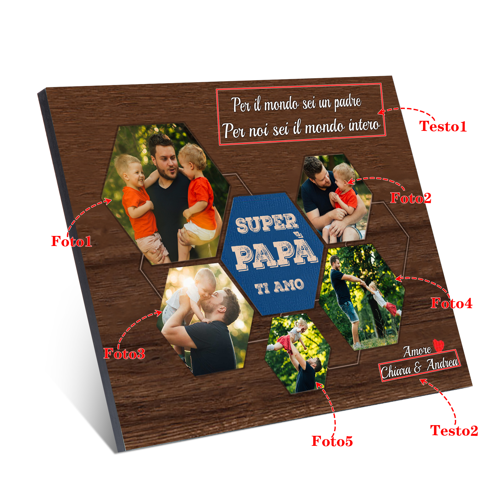 Decorazione targa SUPER PAPÀ TI AMO personalizzabile con 5 foto e testo regalo