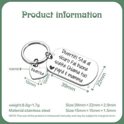 Divertiti Portachiavi con cuore carino 1 nome personalizzato per figli o nipoti
