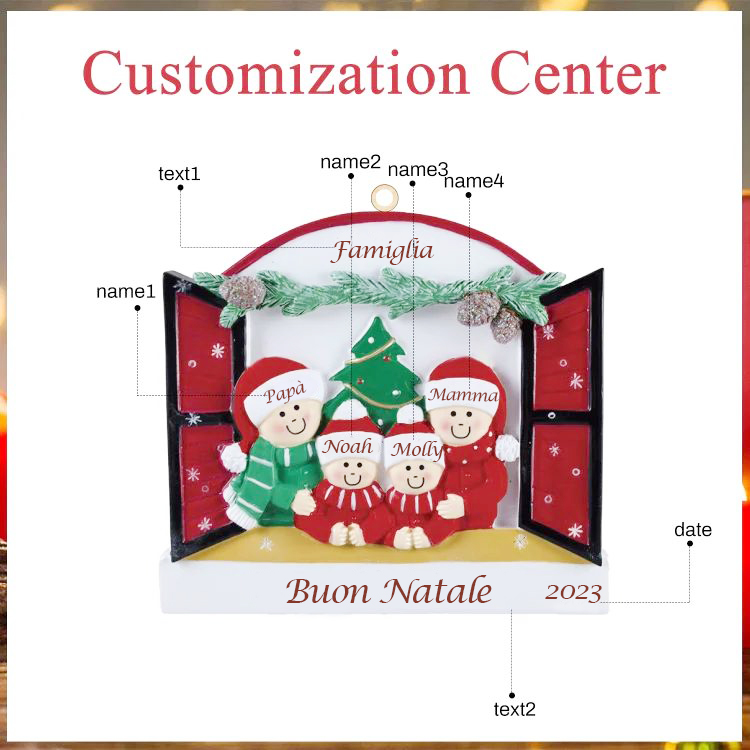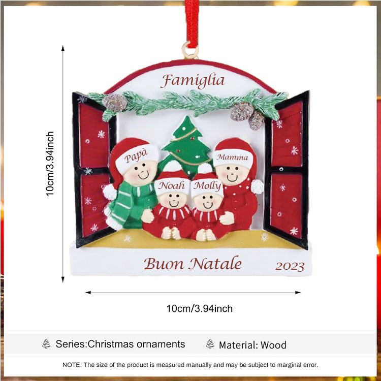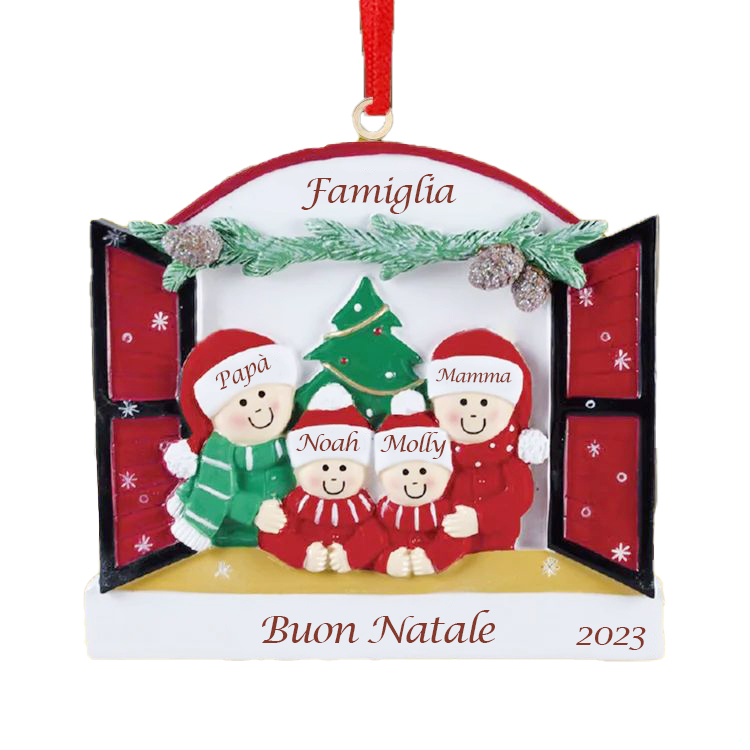 Famiglia dalla finestra-Ciondolo 2023 per albero di Natale 4 nomi personalizzabili