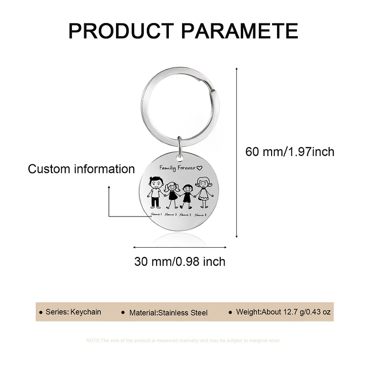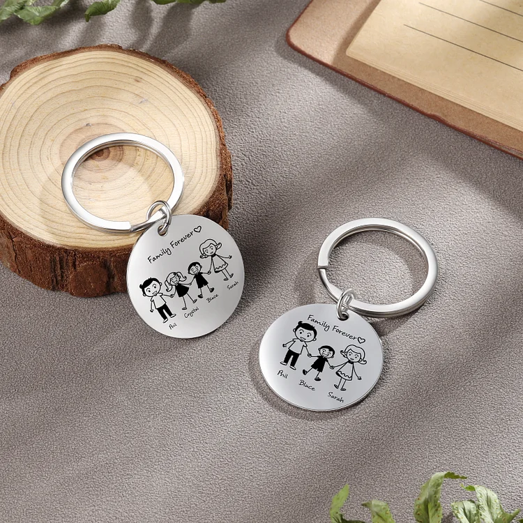Famiglia-Portachiavi 4 nomi personalizzati papà mamma e un figlio e una figlia regalo per famiglia