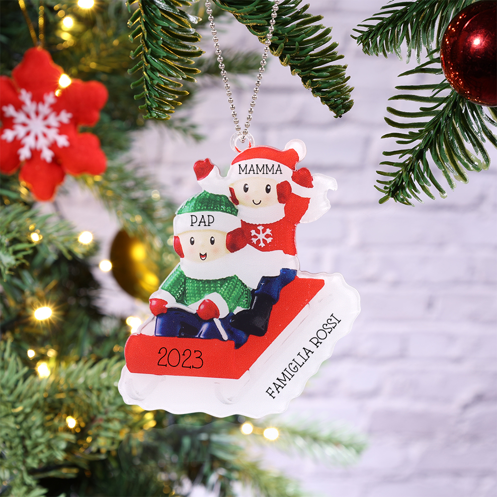 Famiglia sulla slitta ornamento natalizio personalizzabili 2 nomi