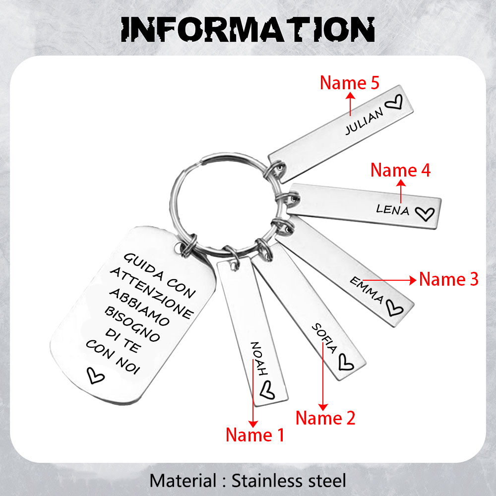Guida con attenzione-Portachiavi con ciondolo 5 nomi per papà regalo della festa di padre