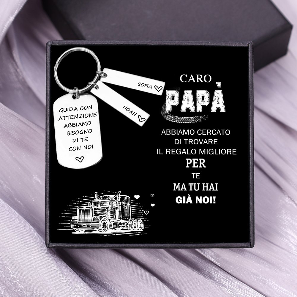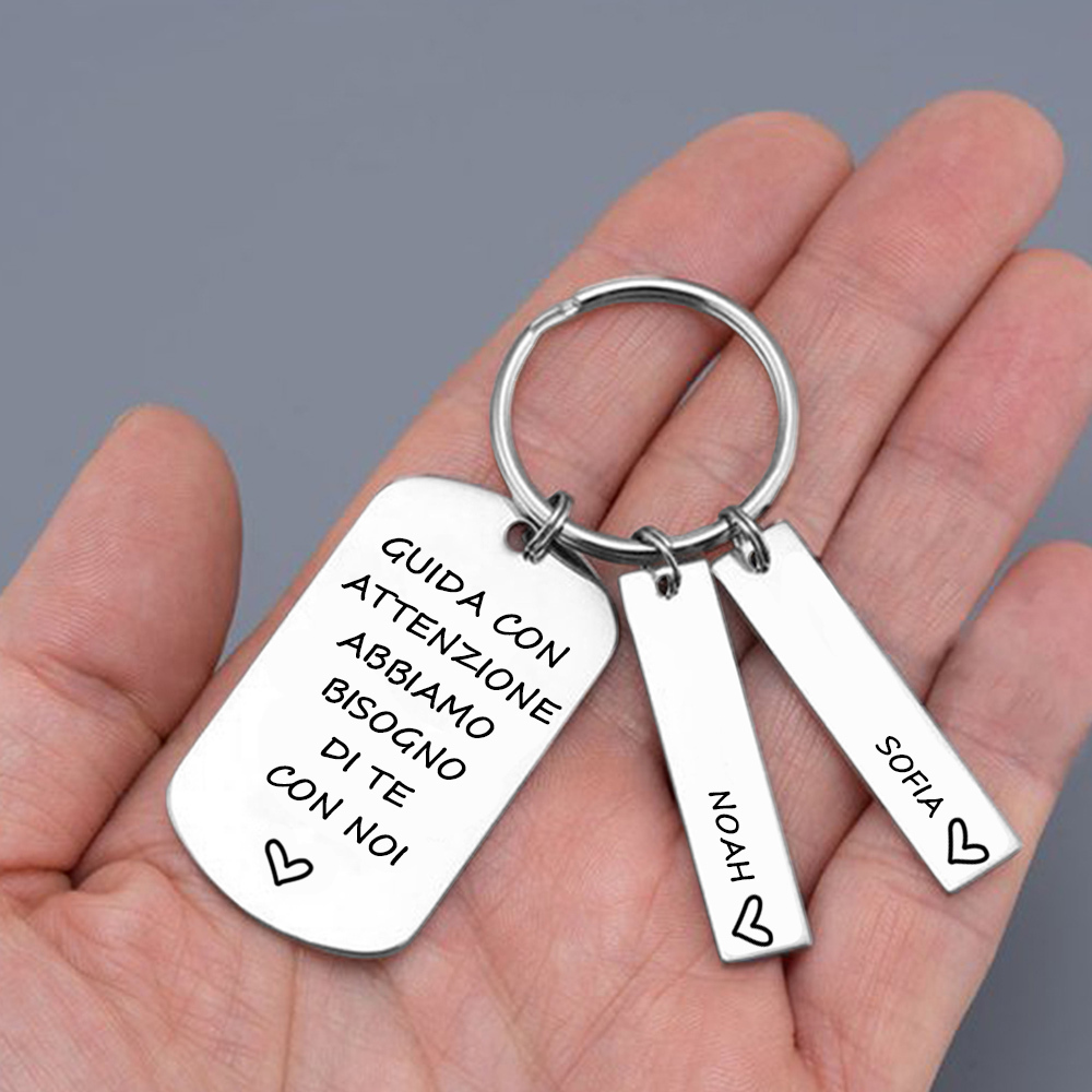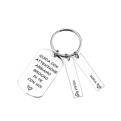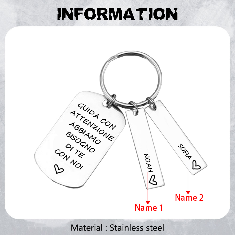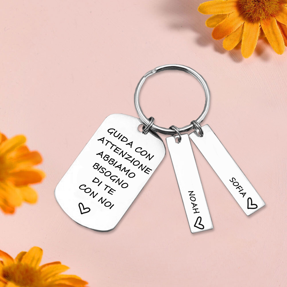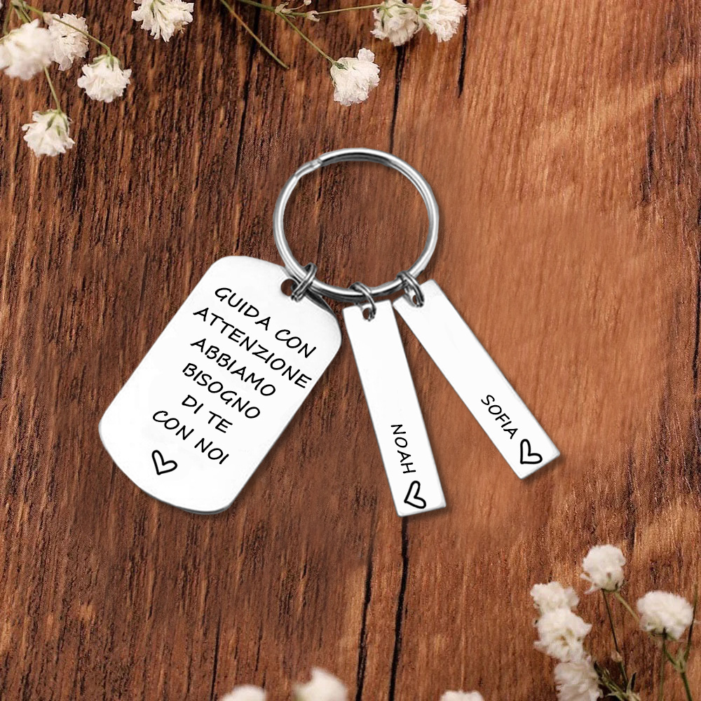 Guida con attenzione-Portachiavi e carta auto con ciondolo 2 nomi per papà regalo della festa di padre