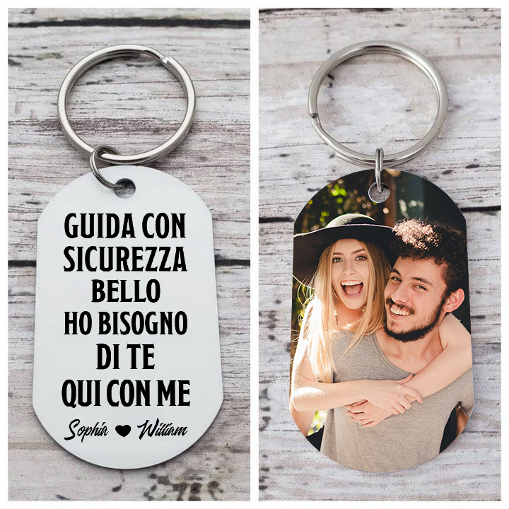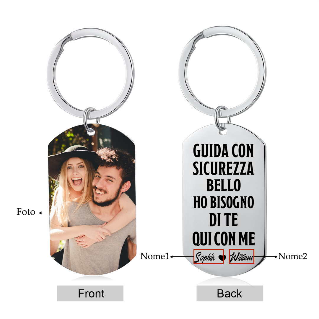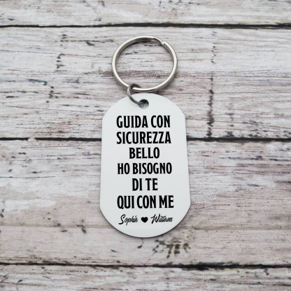 GUIDA CON SICUREZZA BELLO-Portachiavi Personalizzati Per Coppia 2 nomi