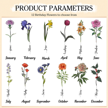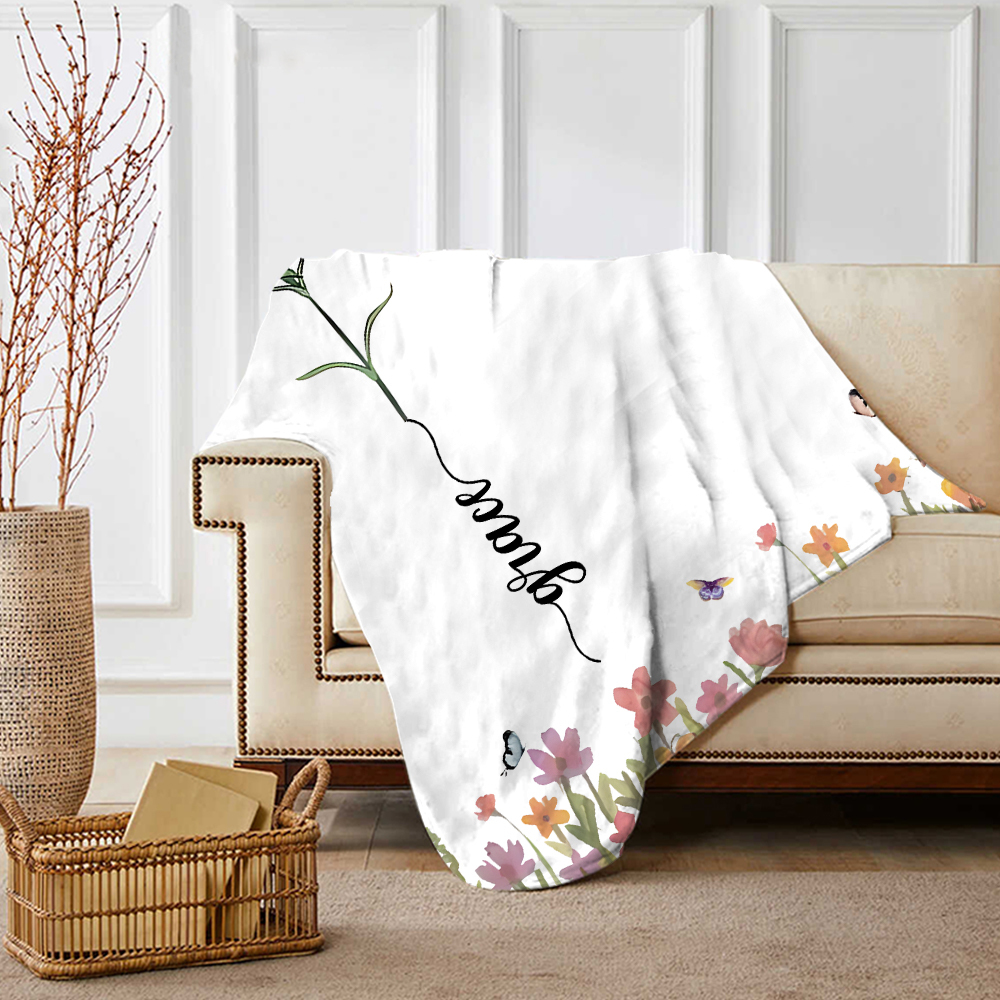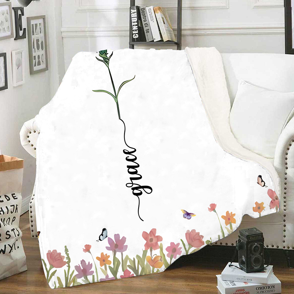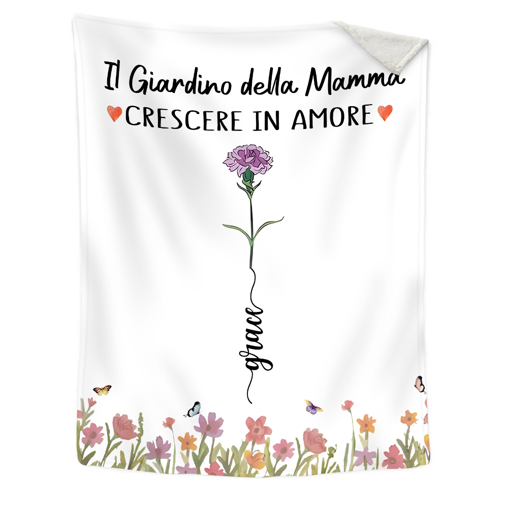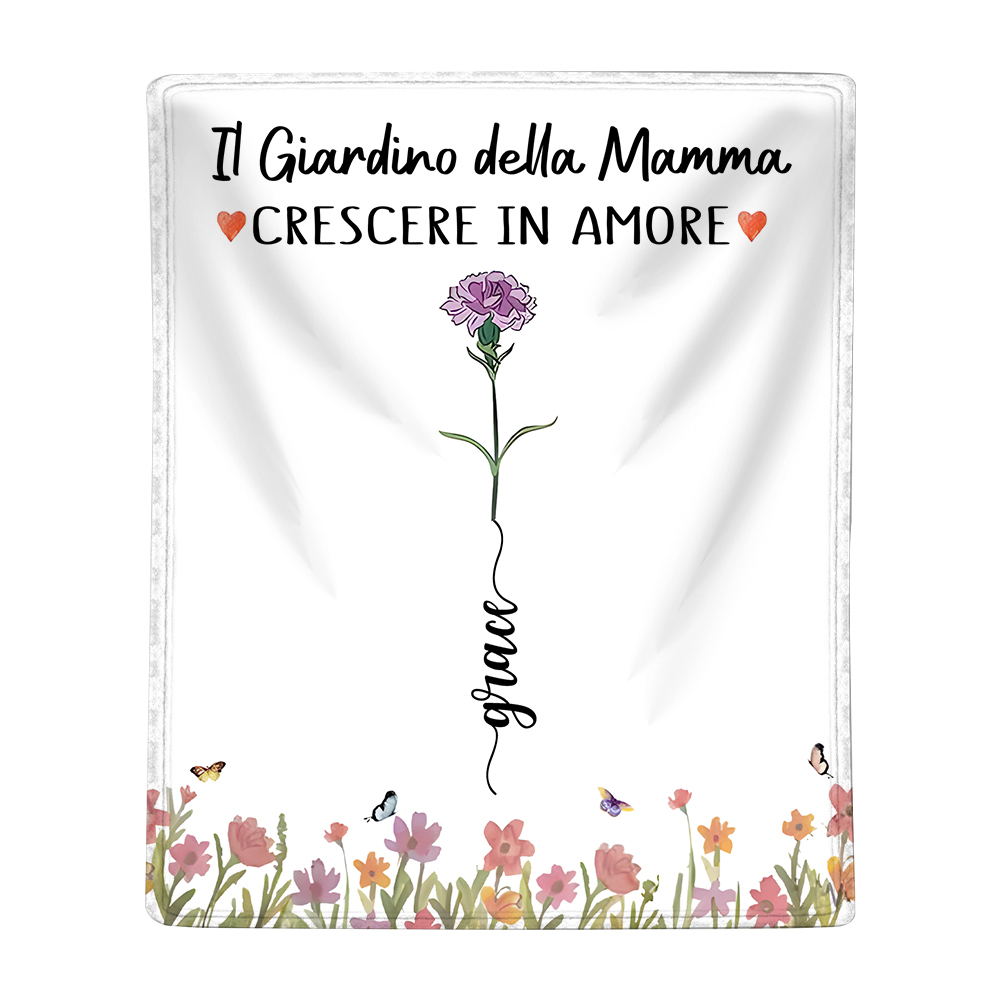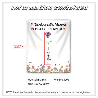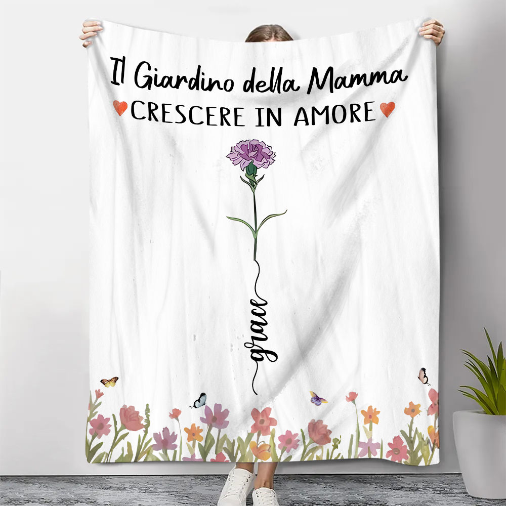 Il Giradino della Mamma-Coperta con fiore di nascita personalizzato e 1 nome per mamma e la famiglia
