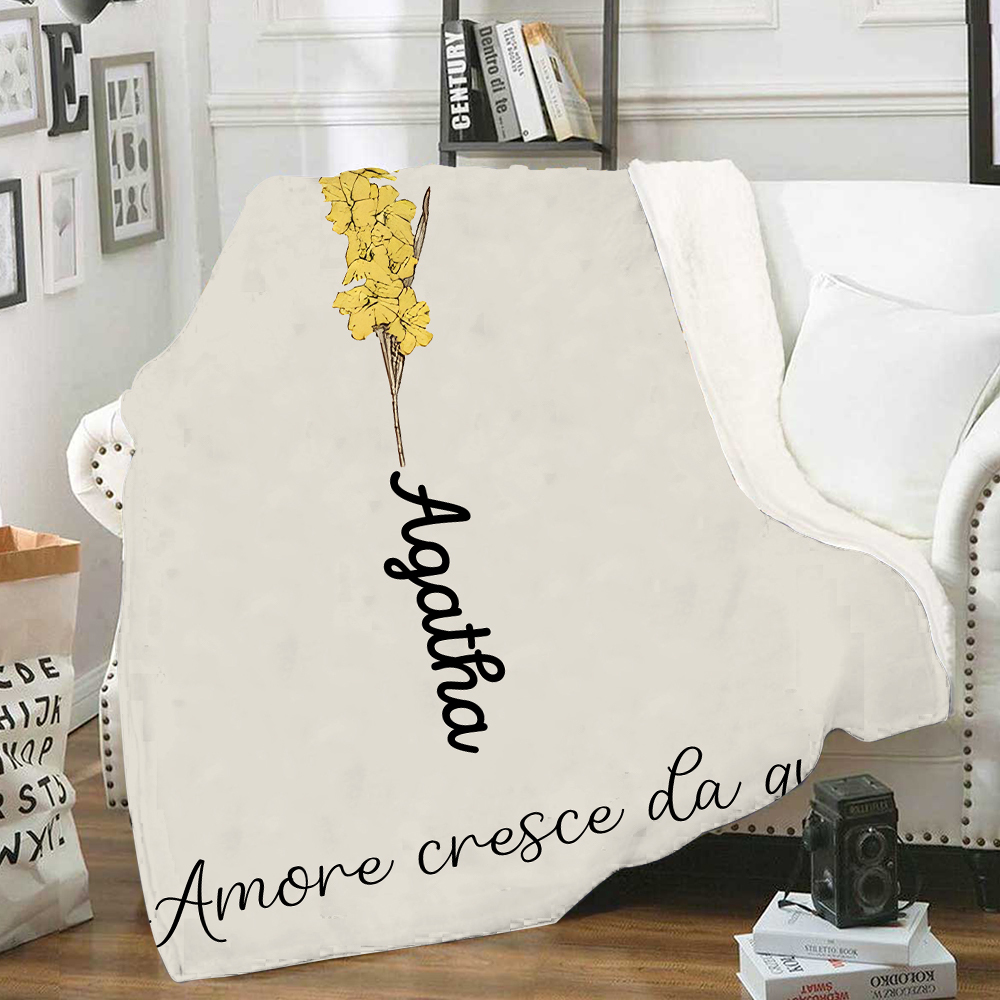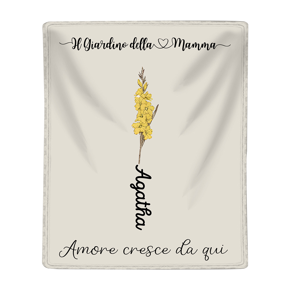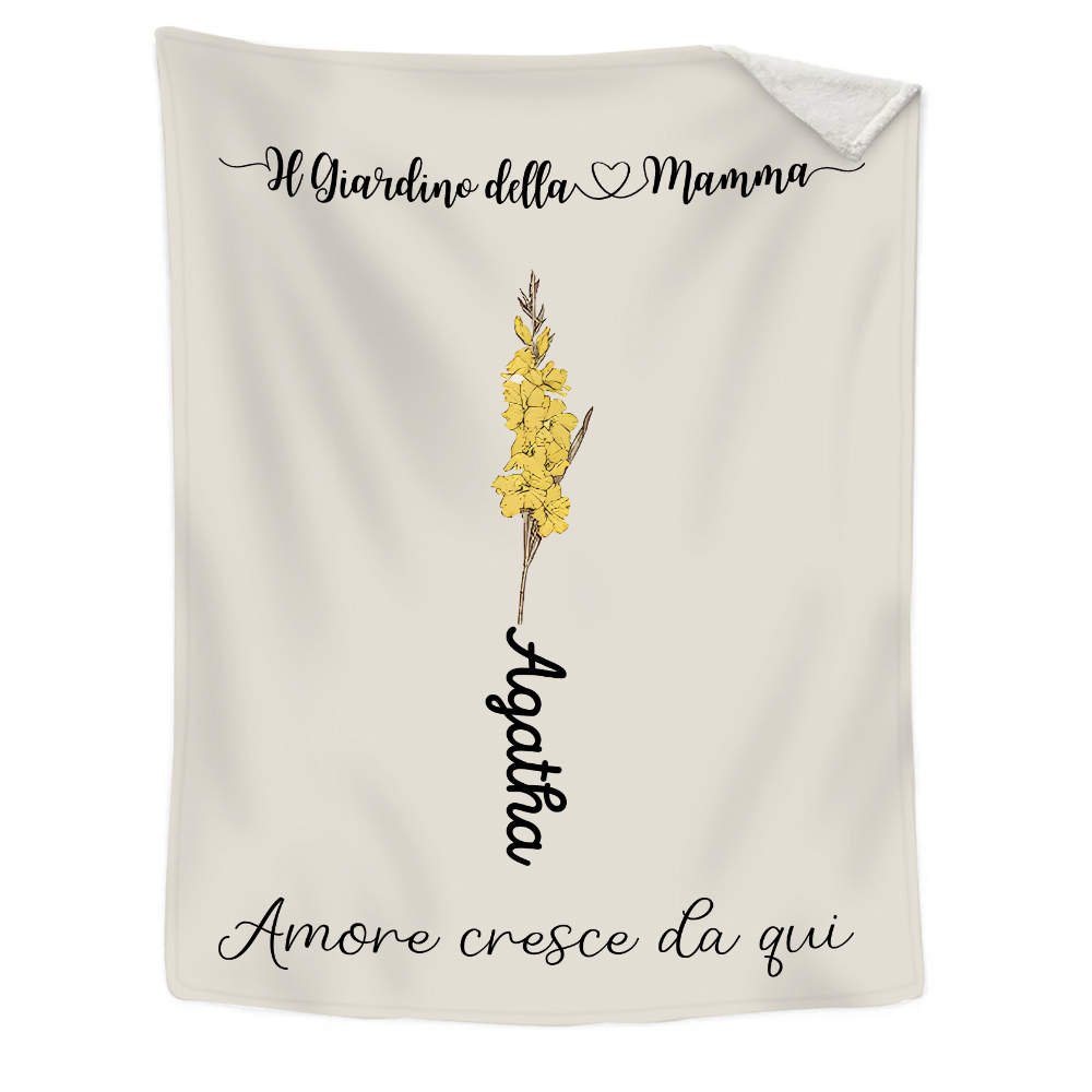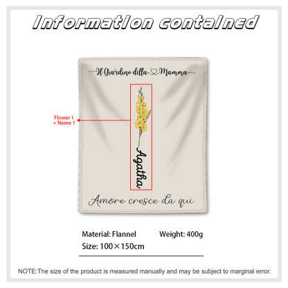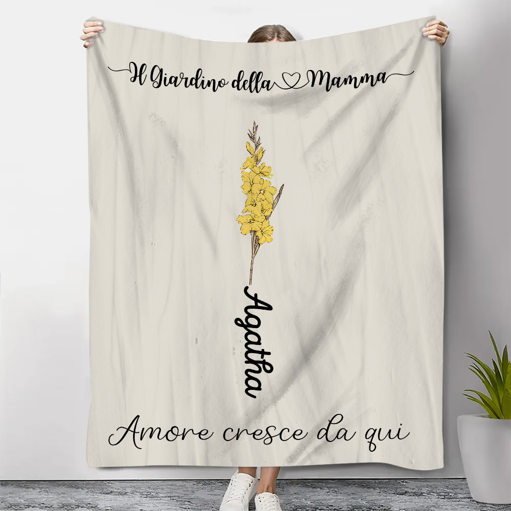Il Giradino della Mamma,l'amore cresce da qui-Coperta con fiore di nascita personalizzato e 1 nome per mamma/nonna
