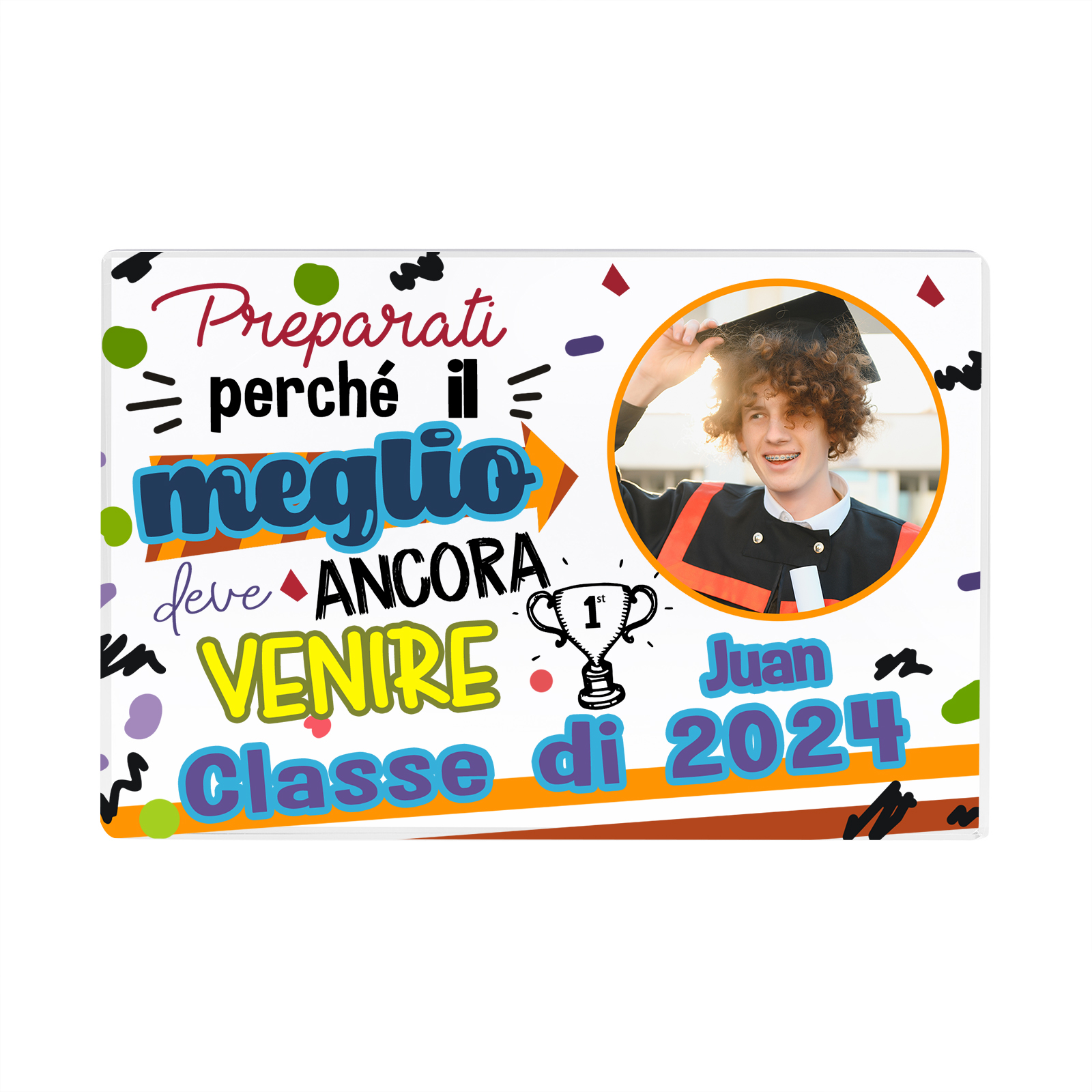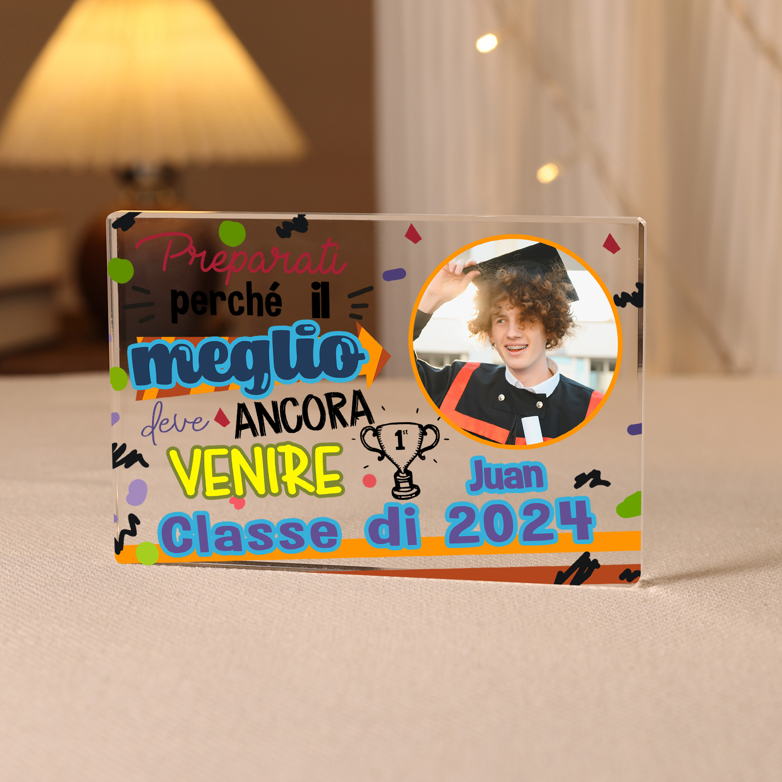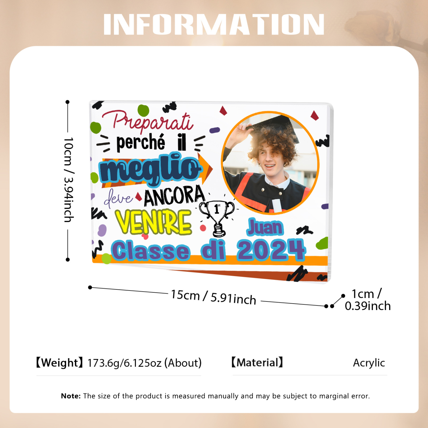 Il meglio ancora venire-Decorazione acrilica di laurea 1 nome e 1 foto e 1 testo personalizzati per laurea