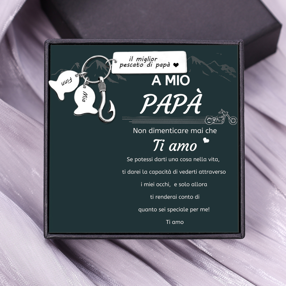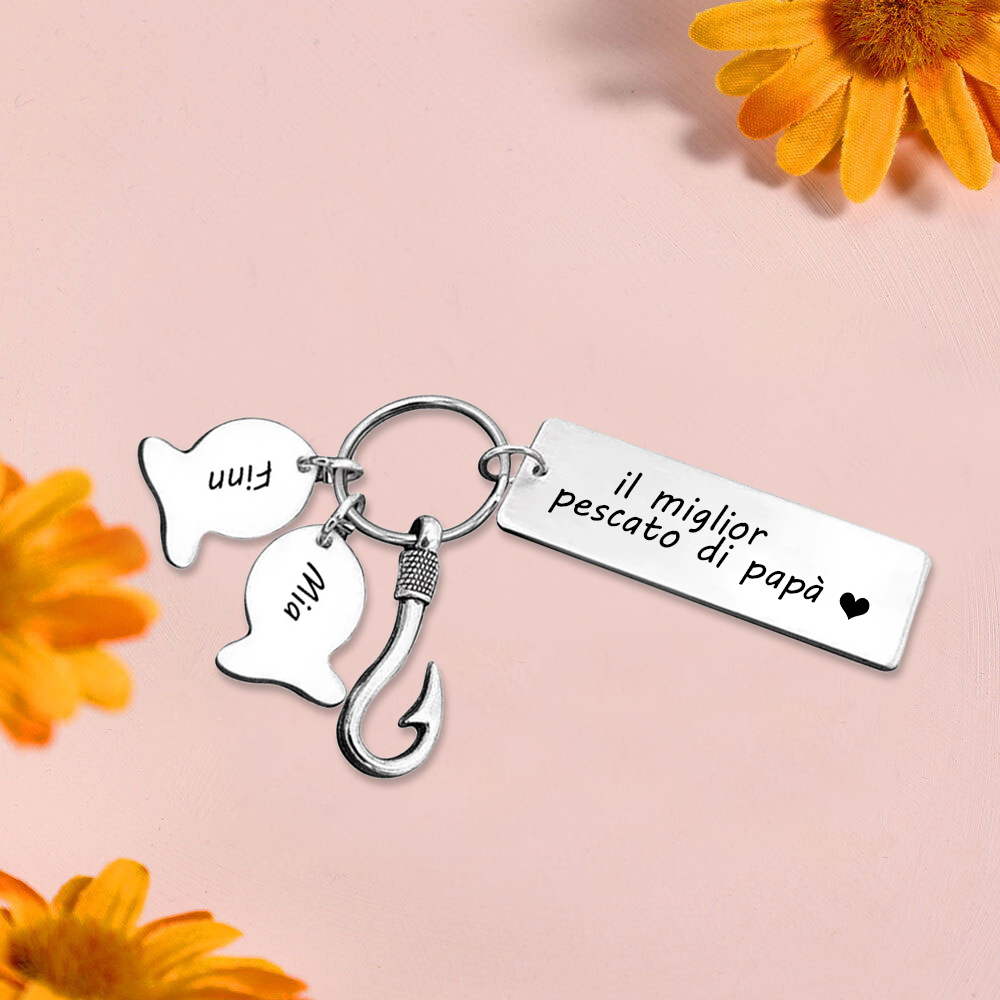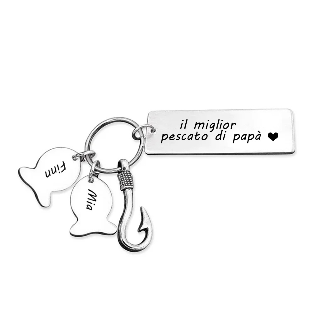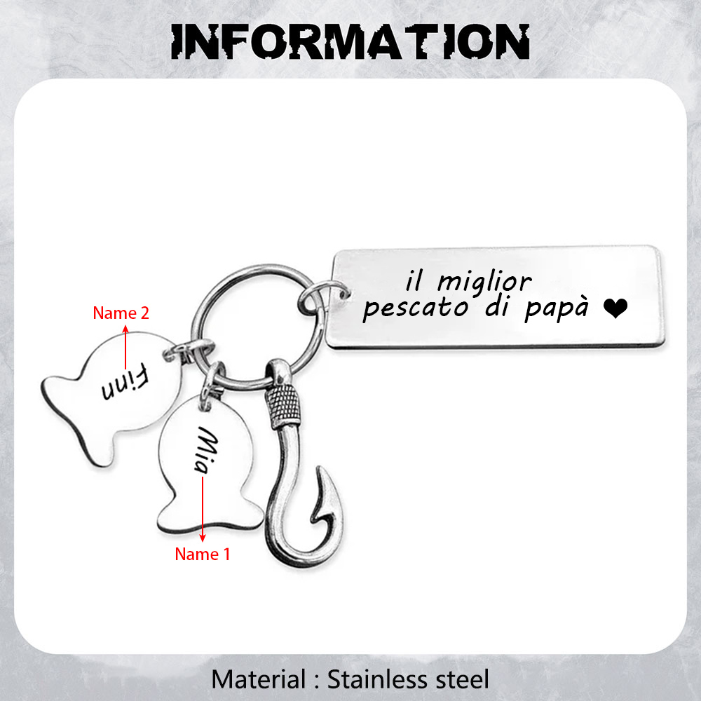 Il miglior pescato di papà-Portachiavi e carta con ciondolo amo 2 nomi per papà regalo della festa di padre