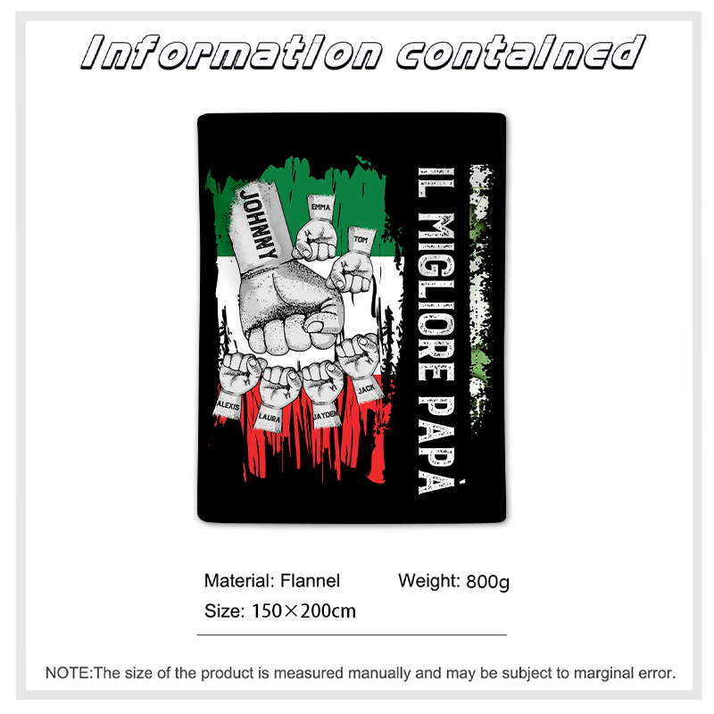 Il migliore papà-Coperta Pugno a pugno regalo 5 nomi personalizzati per papà