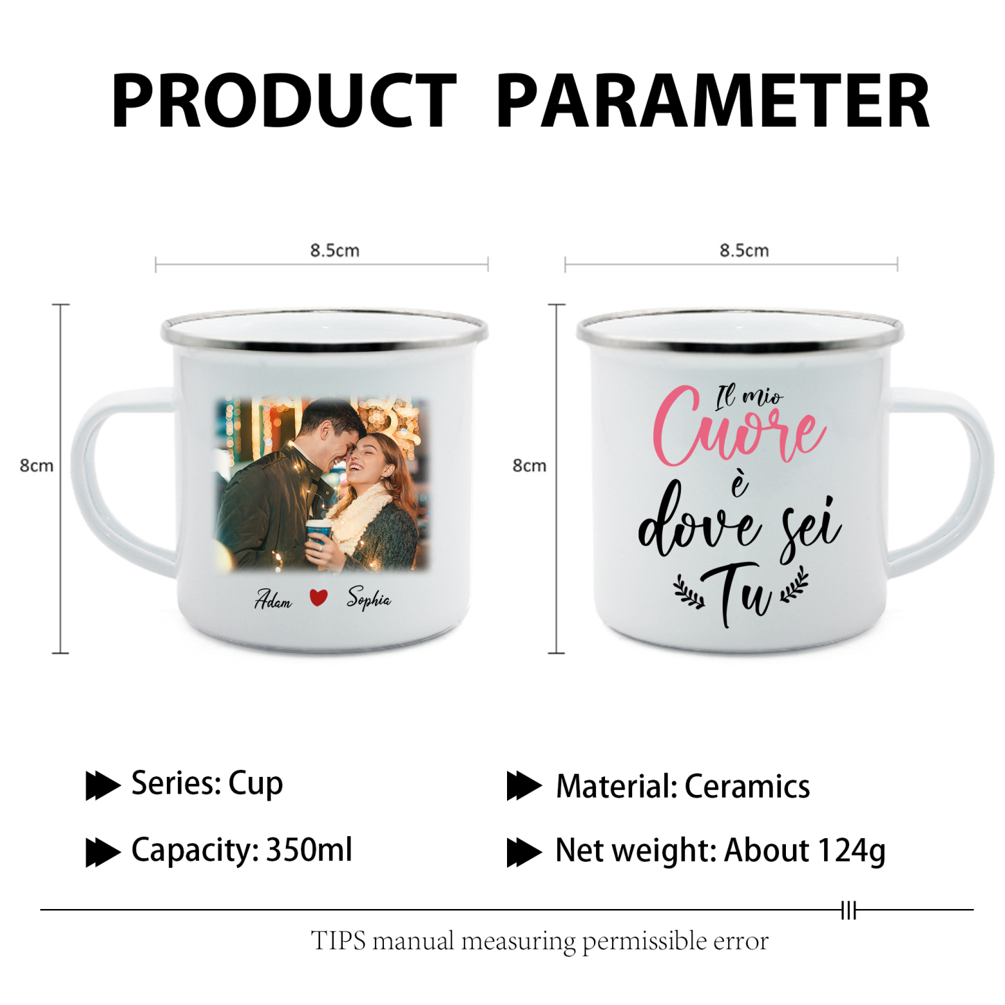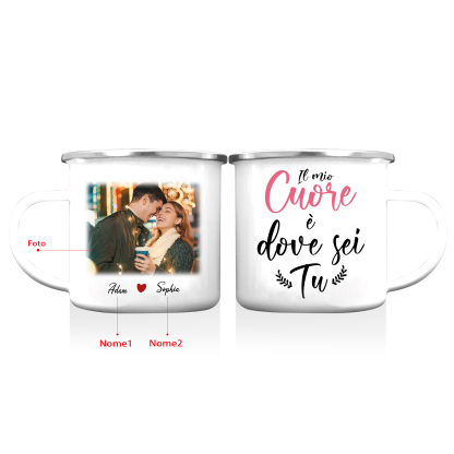 Il mio Cuore è dove sei Tu Tazza per coppia personalizzabile con 2 nomi