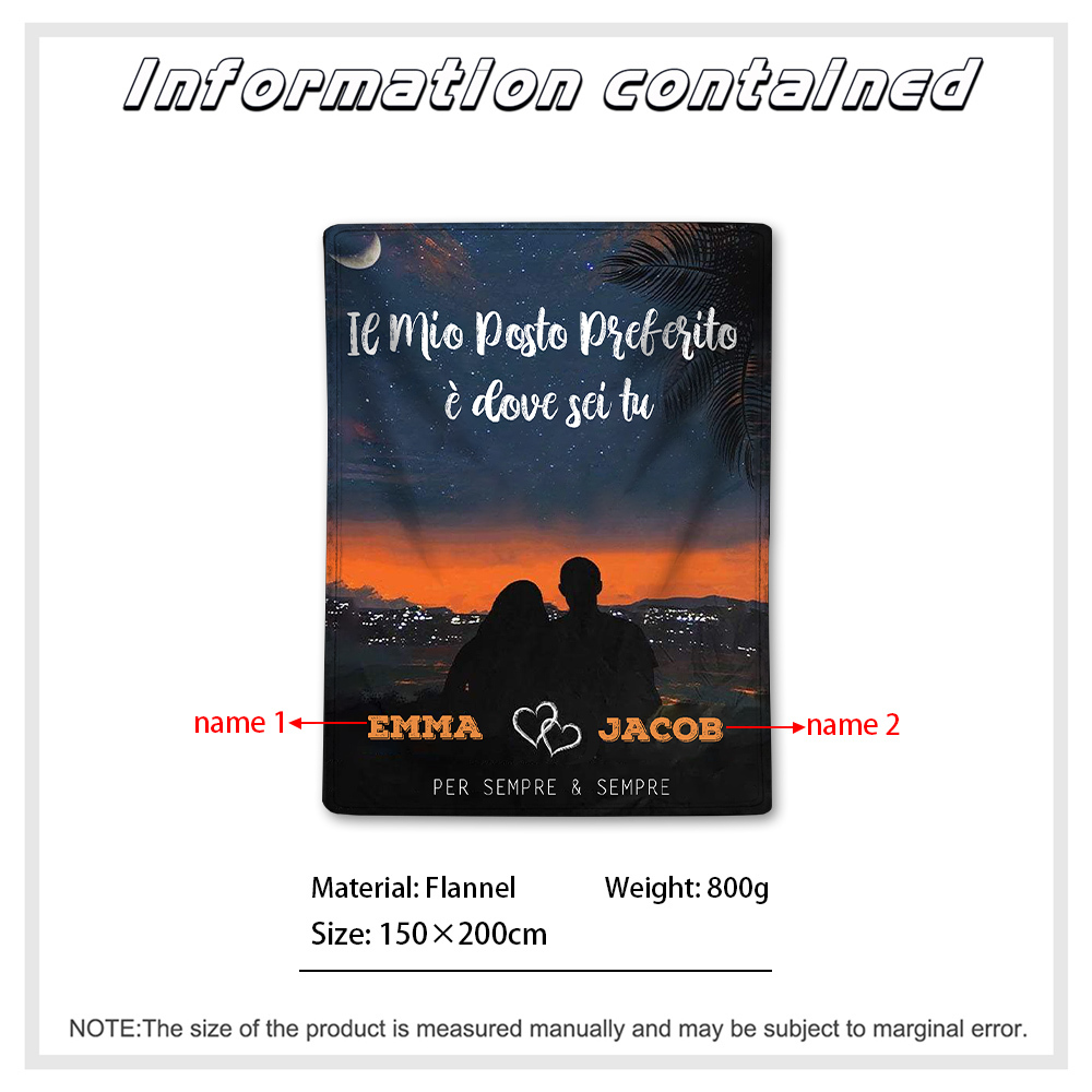 Il mio posto preferito è dove sei TU-Coperta per coppia 2 nomi personalizzabili