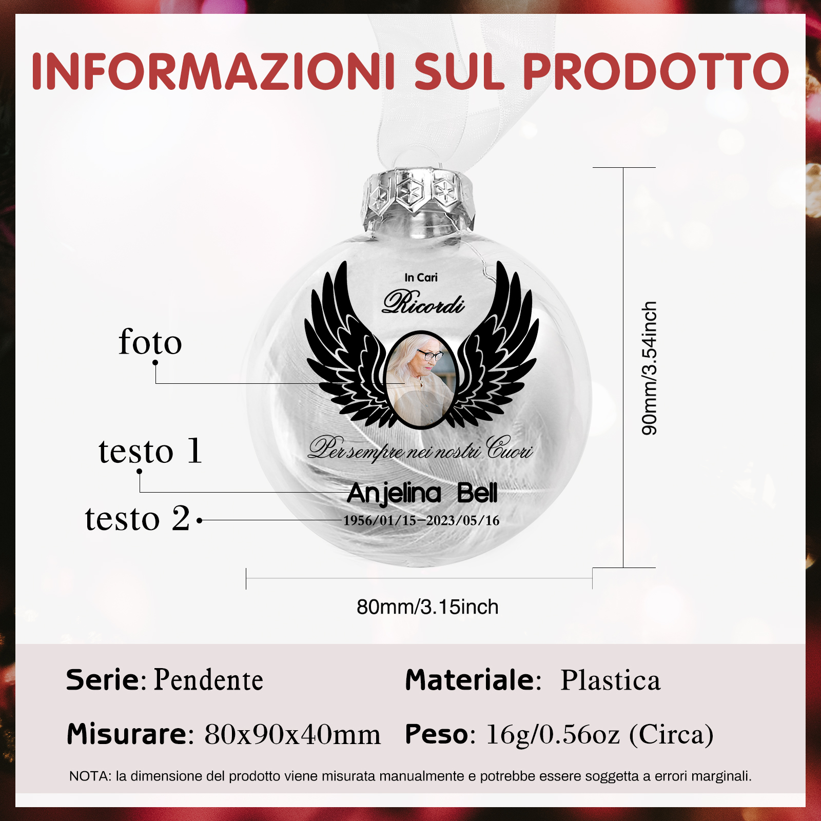 In cari ricordi palla trasparente commemorativa per Natale 1 nome foto personalizzabile