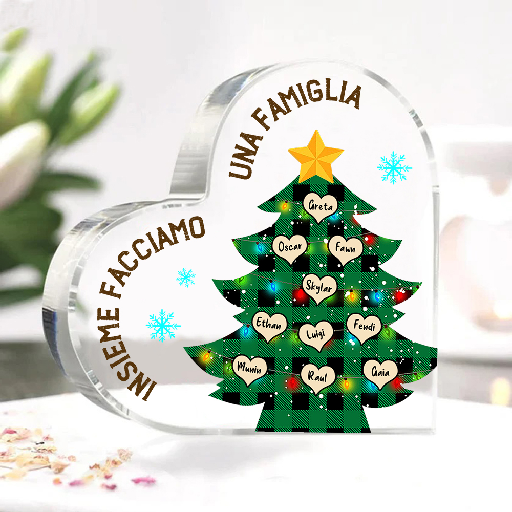 INSIEME FACCIAMO UNA FAMIGLIA-Targa Acrilica 10 nomi personalizzabili regalo familiare natalizio
