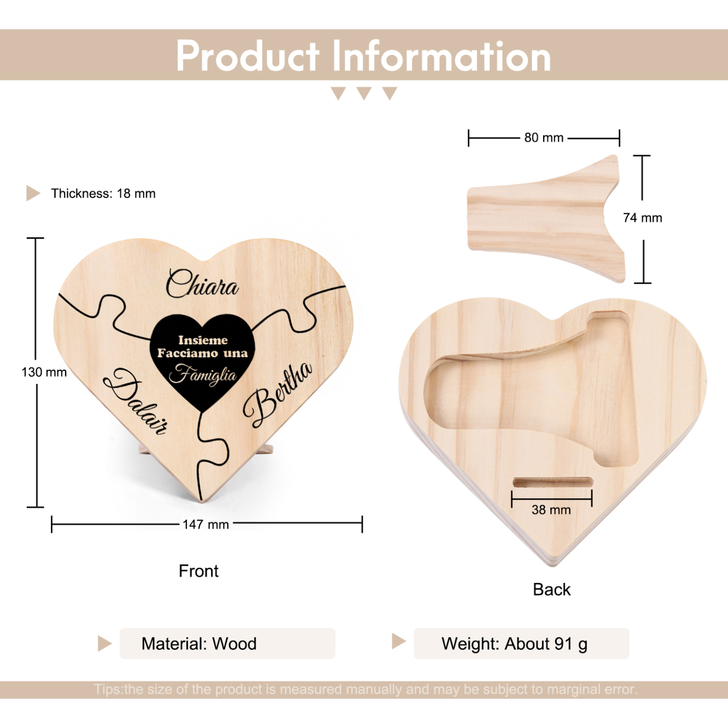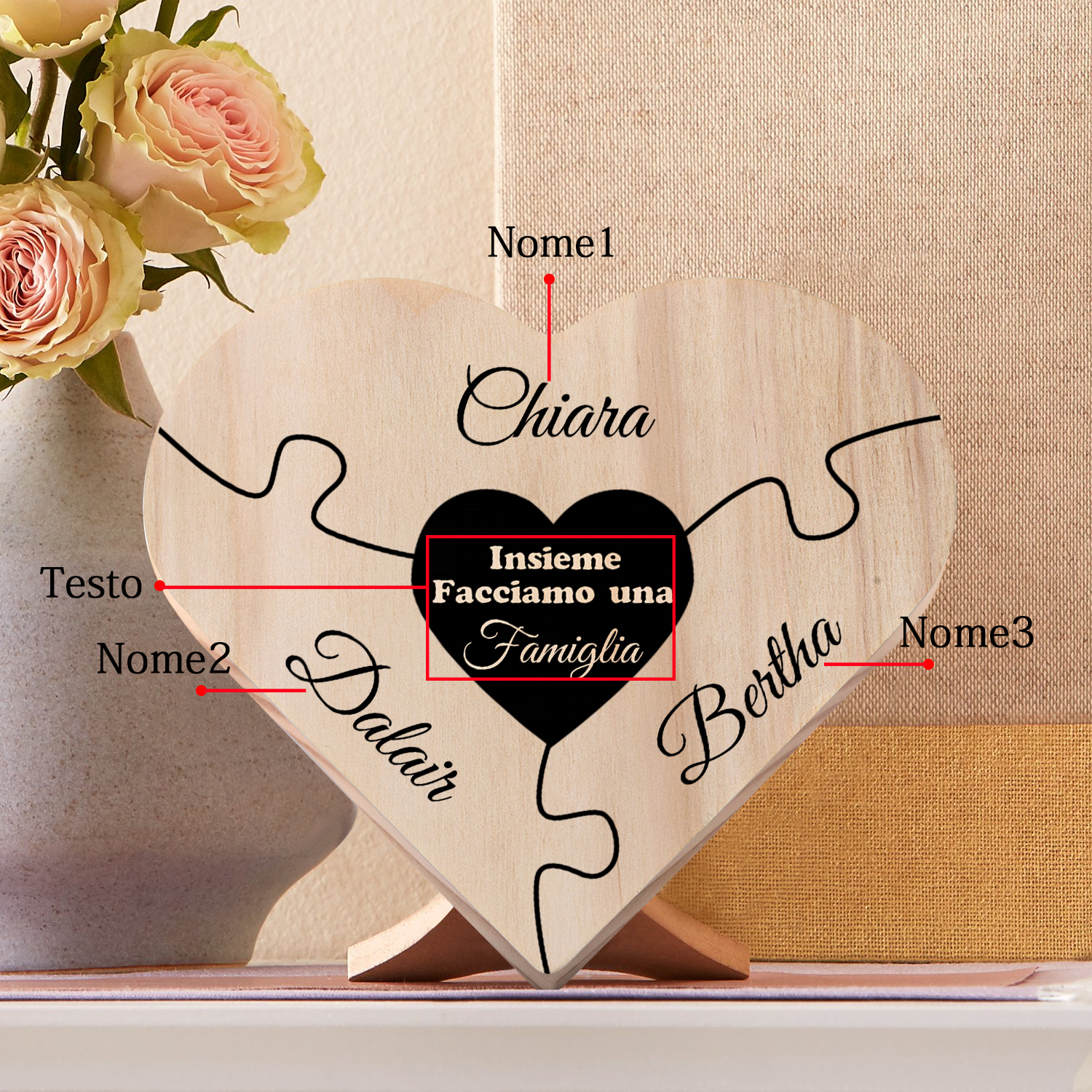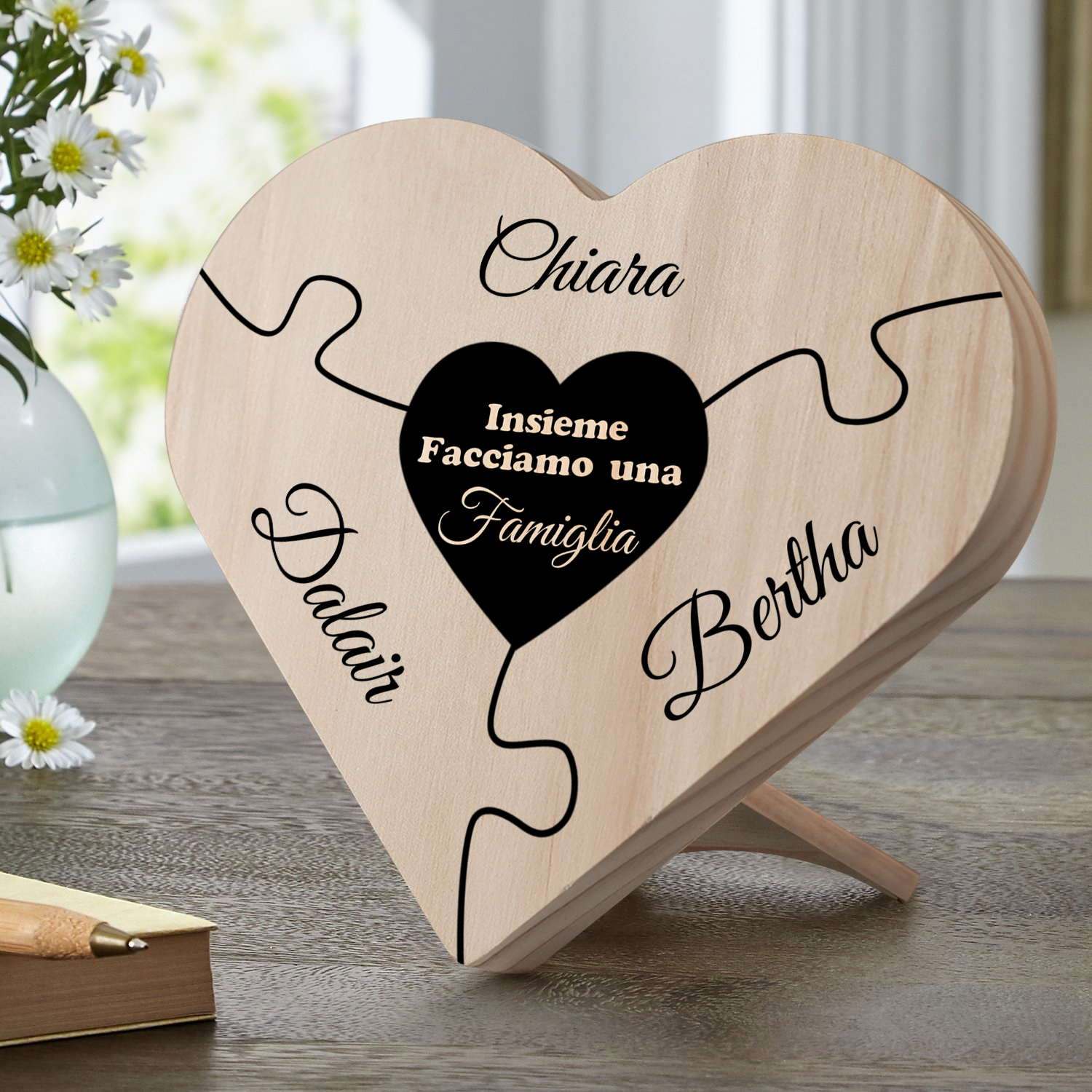 Insieme facciamo una famiglia-targa puzzle familiare 3 nomi personalizzabili