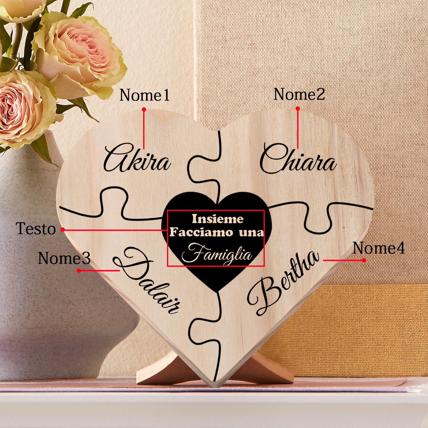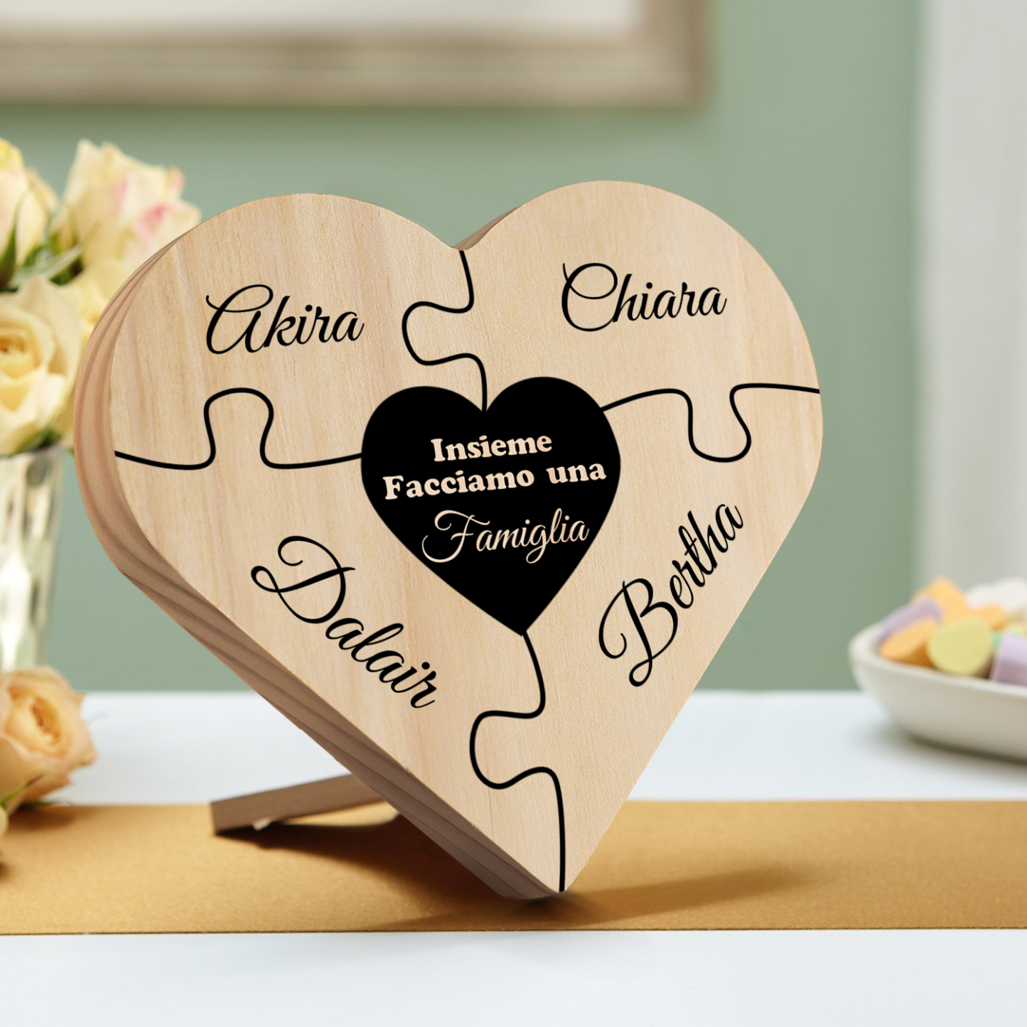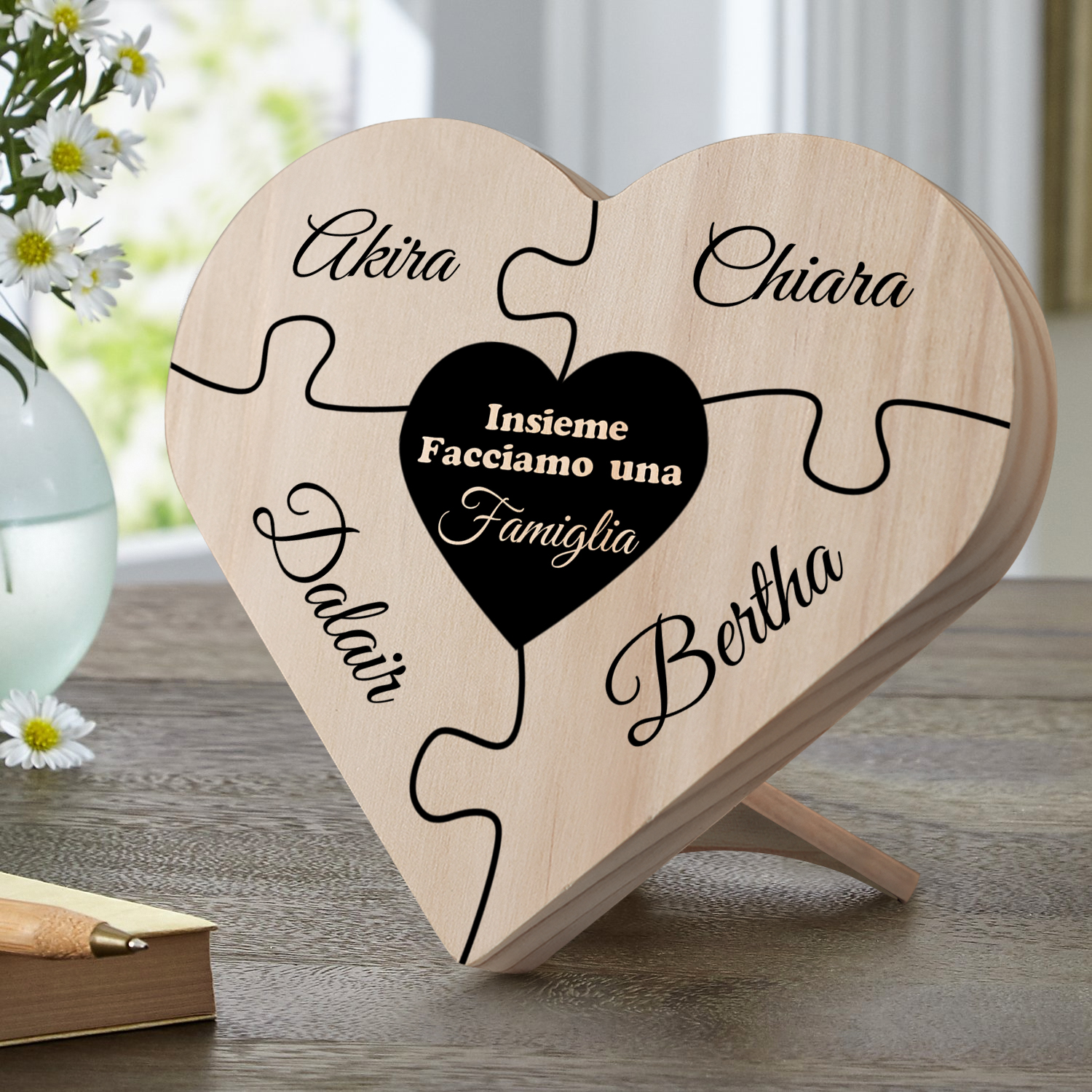 Insieme facciamo una famiglia-targa puzzle familiare 4 nomi personalizzabili