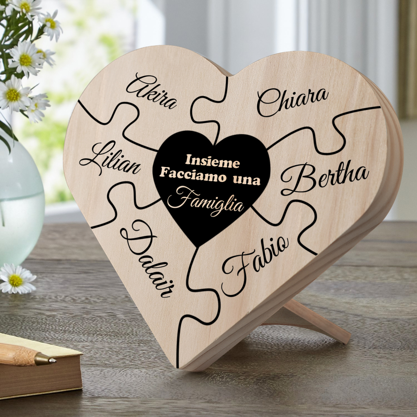 Insieme facciamo una famiglia-targa puzzle familiare 6 nomi personalizzabili