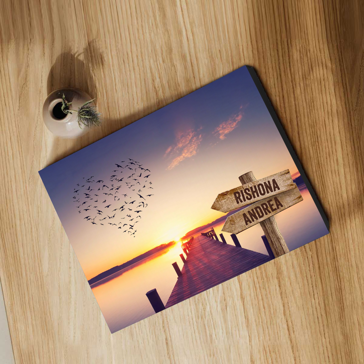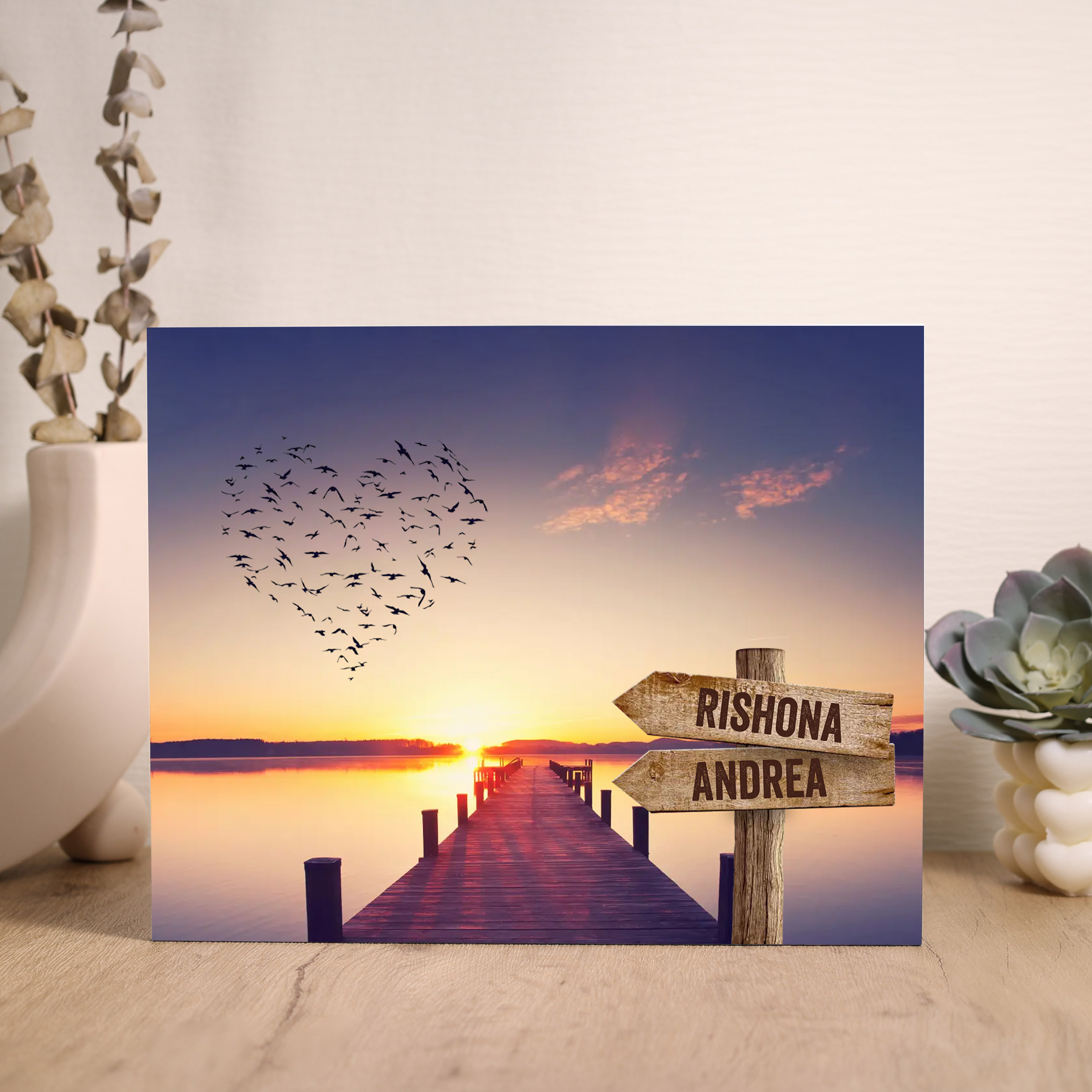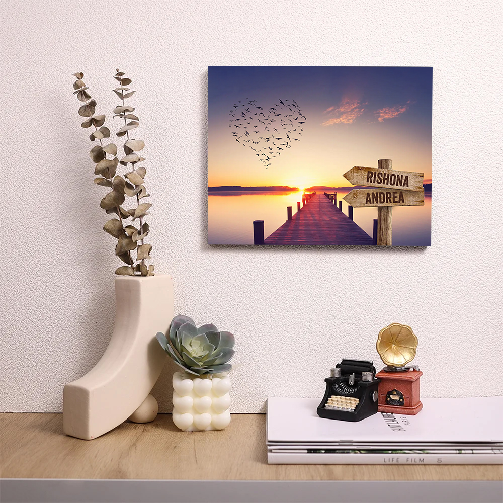 Io & Te Cuore-Targa di Legno Per Coppia 2 nomi Personalizzabile