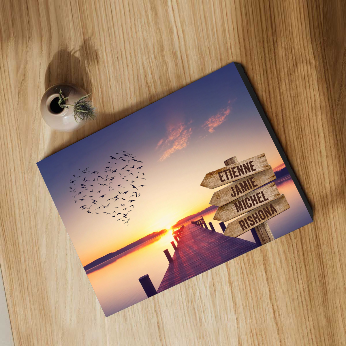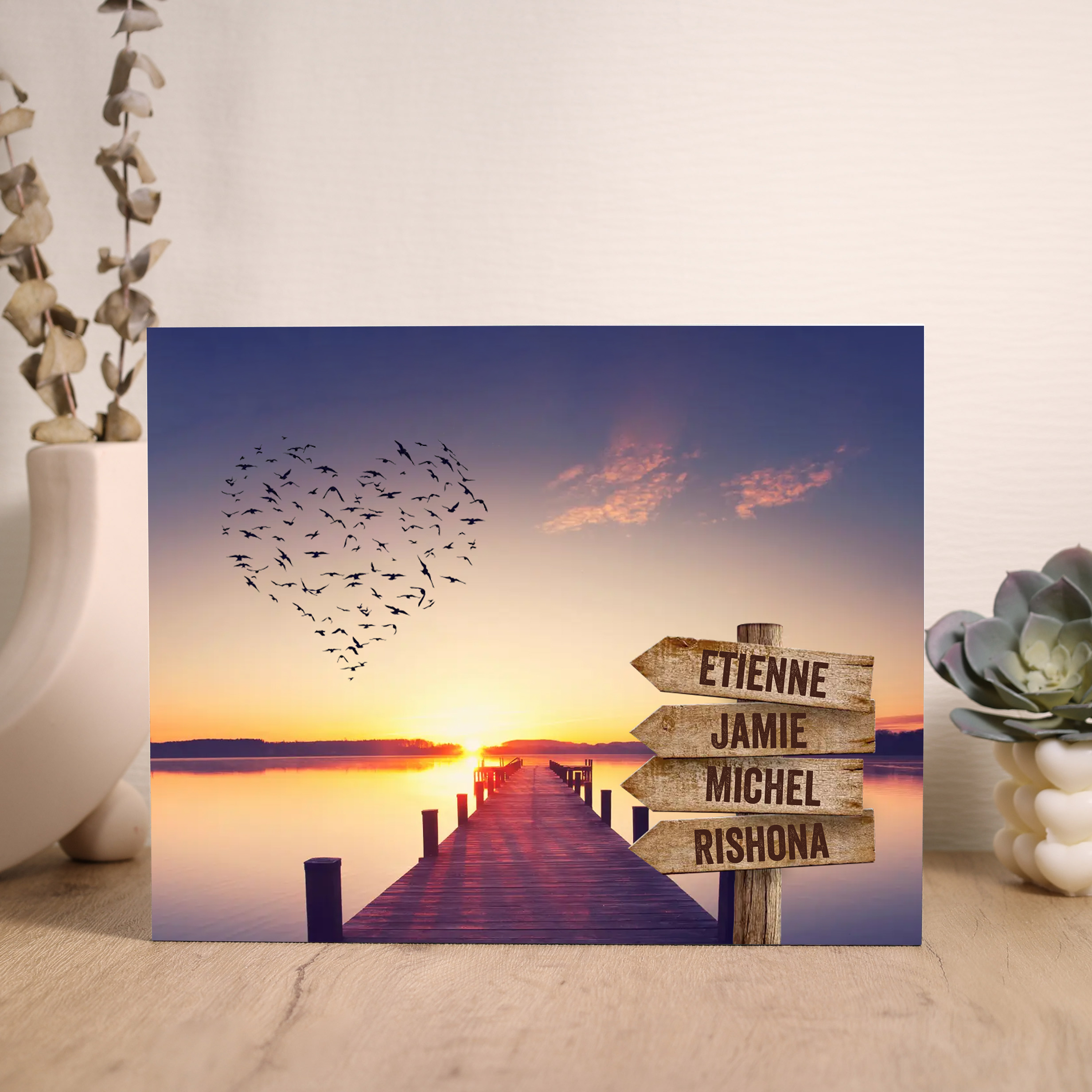 Io & Te Cuore-Targa di Legno Per Coppia 4 nomi Personalizzabile