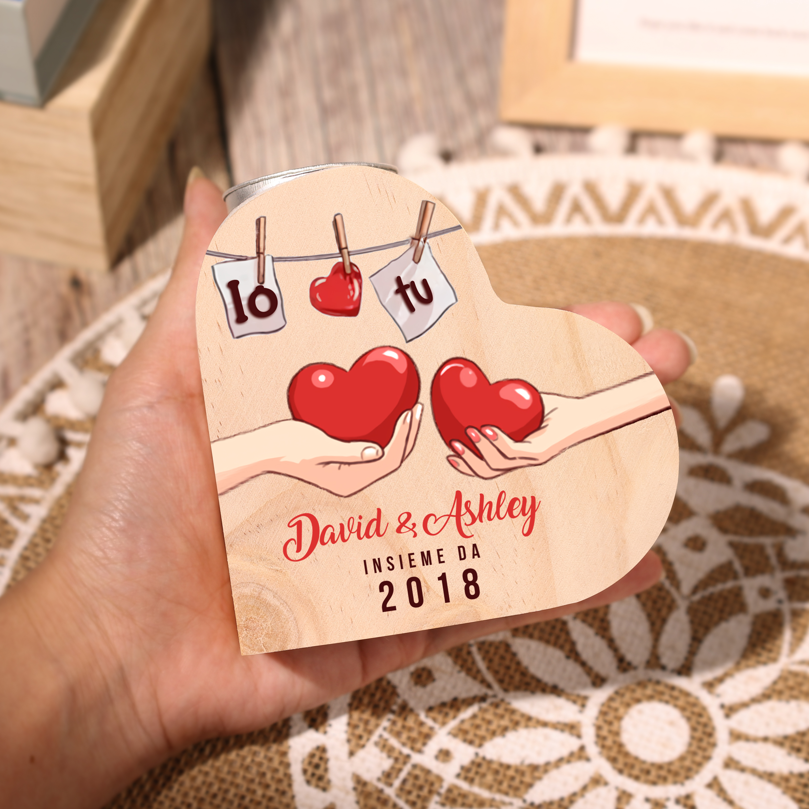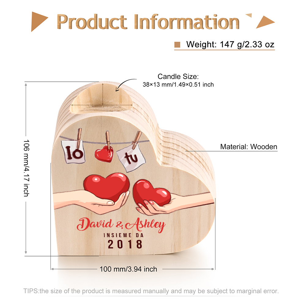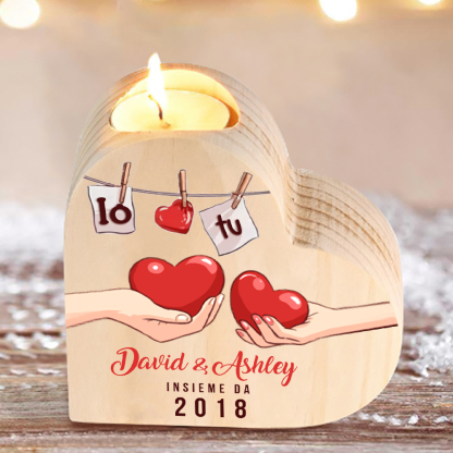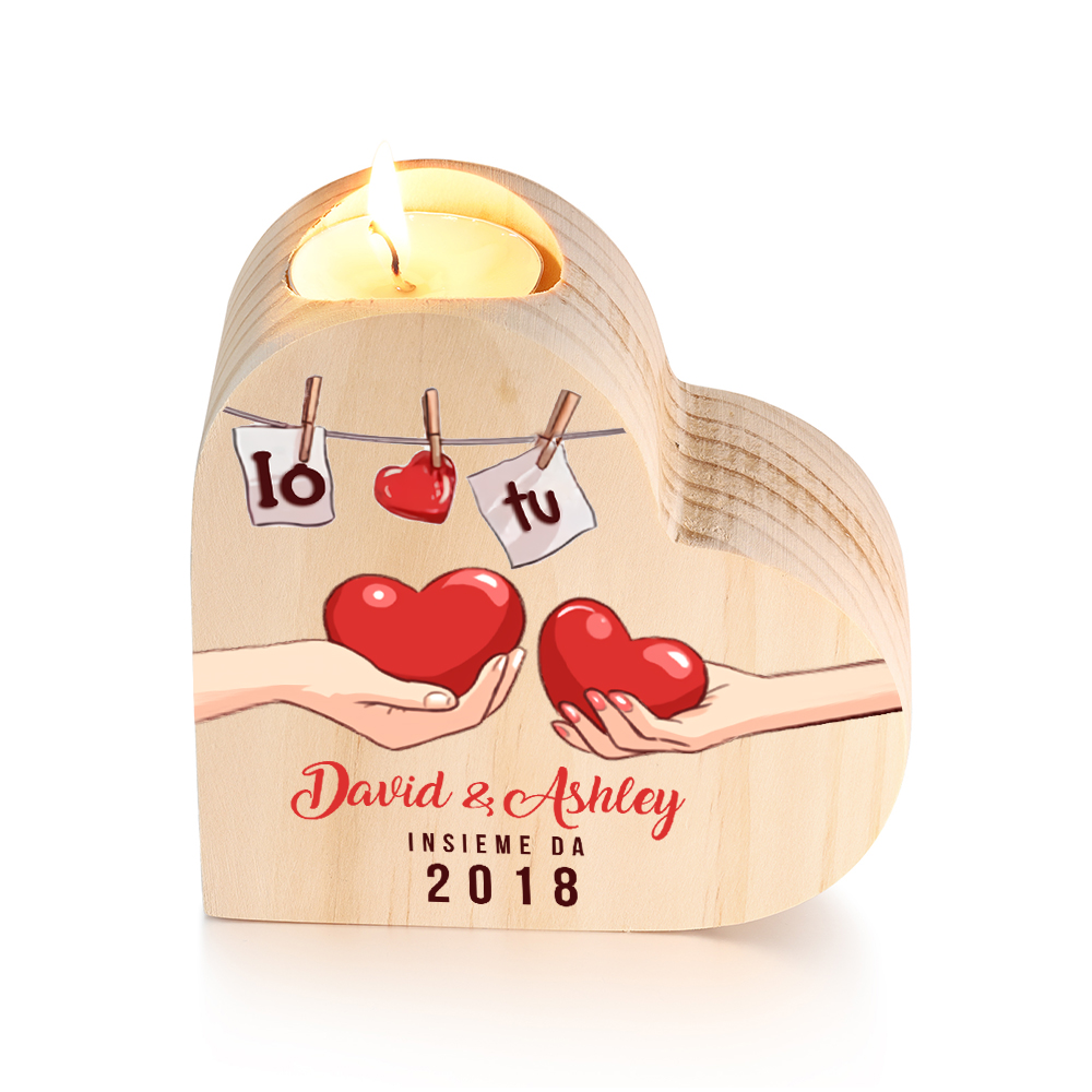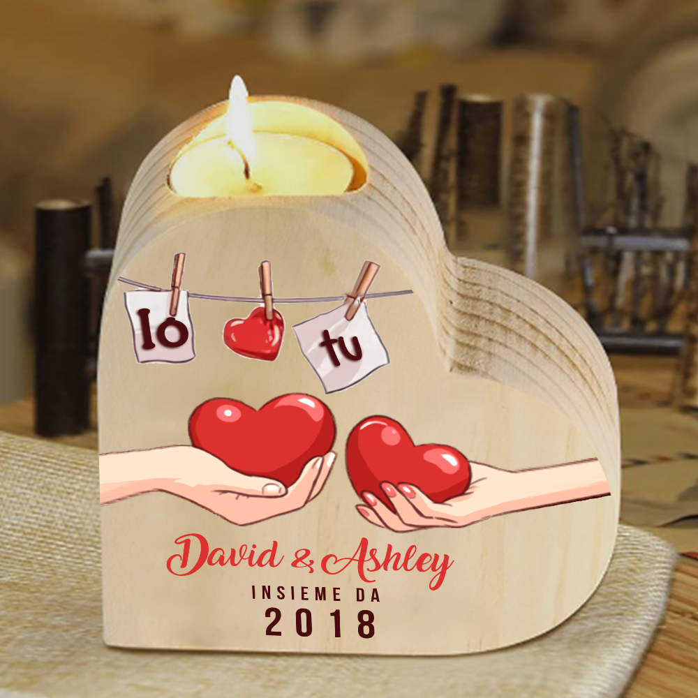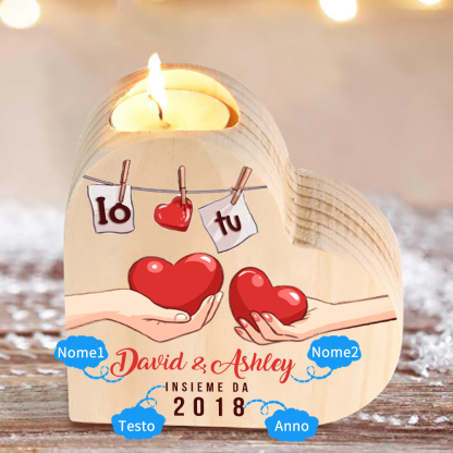 Io & Tu cuore nella mano insieme da-Candelieri a cuore per coppia 2 nomi 1 testo e 1 anno personalizzabili