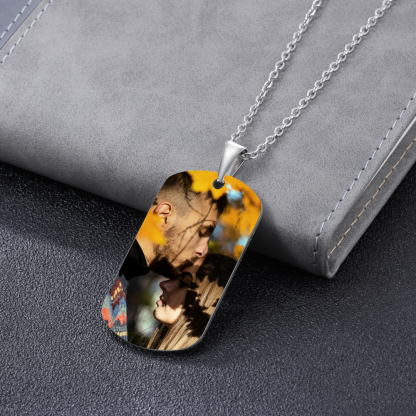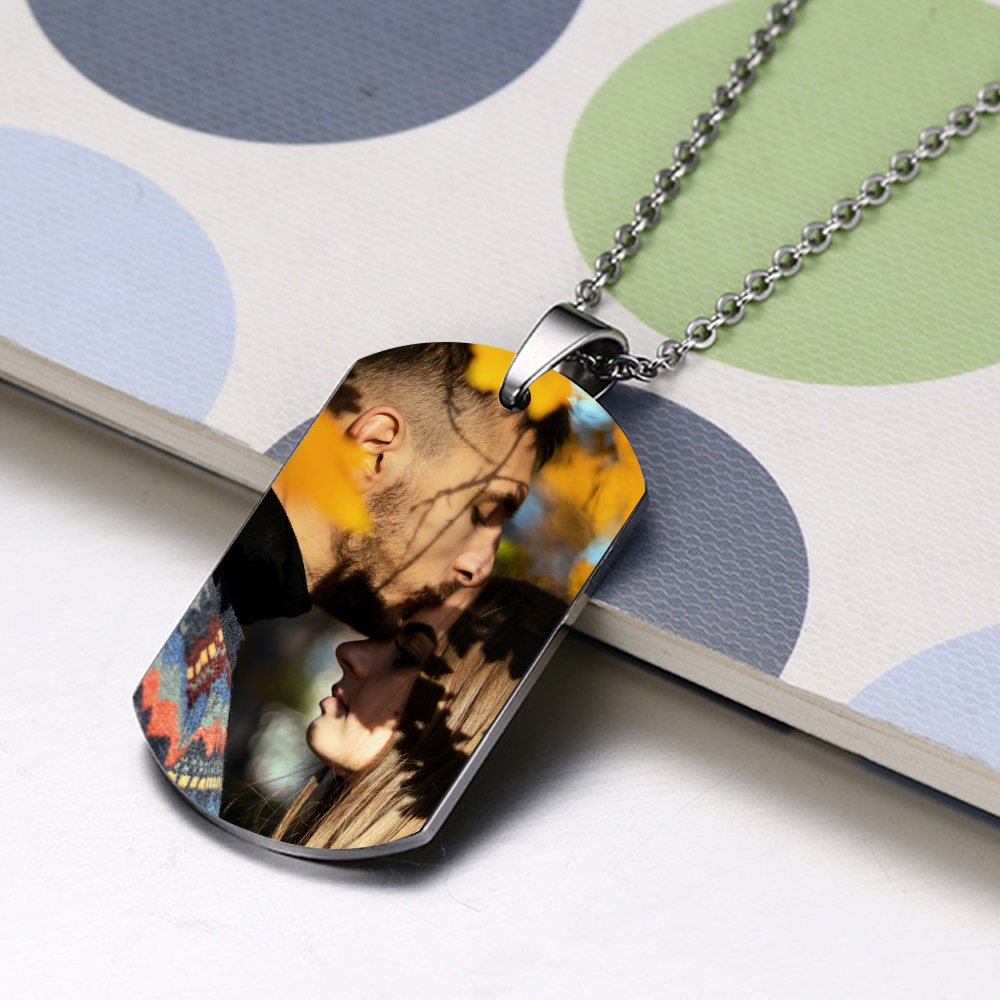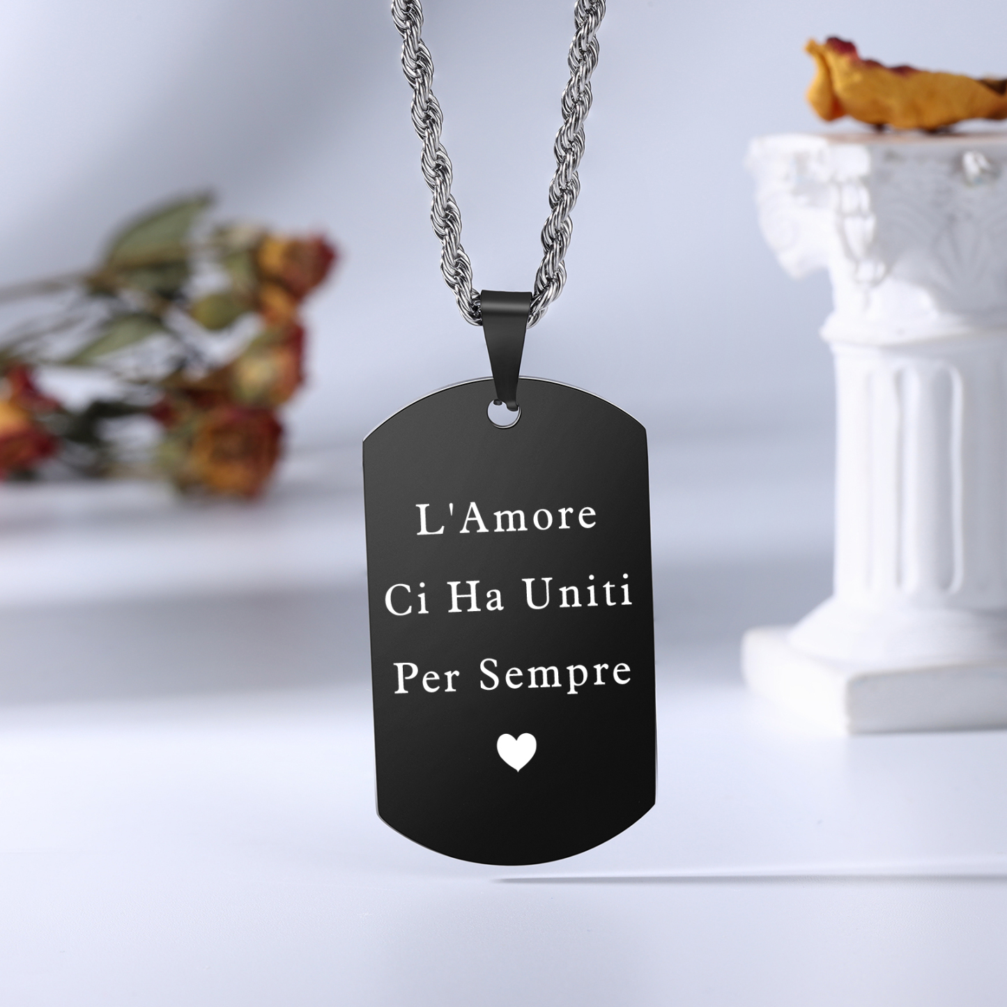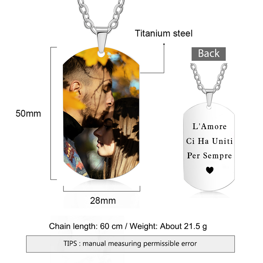L'amore ci ha uniti-Collana acciaio inox per coppia1 testo e 1 foto personalizzabili
