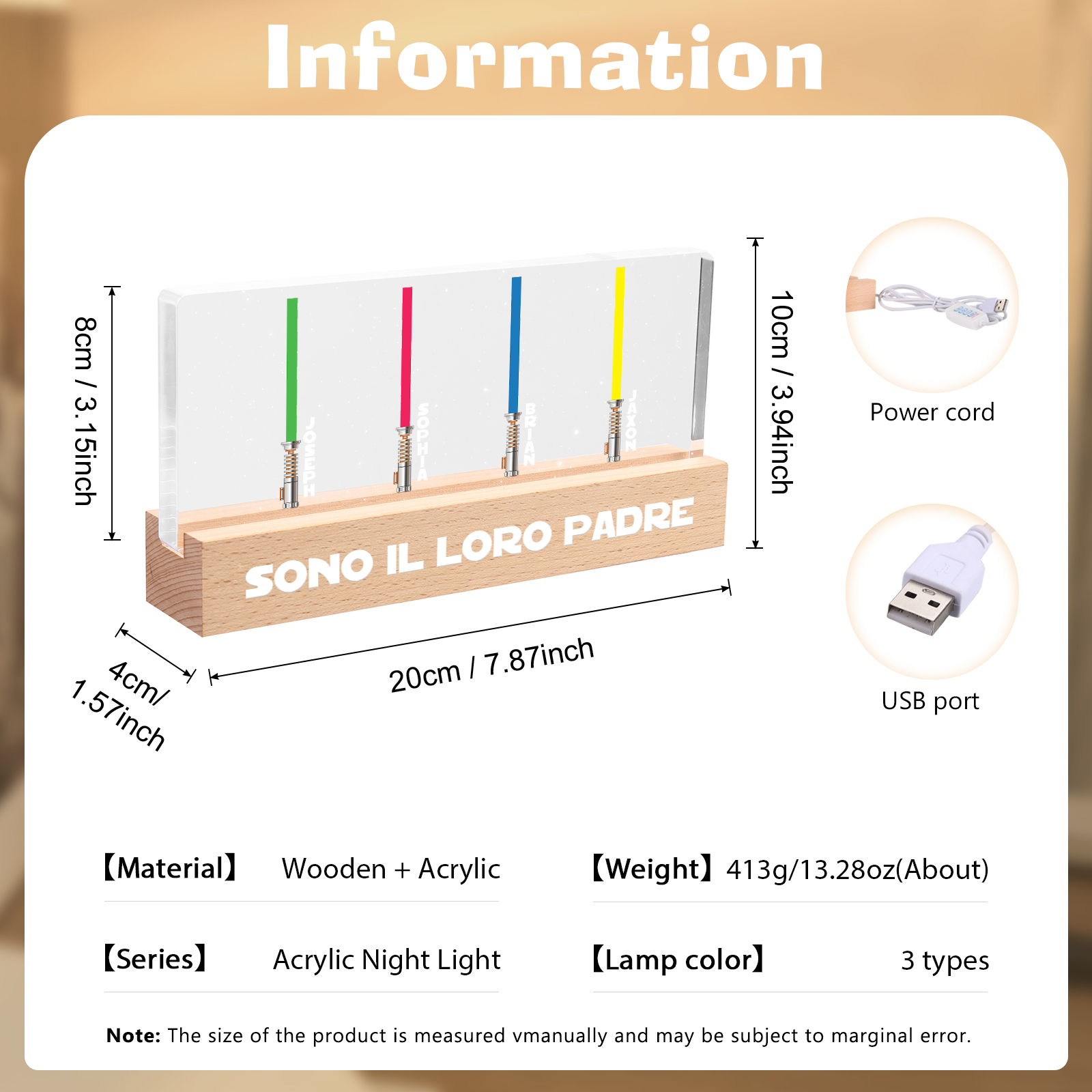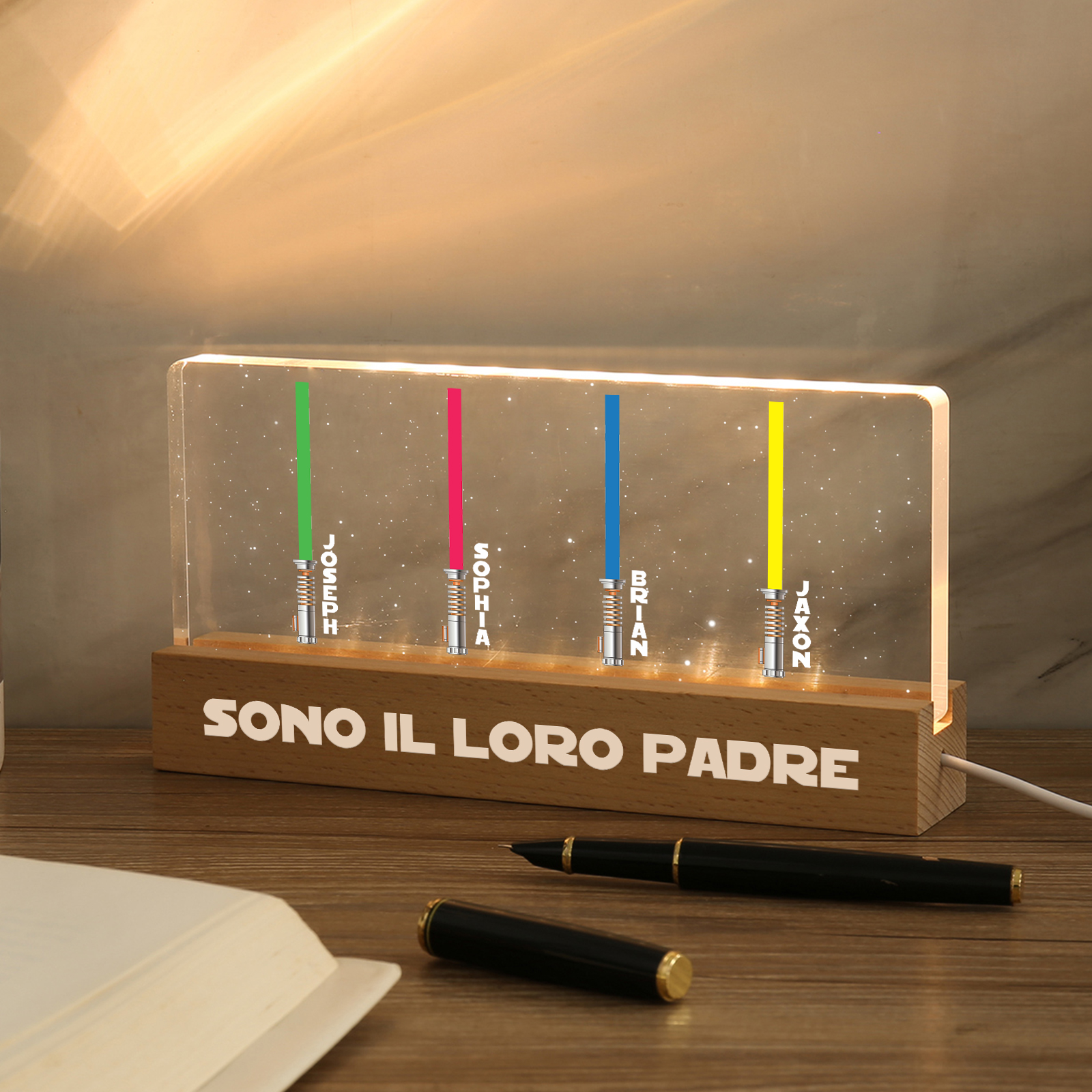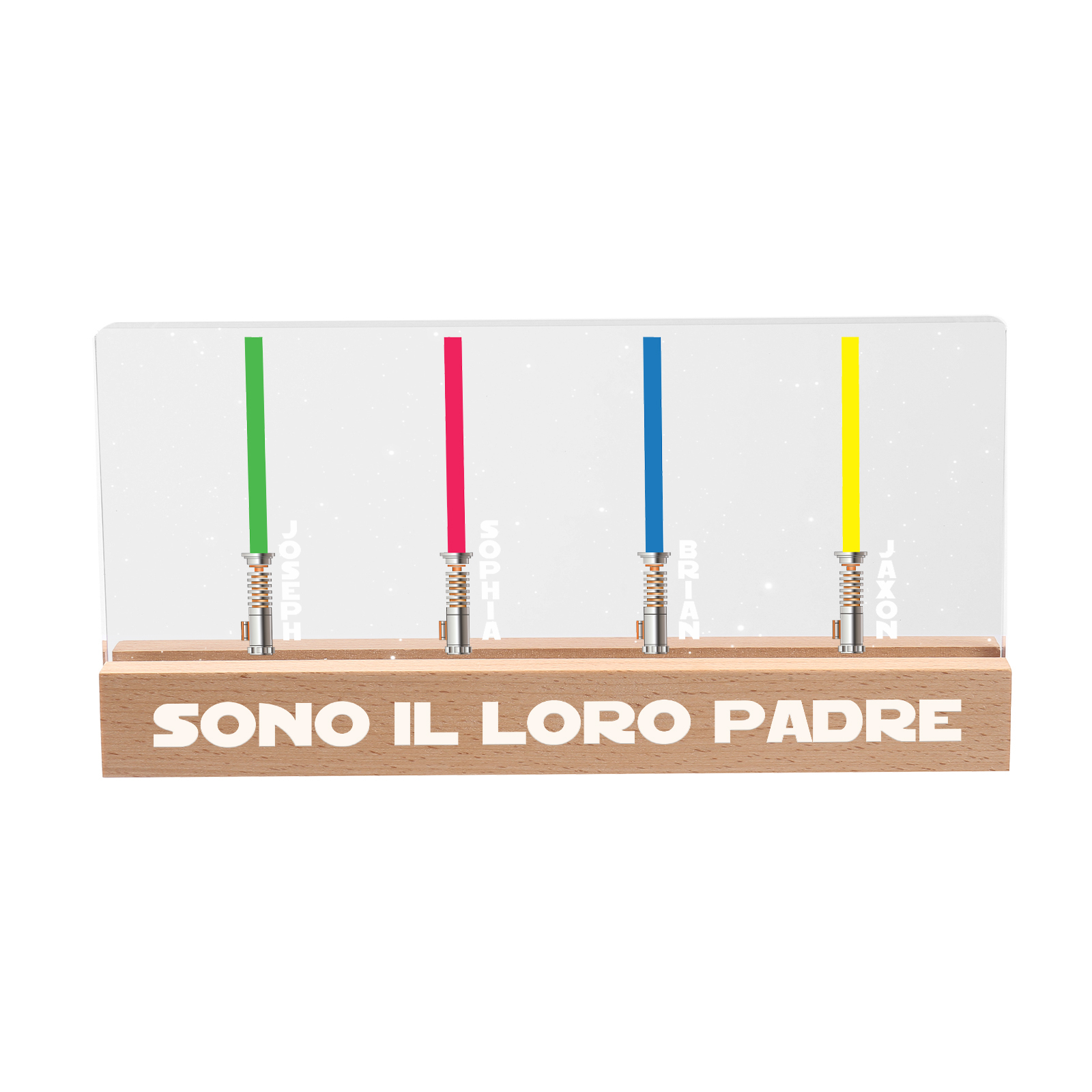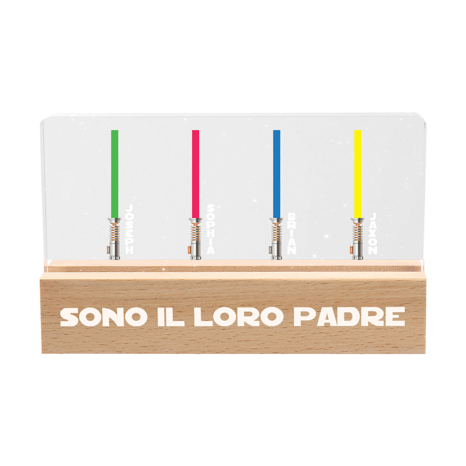 Lampada a tre colori con spada laser 4 nomi e 1 testo personalizzati per papà/nonno