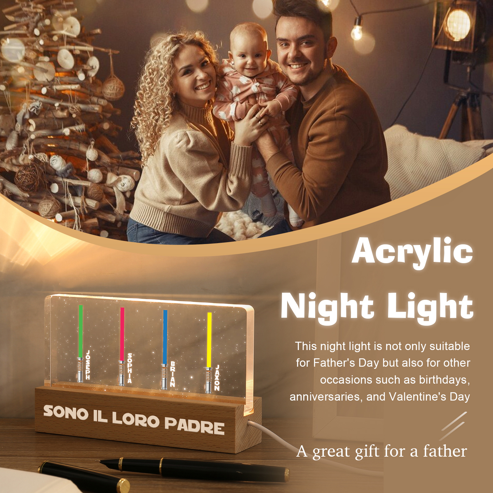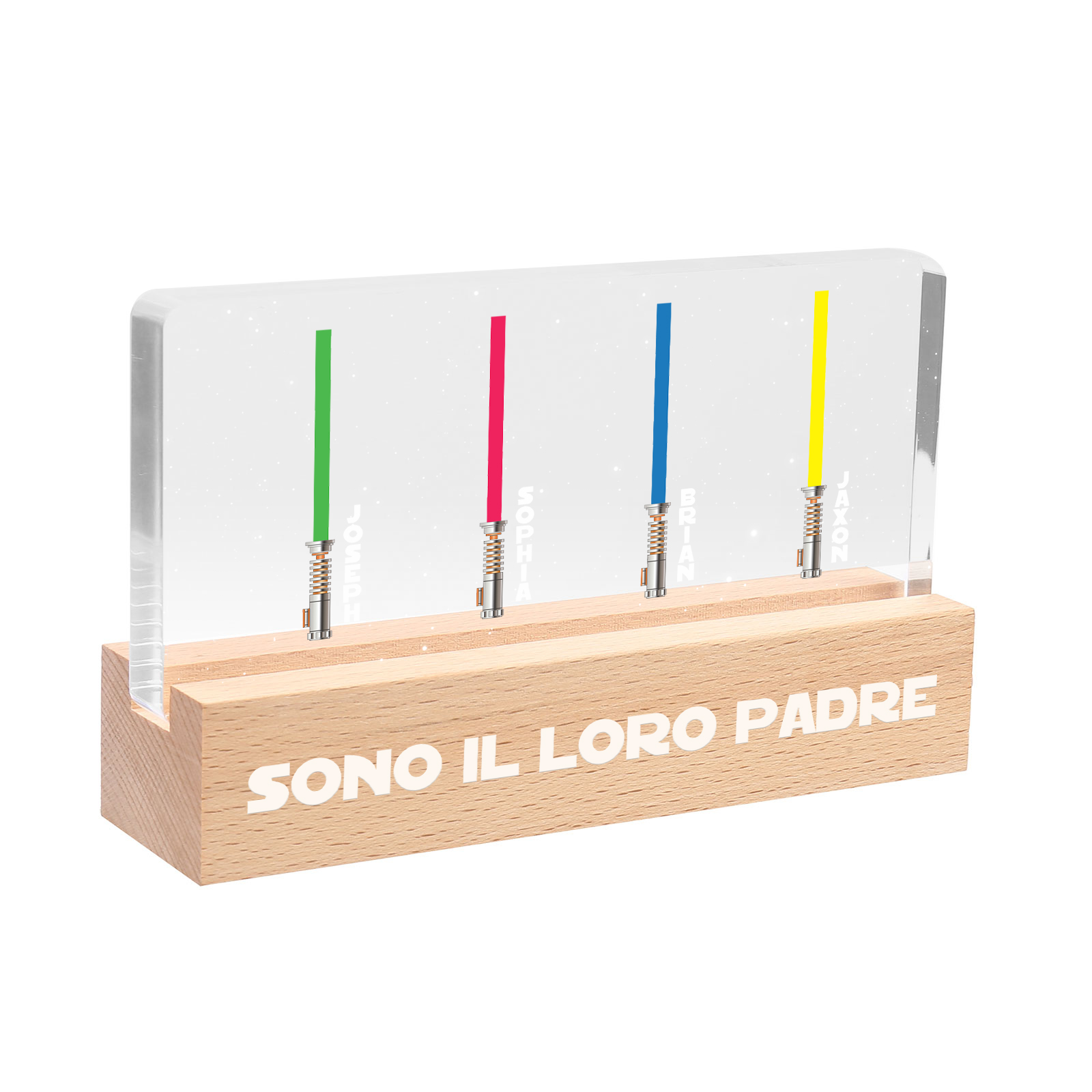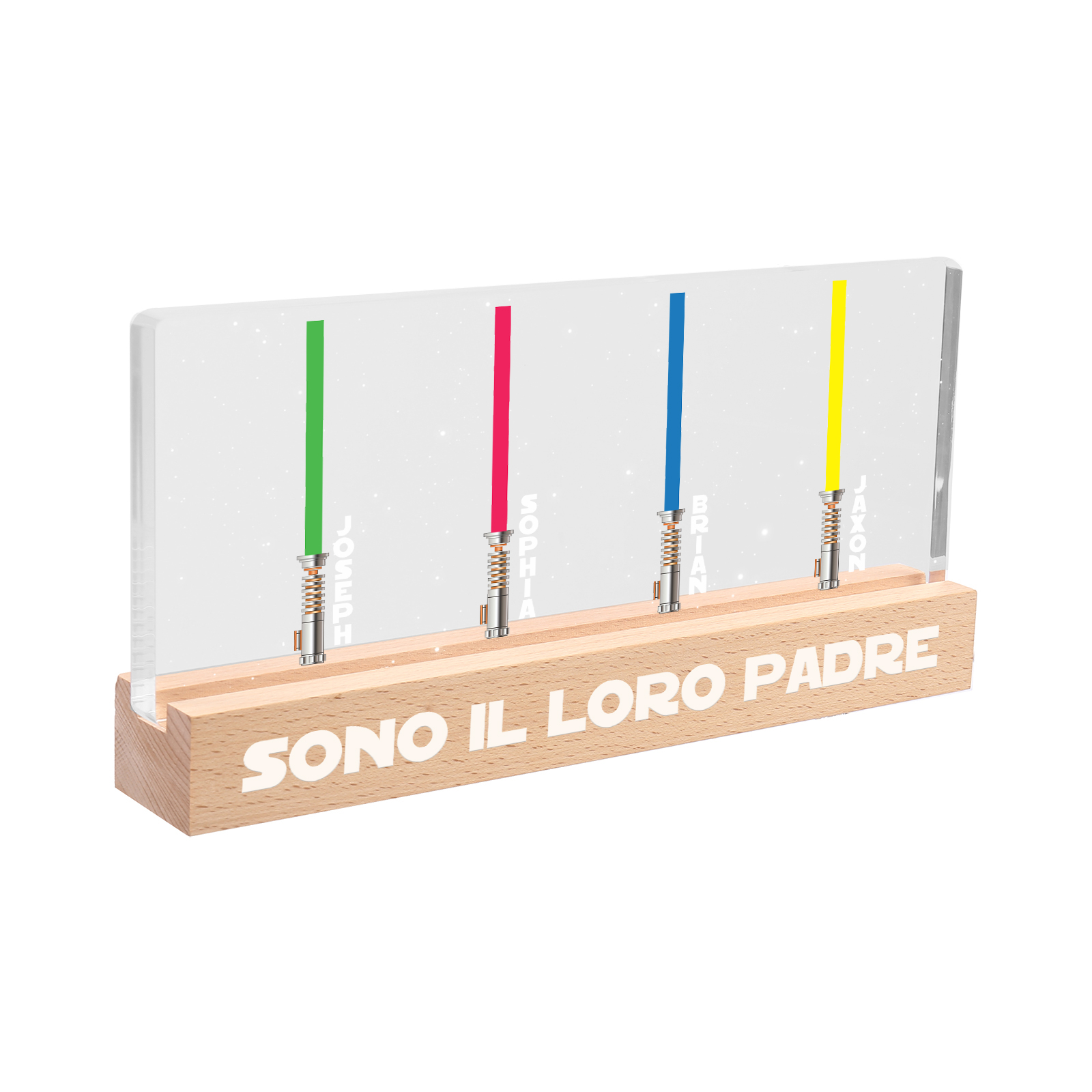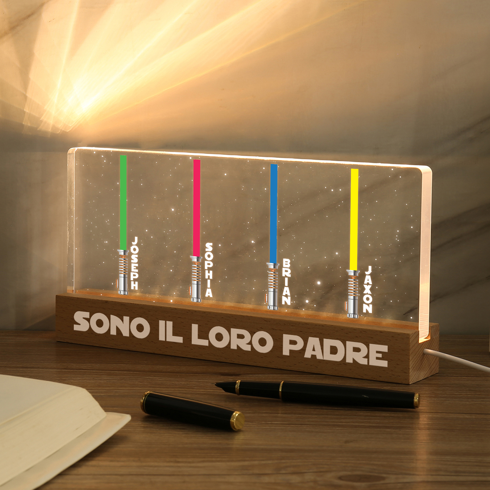 Lampada a tre colori con spada laser 4 nomi e 1 testo personalizzati per papà/nonno