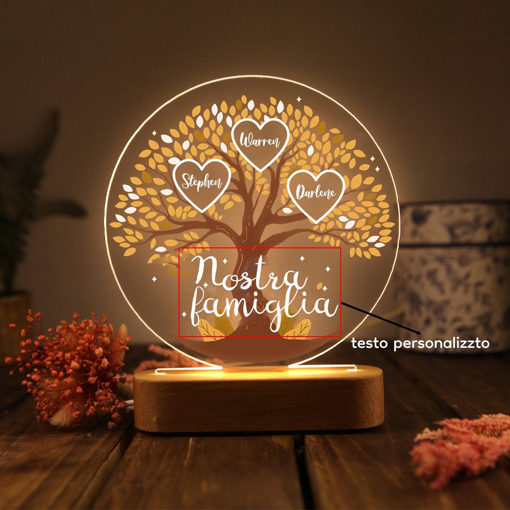 Lampada acrilica albero della vita 3 nomi e 1 testo personalizzabili per famiglia