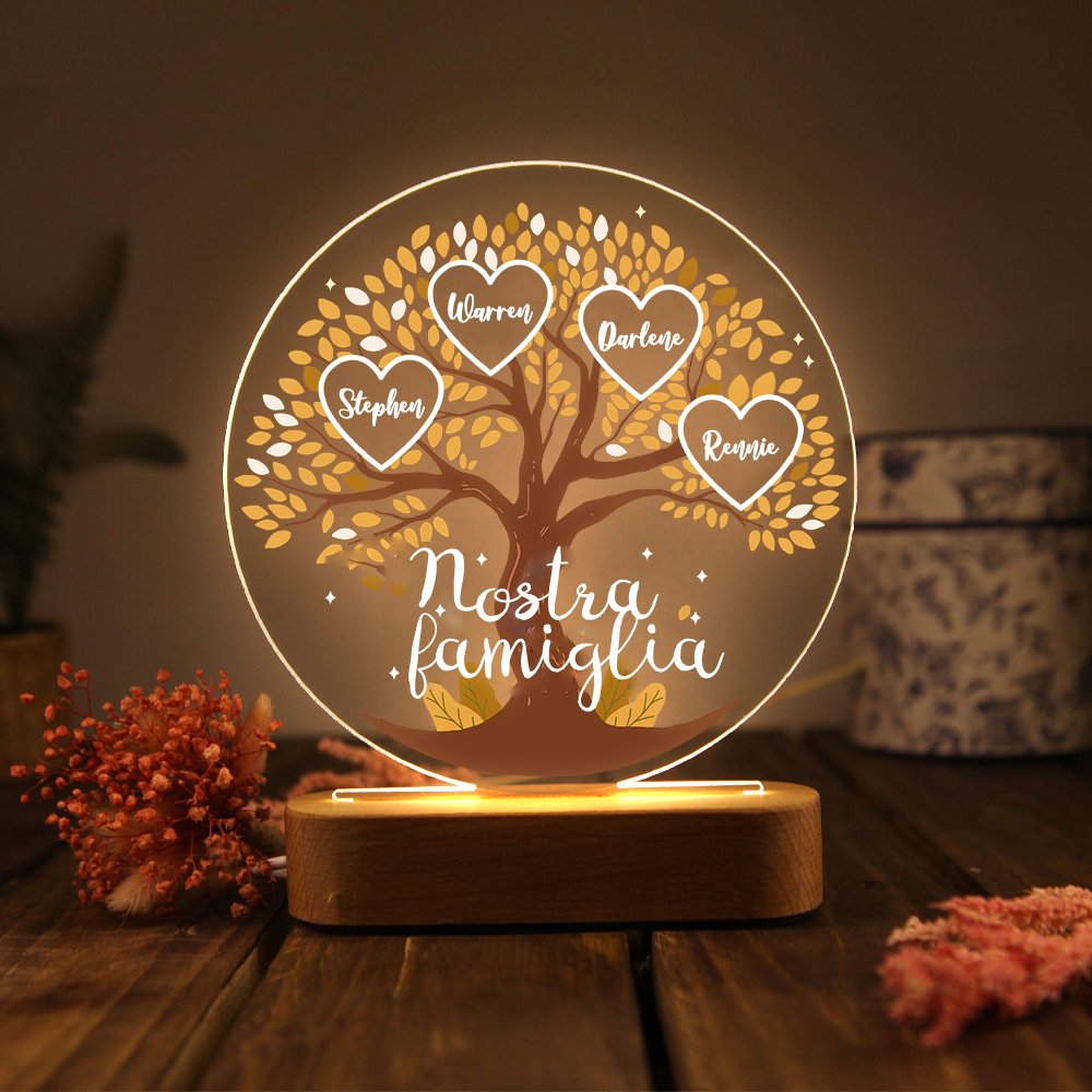 Lampada acrilica albero della vita 4 nomi e 1 testo personalizzabili per famiglia