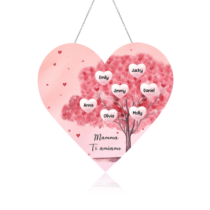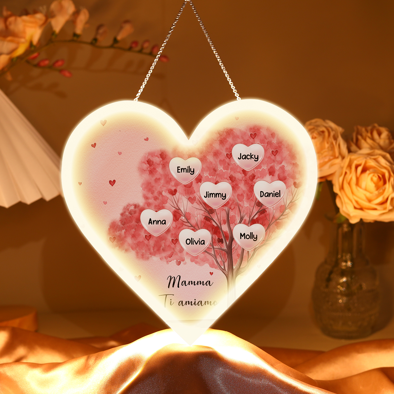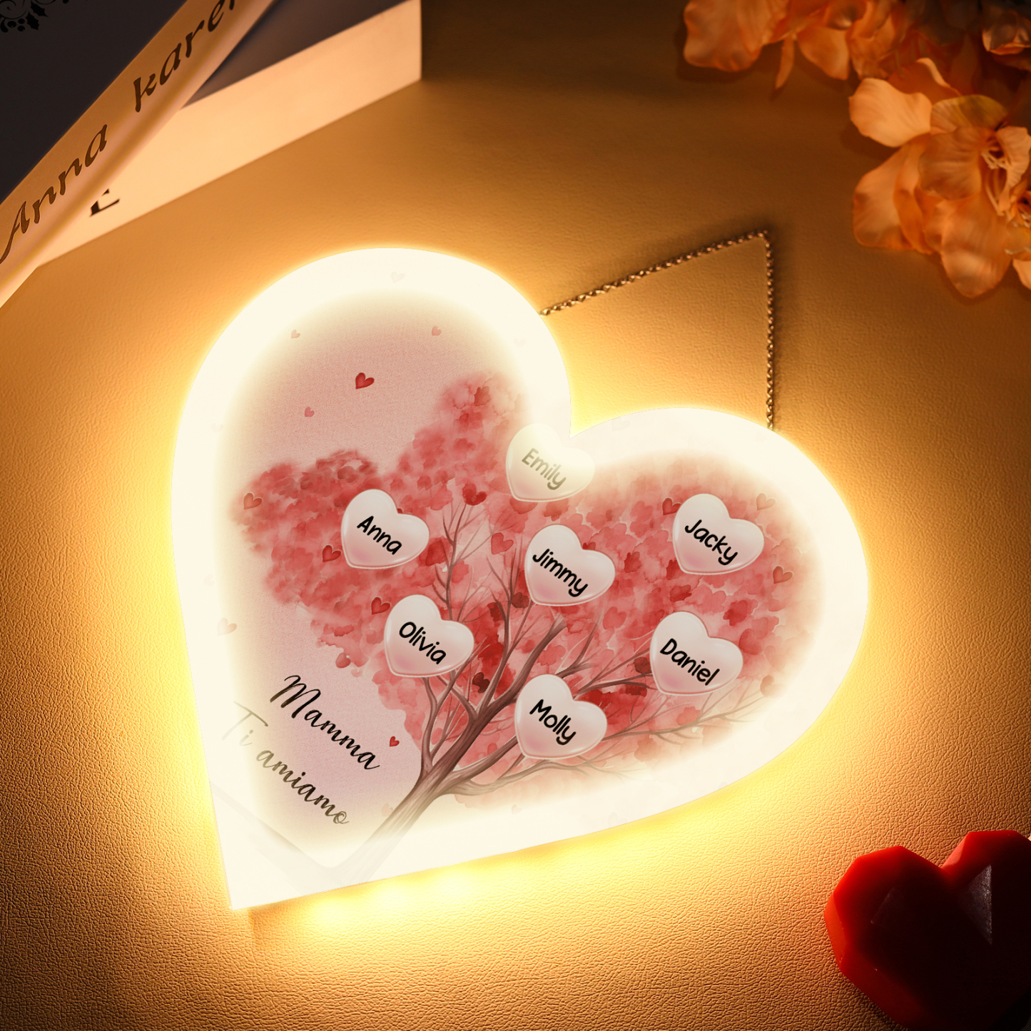 Lampada acrilica appeso albero di cuore rosa 7 nomi e 1 testo personalizzabili per mamma/nonna