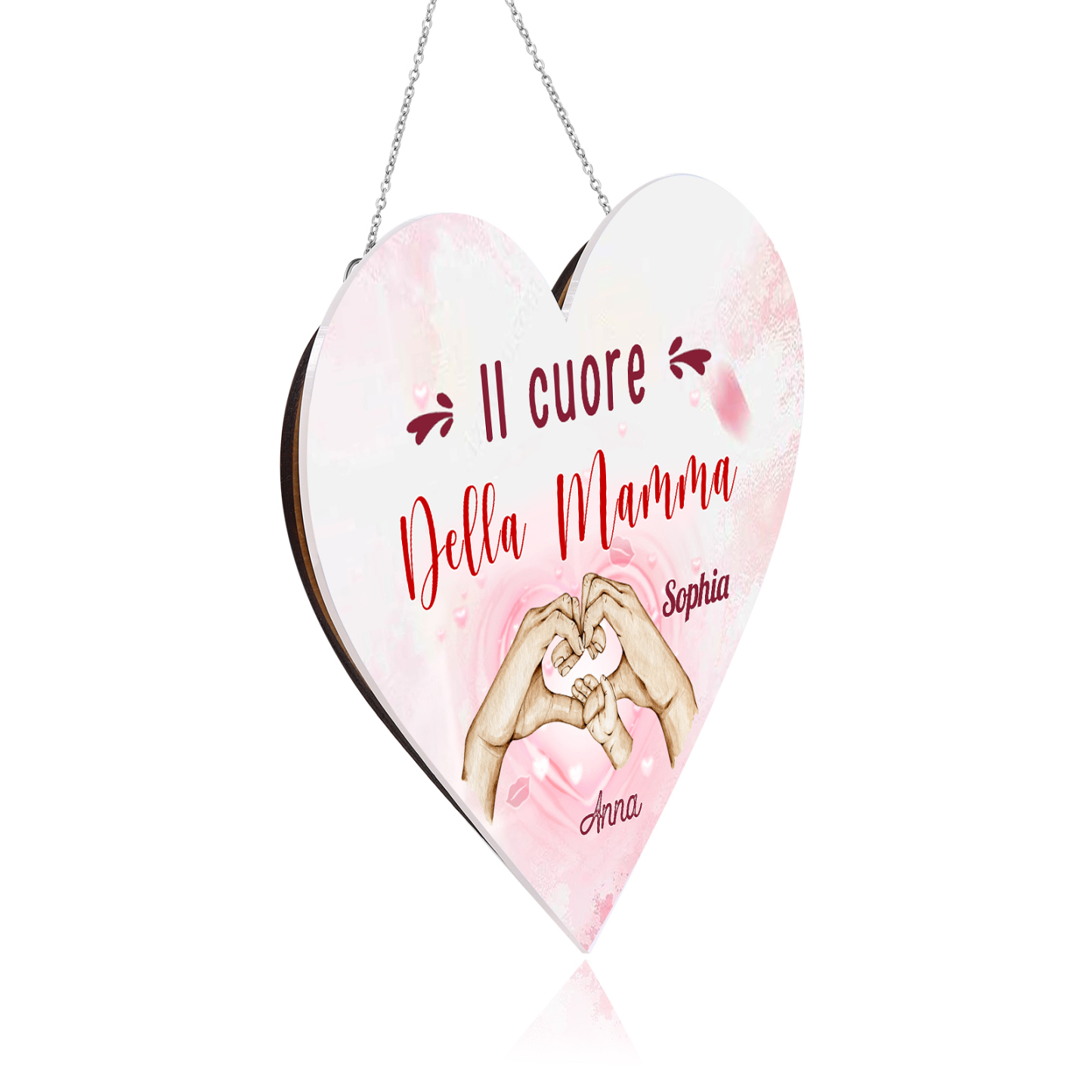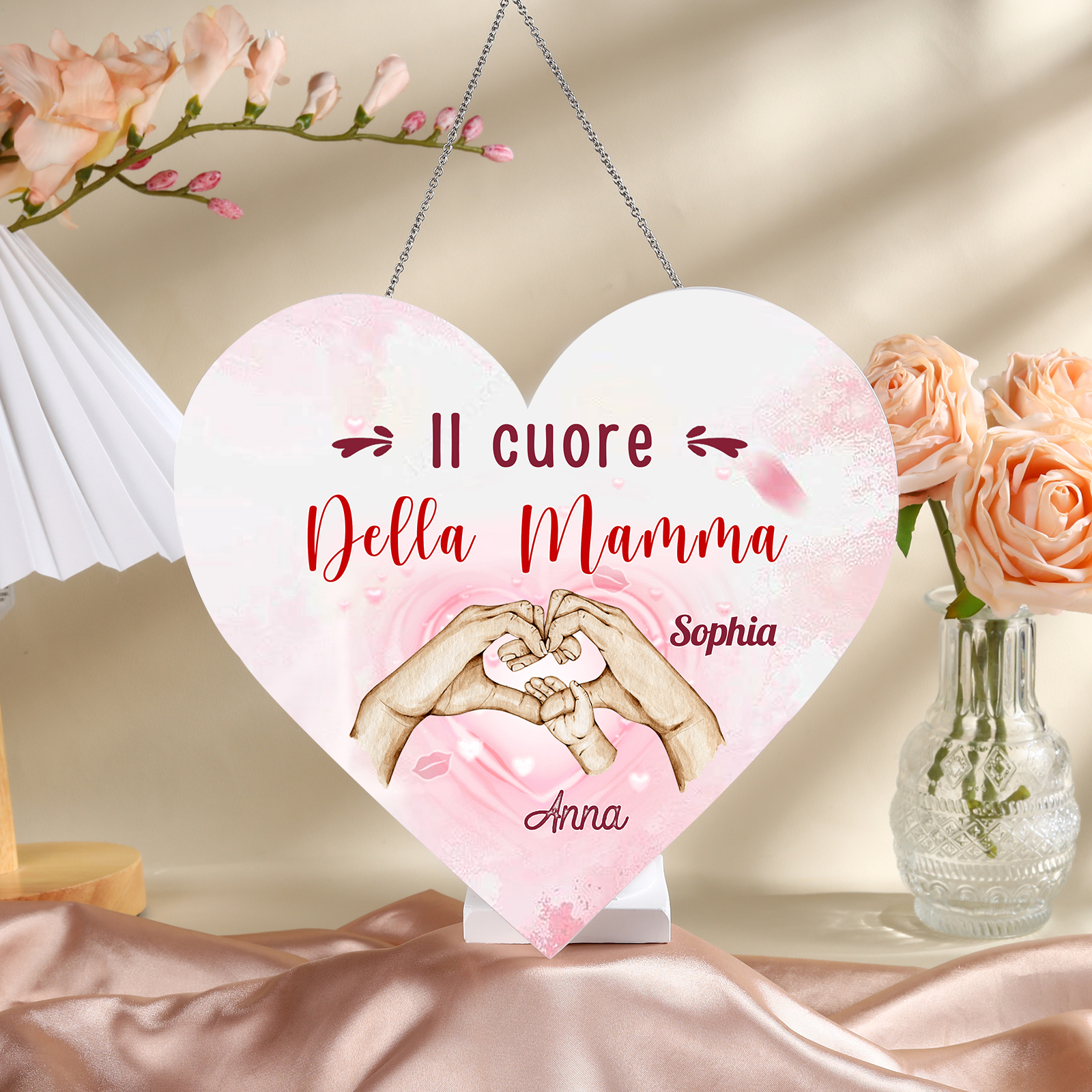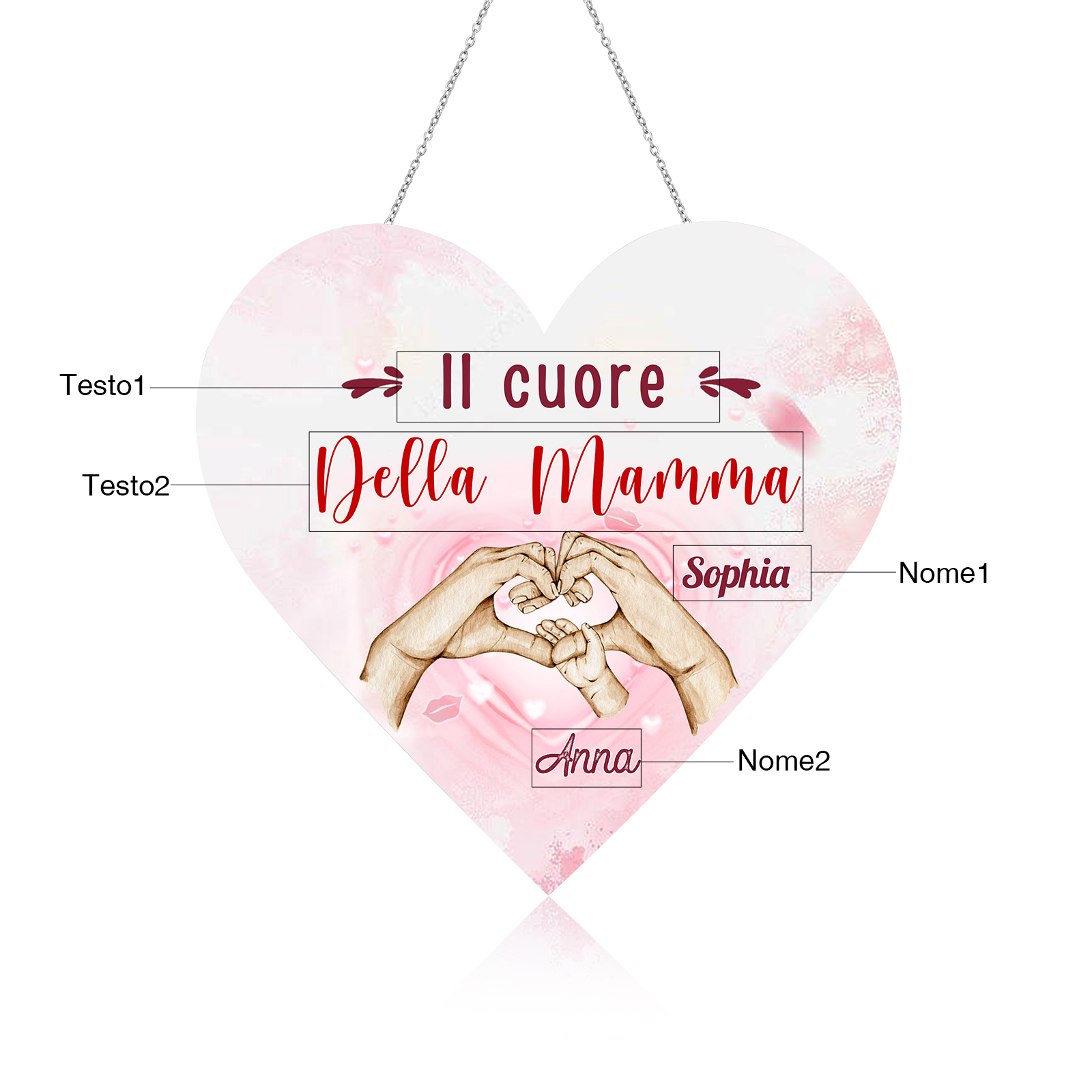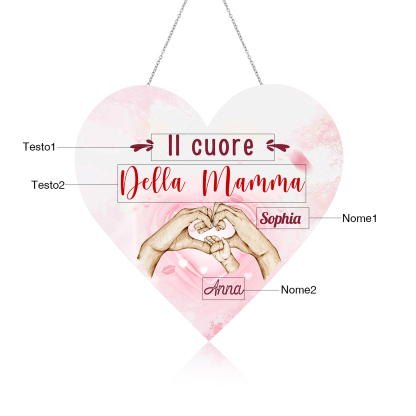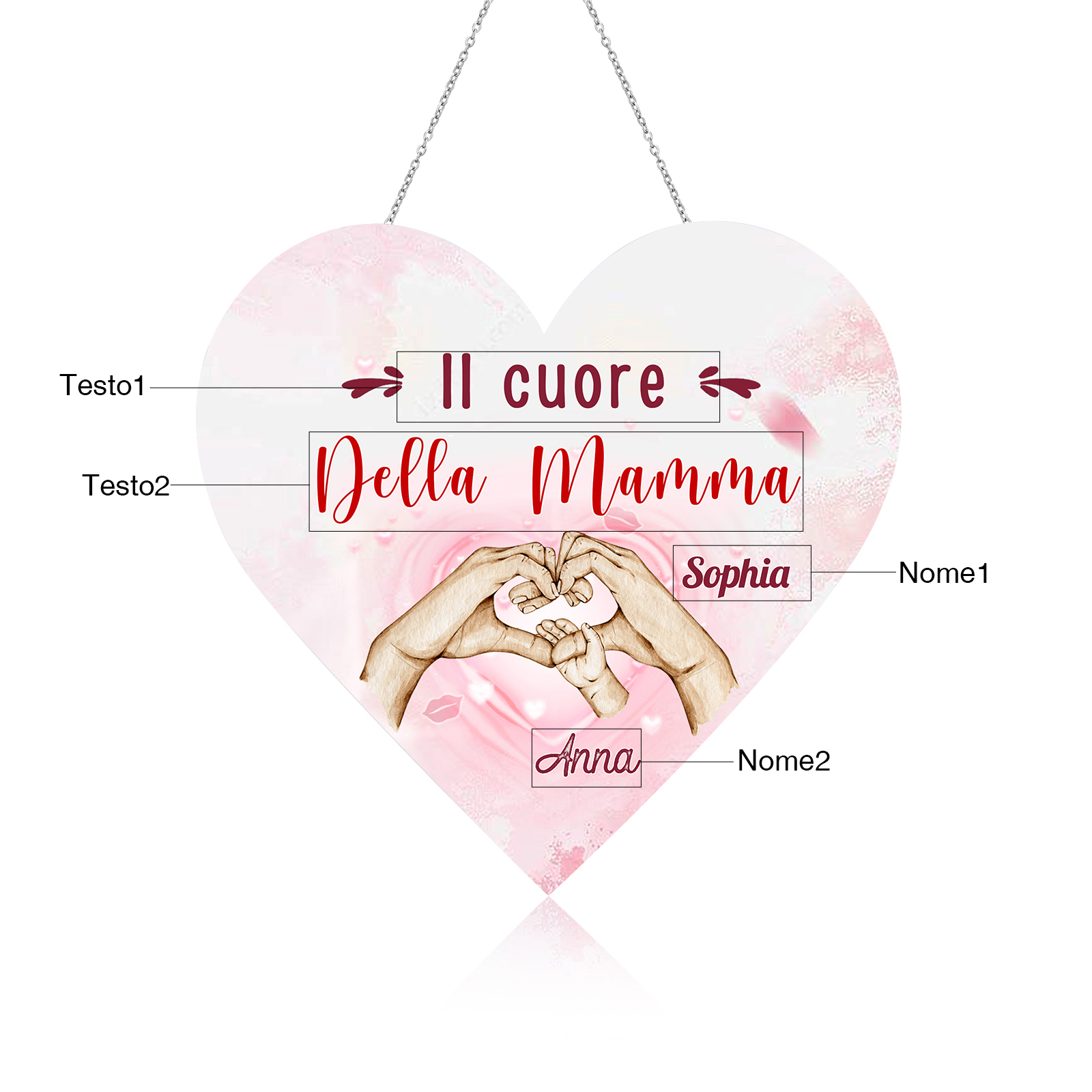 Lampada acrilica appeso mani a cuore 2 nomi e 2 testi personalizzabili per mamma/nonna