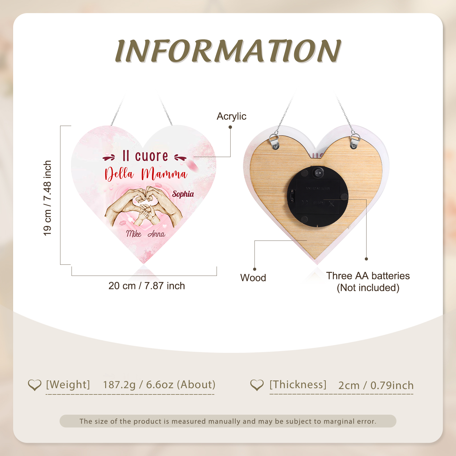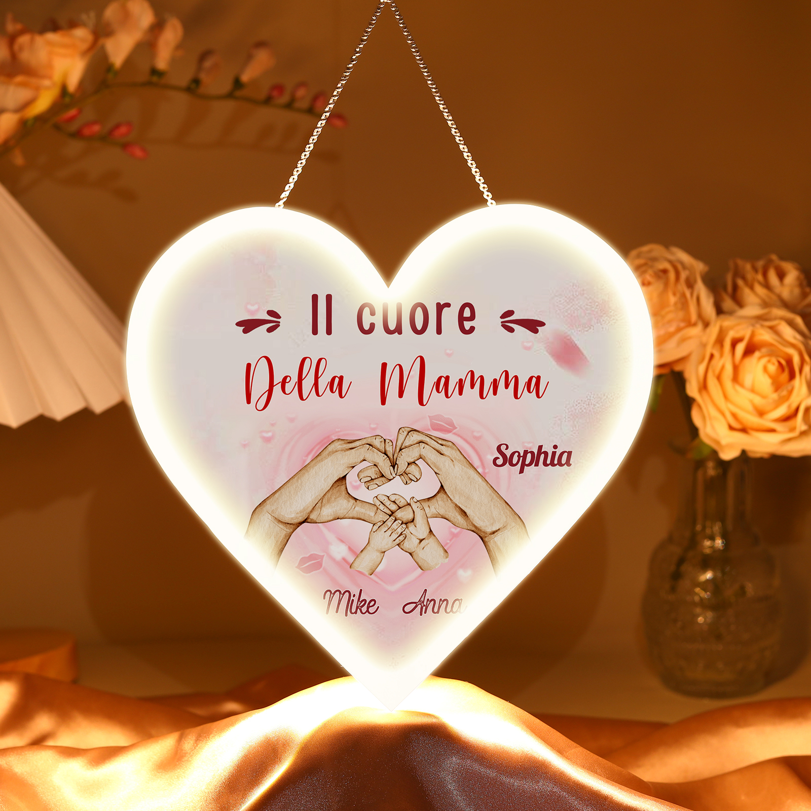Lampada acrilica appeso mani a cuore 3 nomi e 2 testi personalizzabili per mamma/nonna