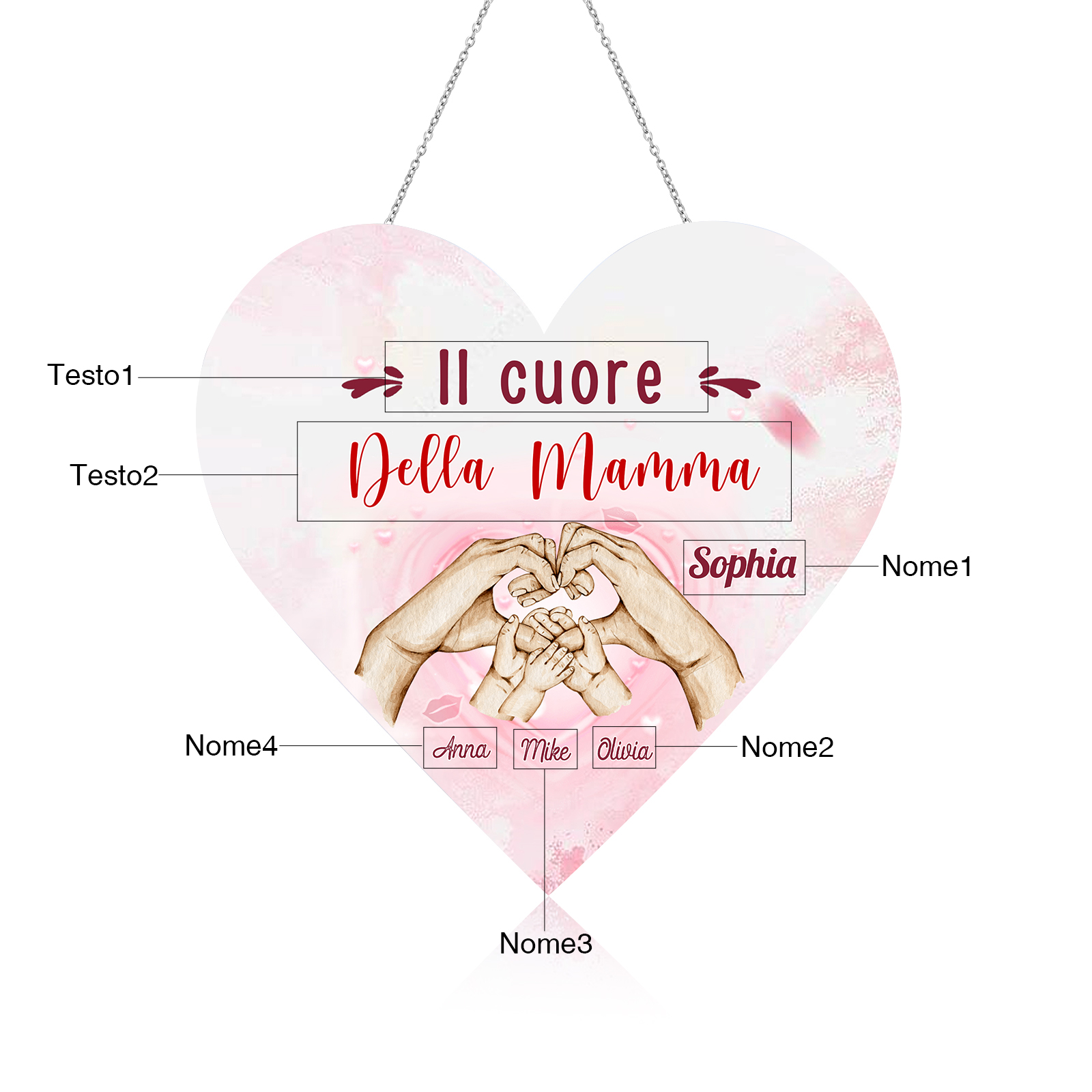 Lampada acrilica appeso mani a cuore 4 nomi e 2 testi personalizzabili per mamma/nonna