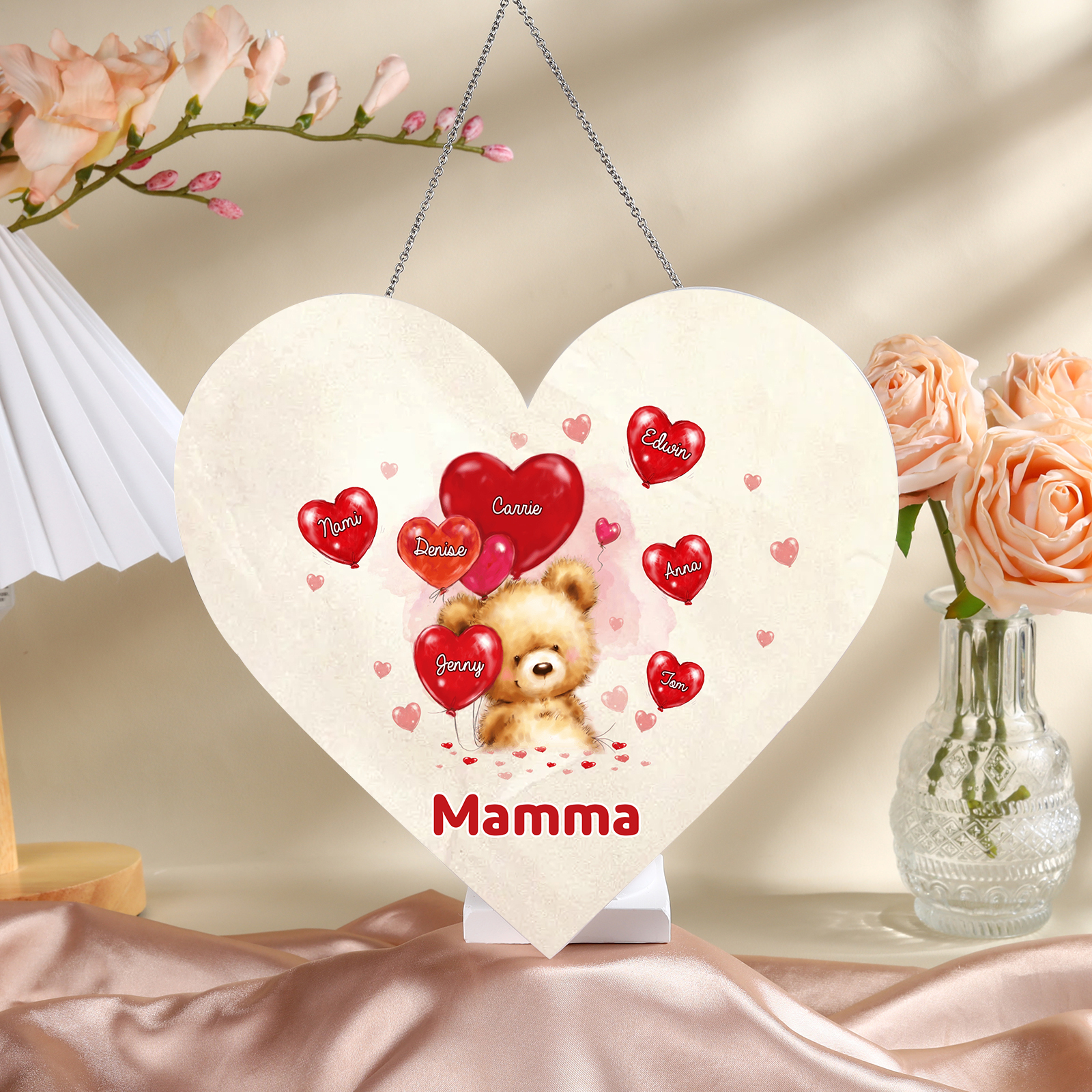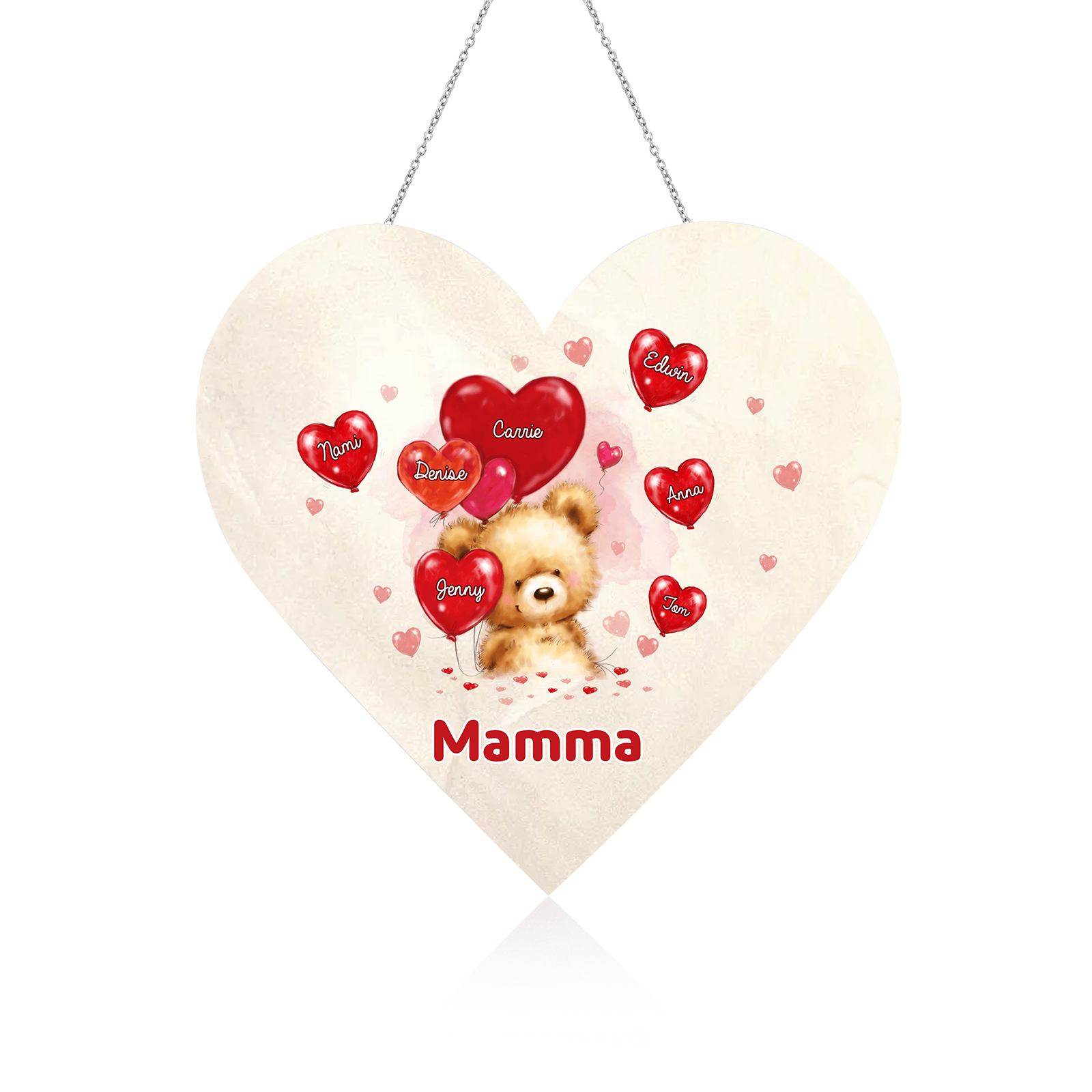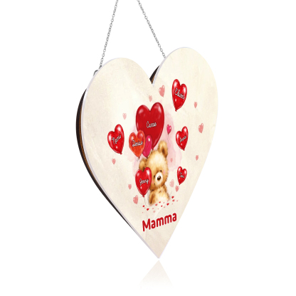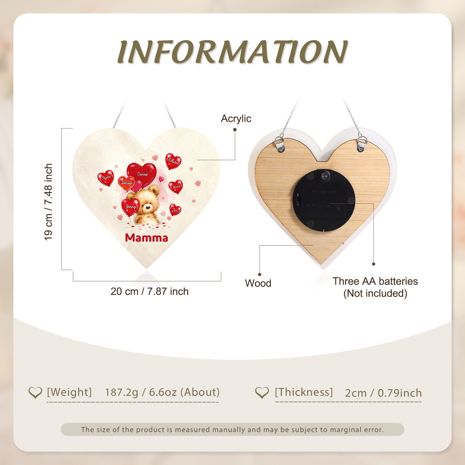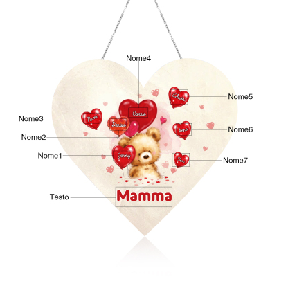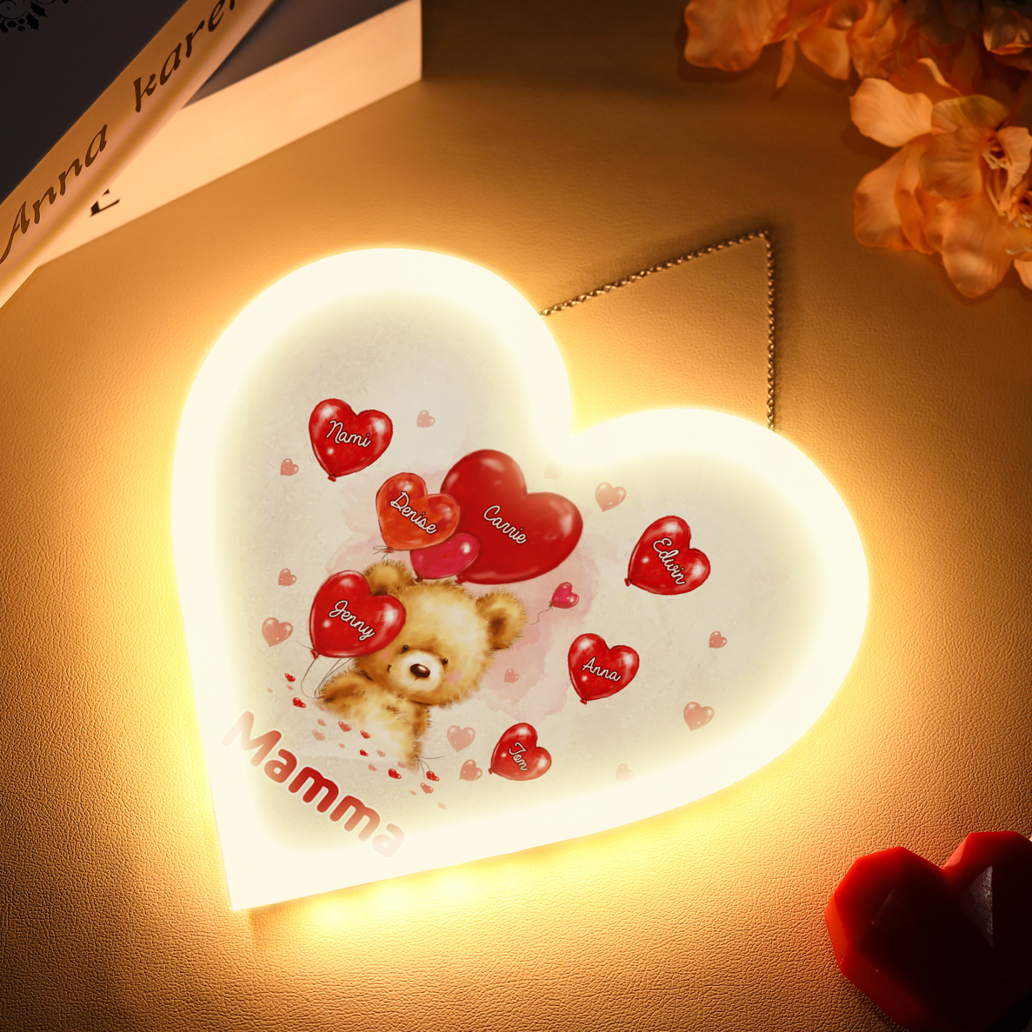 Lampada acrilica appeso orsacchitto con cuore palloncino 7 nomi e 1 testo personalizzabili per mamma/nonna