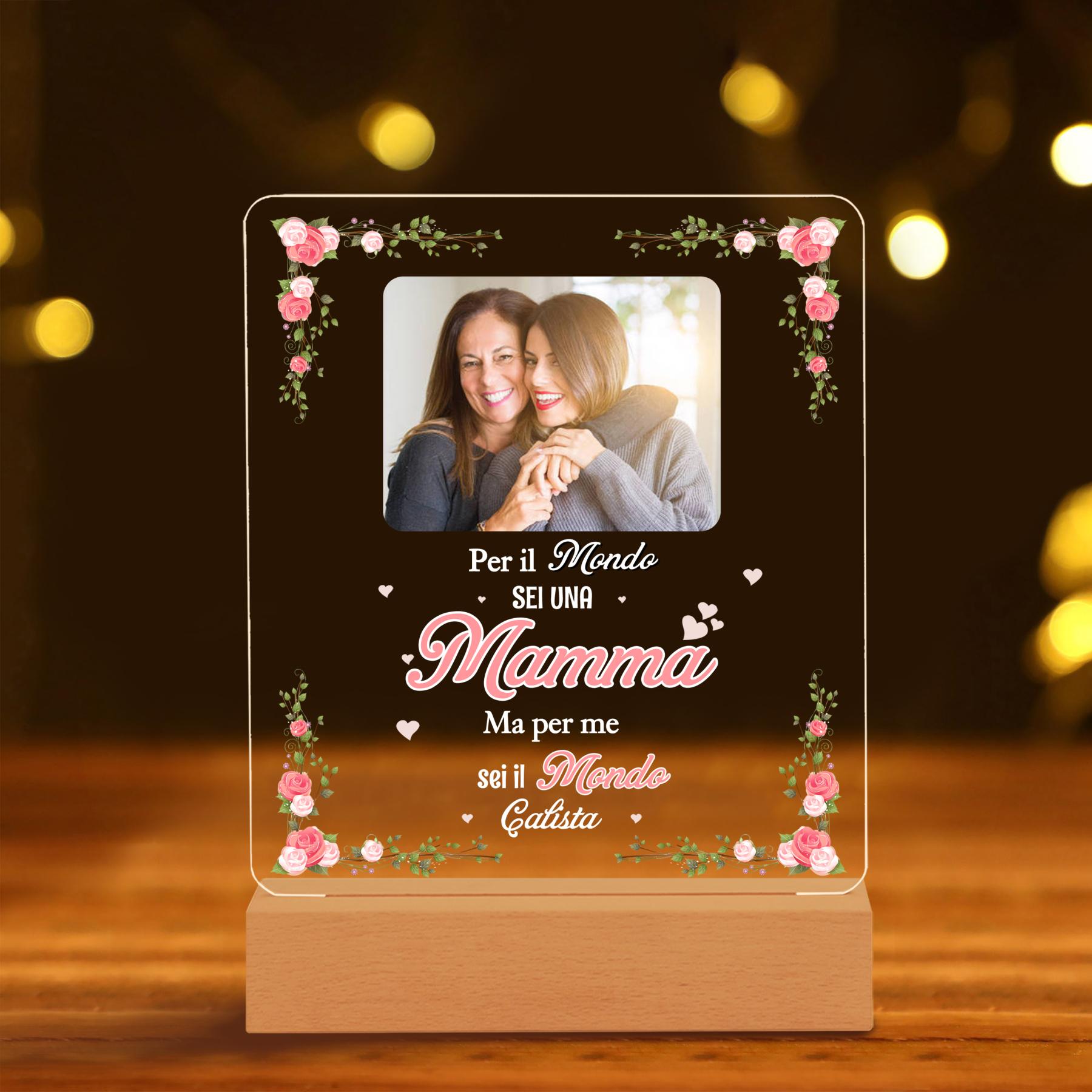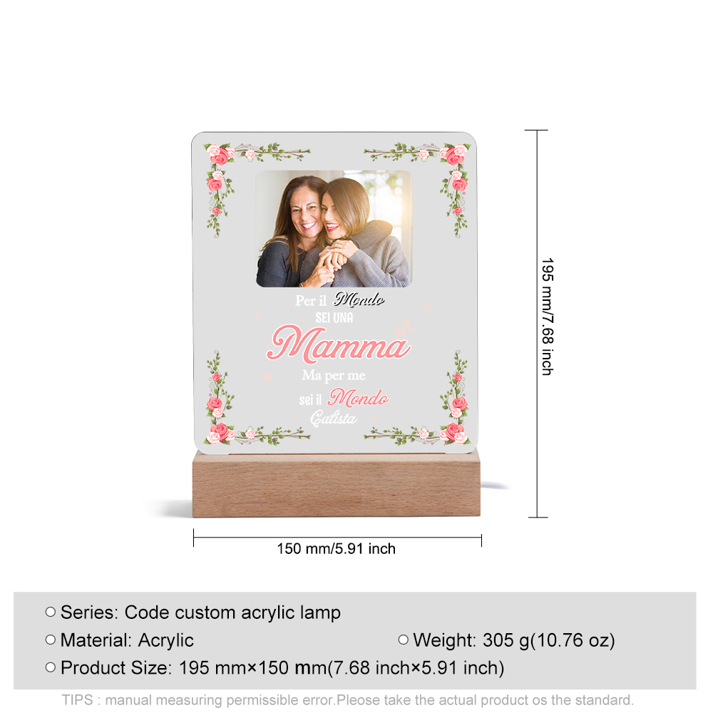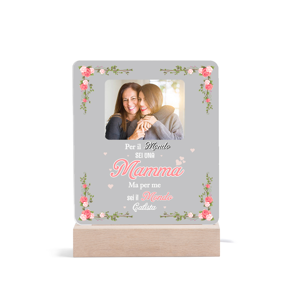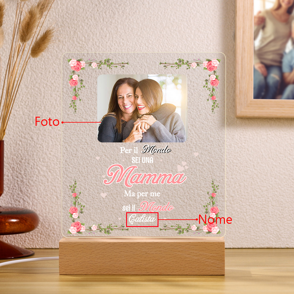 Lampada acrilica con 1 foto e 1 nome personalizzabili per mamma